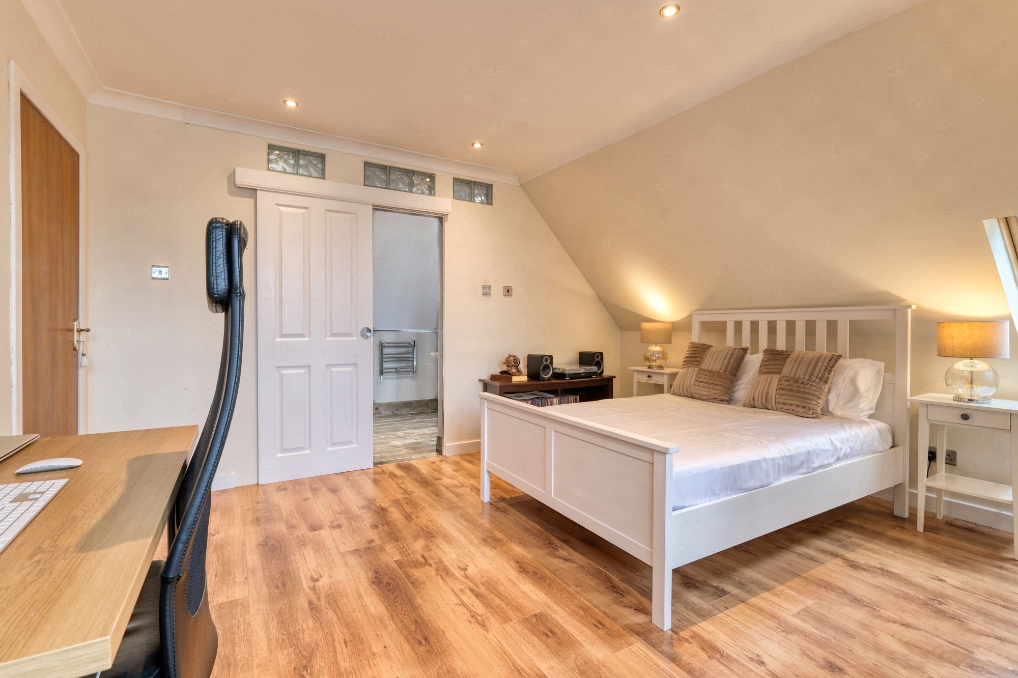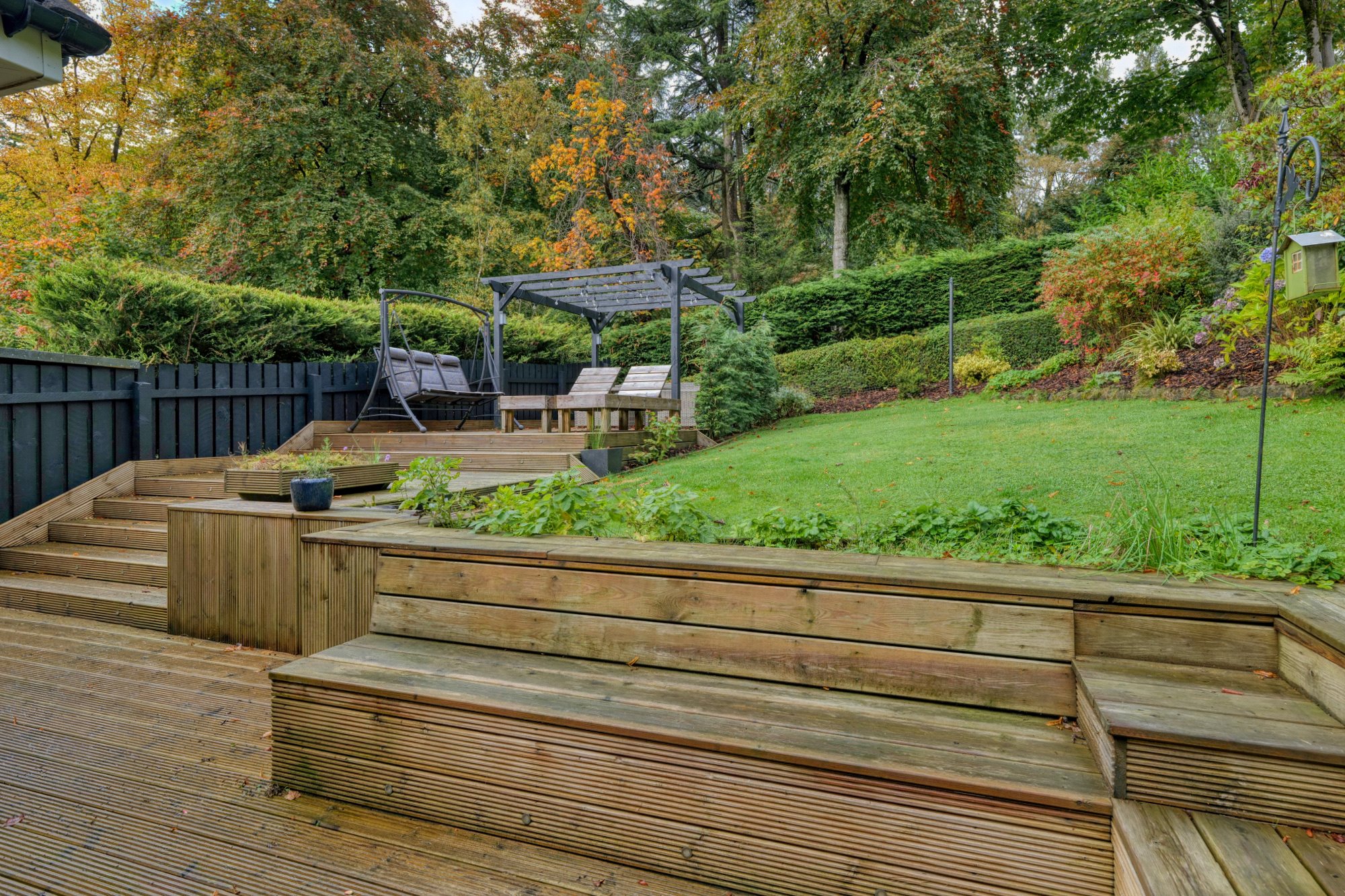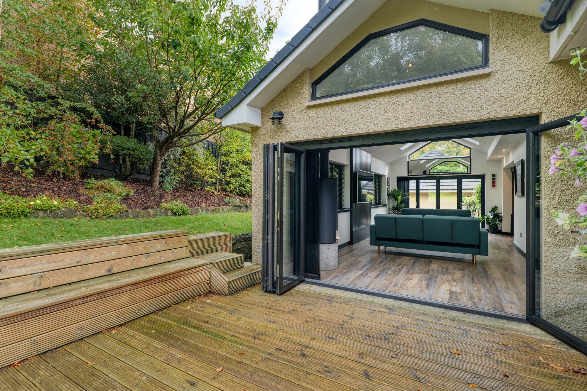 A particular feature of Moredun Road is the extensive and wonderful landscaped garden grounds. There are large lawn areas that surround the grounds with a patio are and large decked terrace, with external lighting. An electric gate to the front of this home leads to an extremely generous driveway and three car garage with a large store and separate studio area. A side door gives separate access to the studio with a shower room. There is underfloor heating in the garage with a gas supply installed, for further heating systems if one requires.