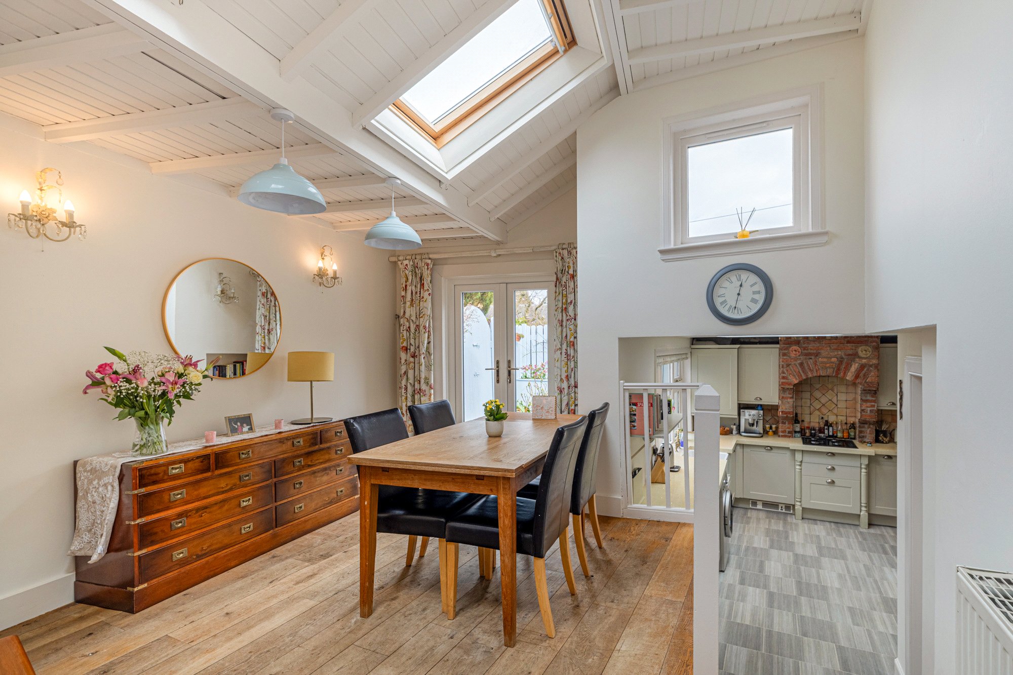 The accommodation is spread over two levels. On the ground floor, the entrance hallway provides ample storage and leads into a spacious lounge with beautiful views over The Orry. Adjacent to the lounge is a versatile family room, which can also serve as an additional public room and connects seamlessly to the kitchen. The well-appointed kitchen features a range of wall-mounted and floor-standing units, complemented by stylish worktop surfaces and integrated detailing. A bright and airy dining room, with French doors opening onto a private patio area, provides the perfect space for entertaining. A shower room completes the lower level.