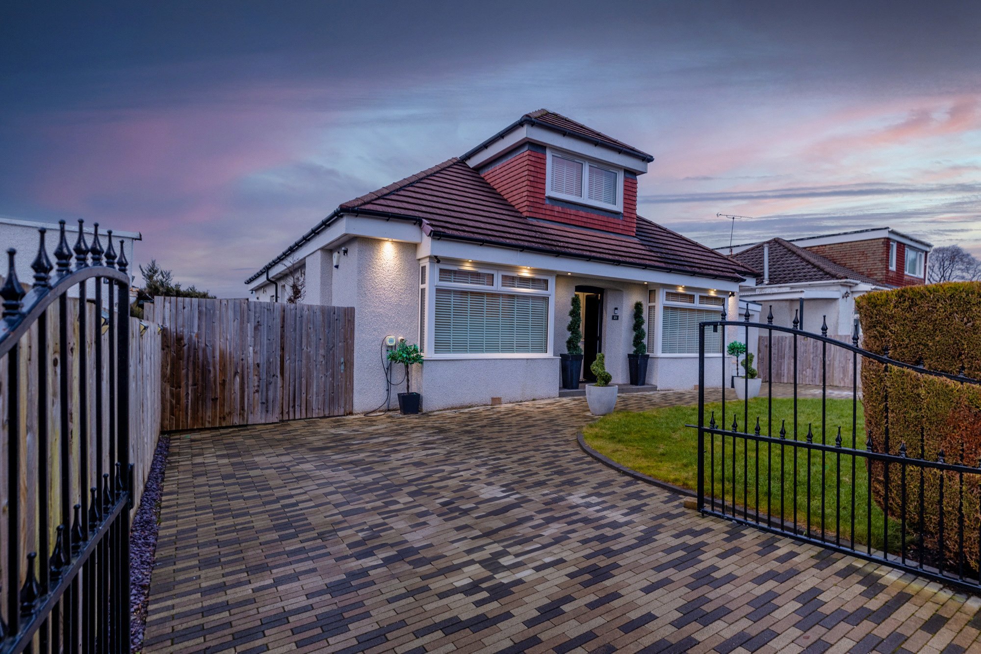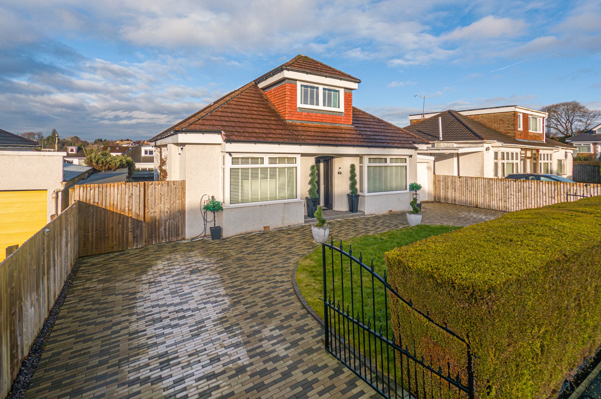 Set within one of Giffnock’s most desirable residential addresses, this beautifully presented and generously proportioned detached bungalow offers outstanding flexibility of accommodation across three levels, perfectly suited to modern family living and entertaining.