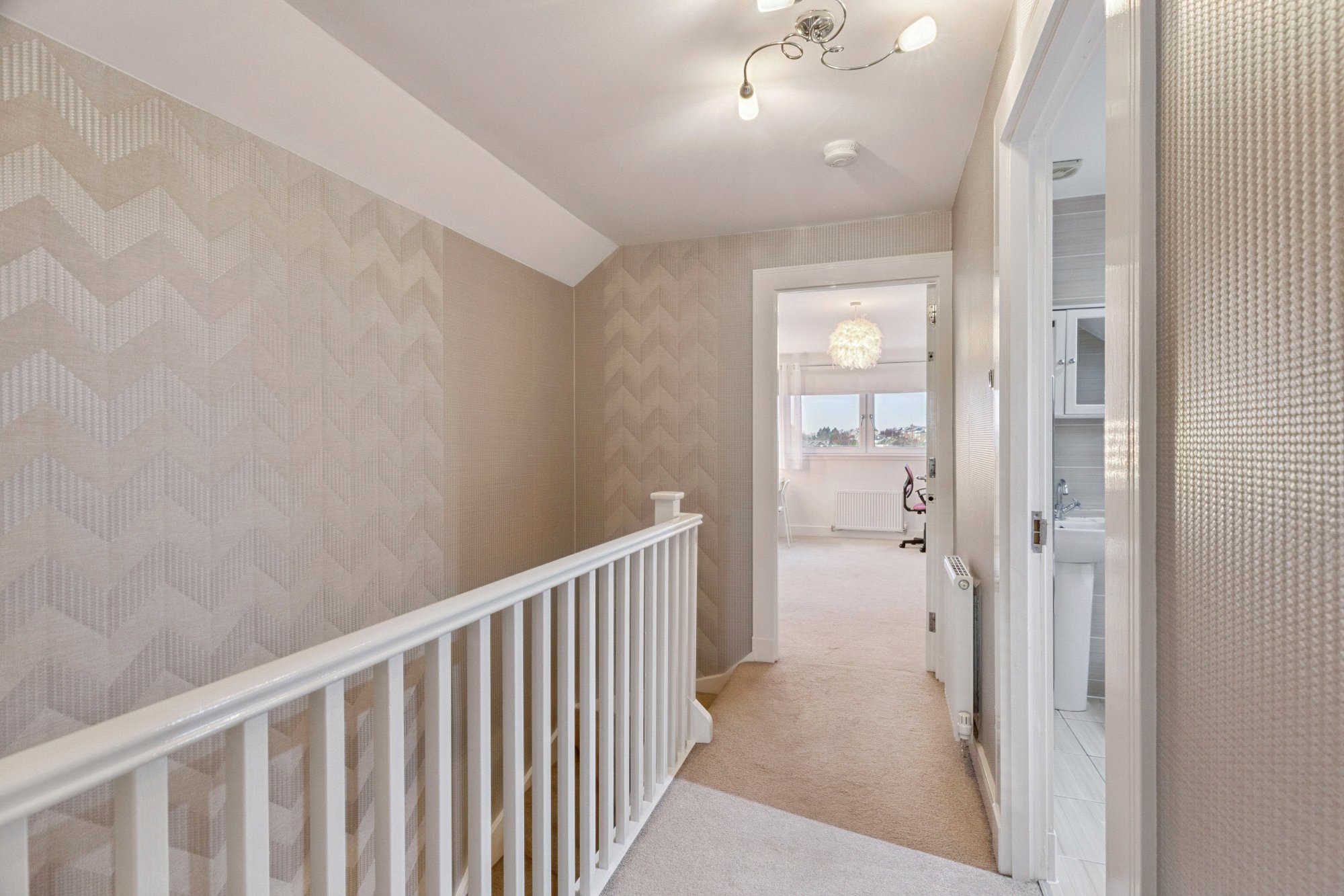 On the upper floor, two further generously sized bedrooms are complemented by a contemporary family bathroom, providing comfortable accommodation for growing families or visiting guests.