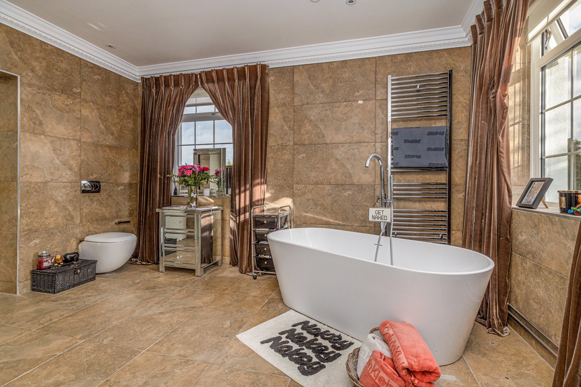 The upper floor features a bright and spacious galleried landing with a large window to the front, four beautifully presented bedrooms, two with contemporary en-suites, and a stylish family bathroom. An attic room, accessible by a spiral staircase, offers additional space for recreational or entertainment purposes or could potentially serve as a further bedroom.