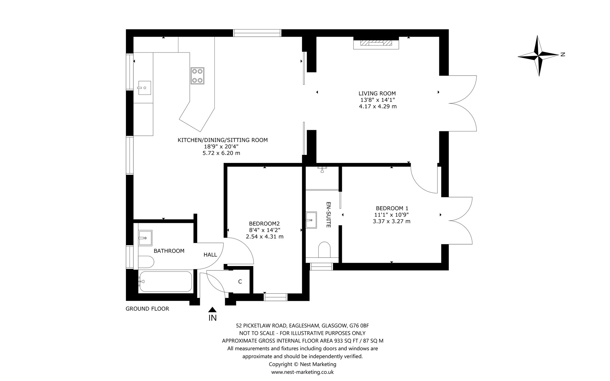 The locally admired conservation village of Eaglesham is a fine example of late 18th-century planning and architecture, and the village was designated Scotland’s first outstanding conservation area in 1960. The village provides a range of local shops, up-market hotels, bars, restaurants, and the popular village primary school, as well as being within the catchment for nationally recognised first-class schooling. Some of Scotland’s highest attaining and most sought-after finest independent schools are all within this catchment area. The surrounding countryside offers quiet country lanes, fishing and a number of highly regarded golf courses including the adjacent Bonnyton Golf Club. There are regular bus services provided to the city centre and excellent motorway networks providing quick access to Glasgow and Ayrshire. Busby station and Clarkston station are the local train stations. Both Glasgow and Prestwick Airports are also within easy reach.