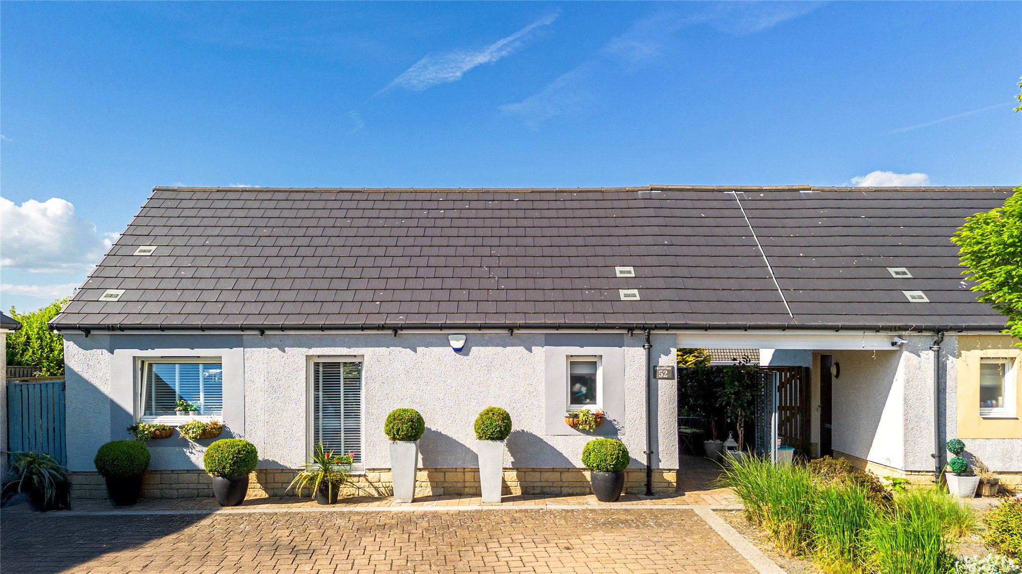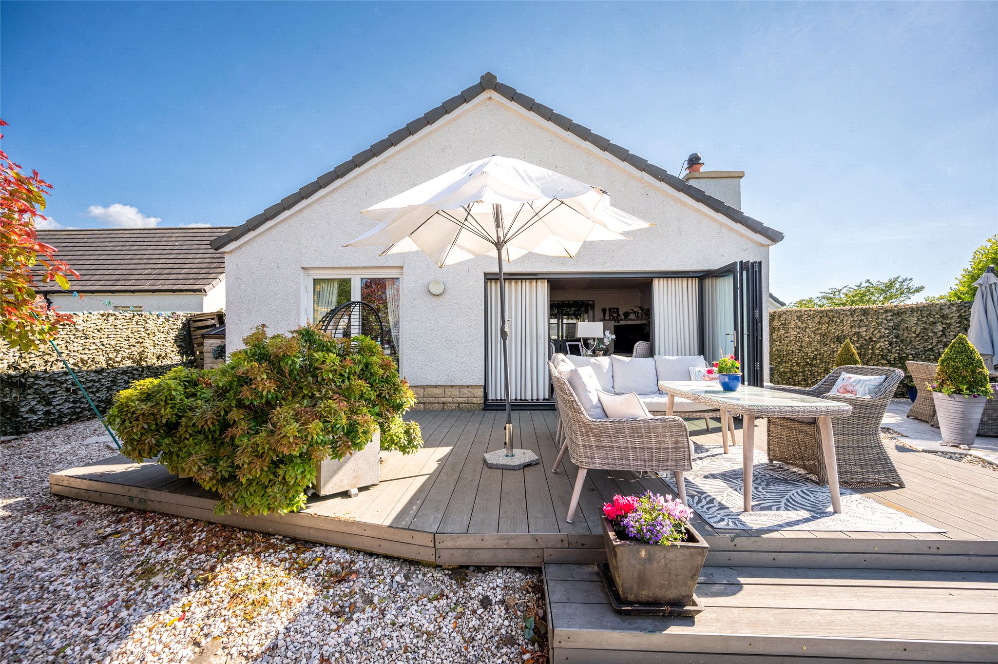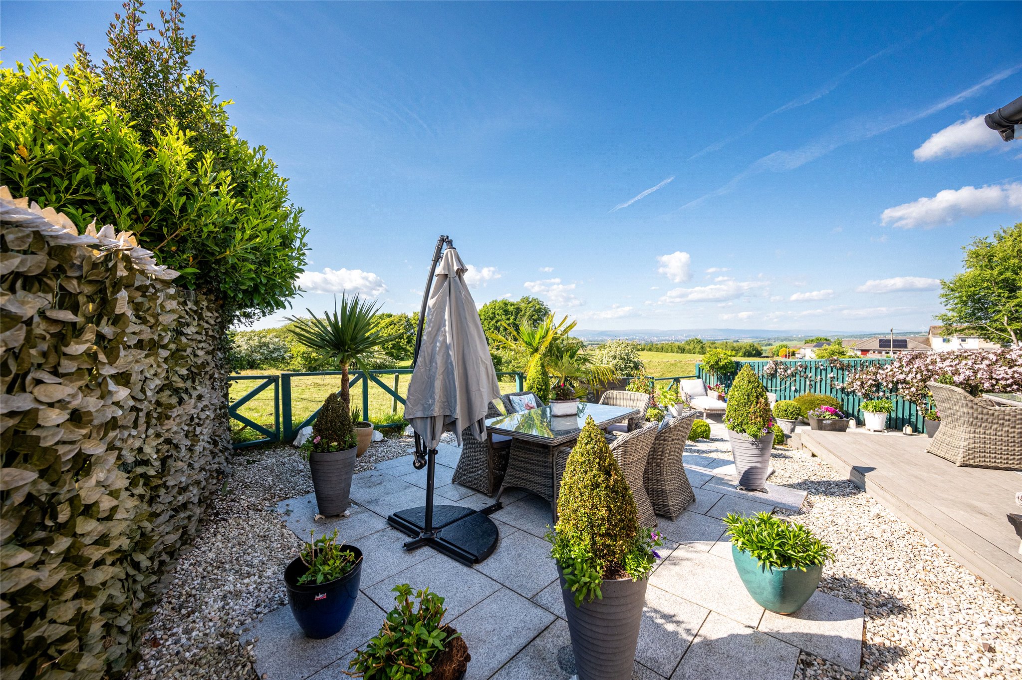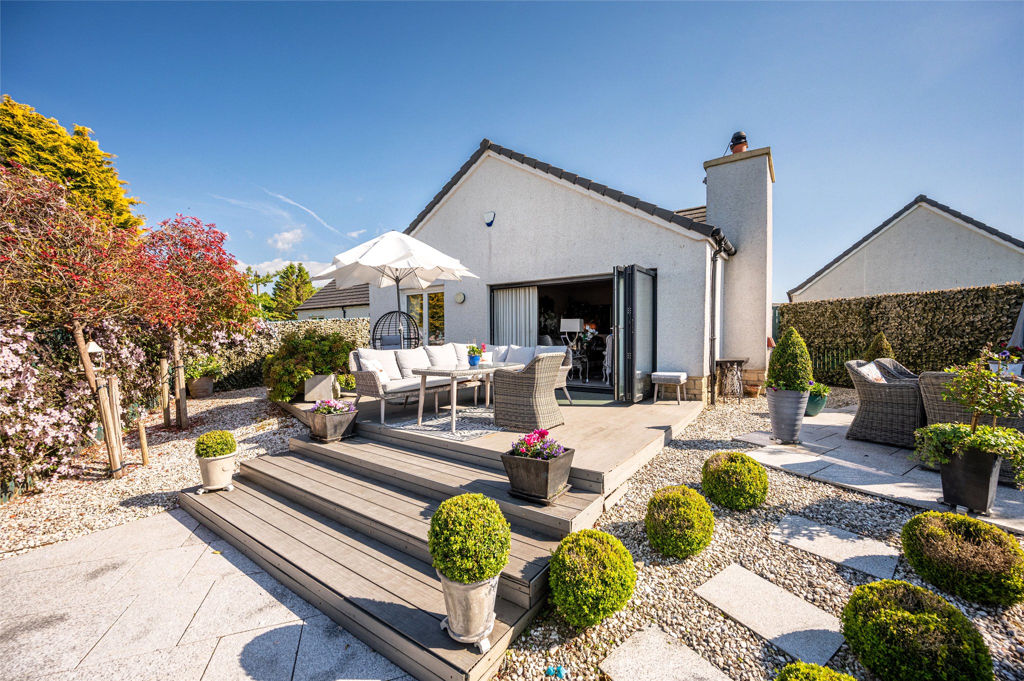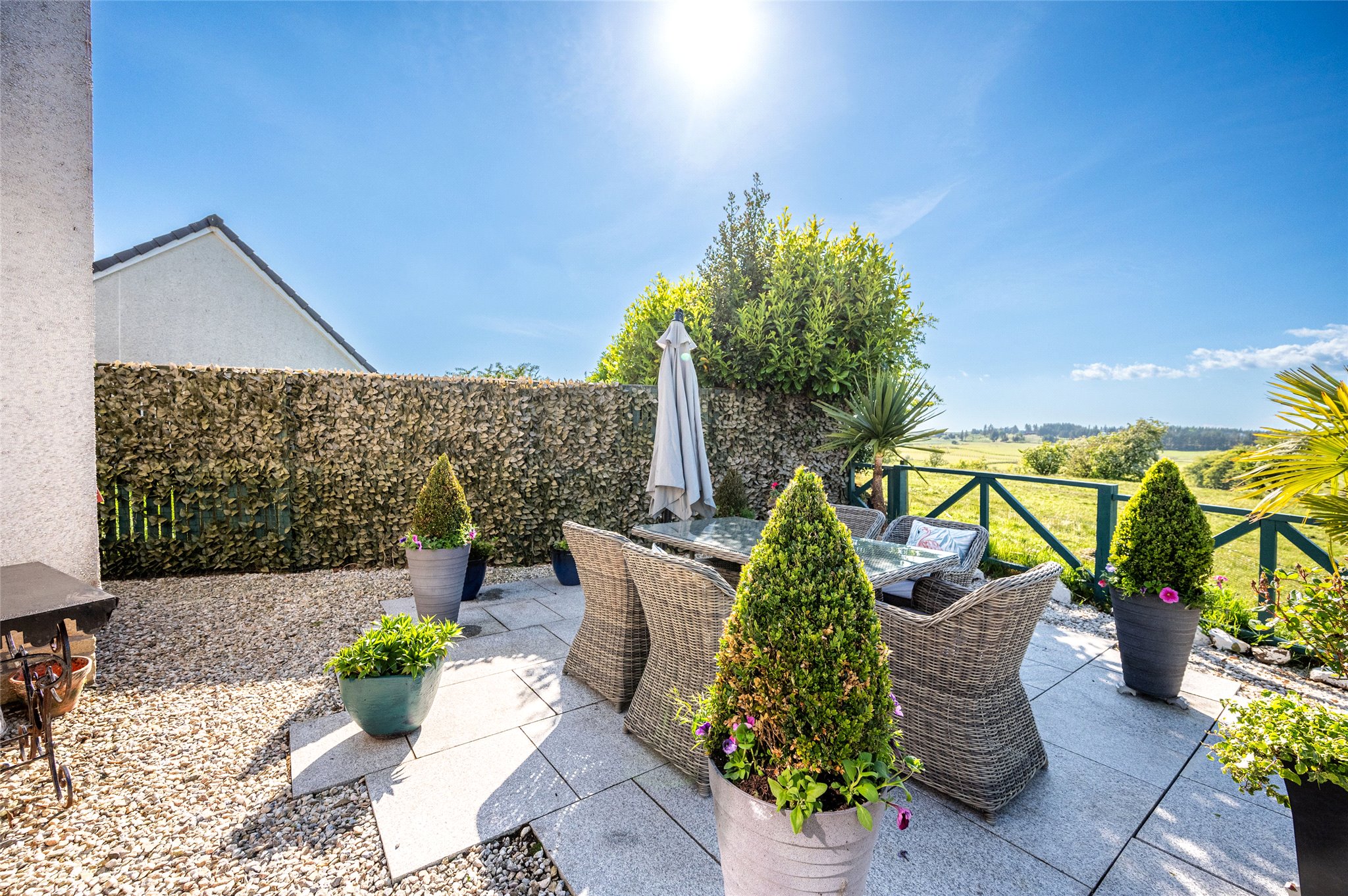 A particular highlight of this outstanding home is the remarkable rear garden—rarely available and truly exceptional. It features a decked terrace, separate patio areas ideal for entertaining, stunning open views across farmland to Glasgow, and beautifully stocked, colourful borders throughout.