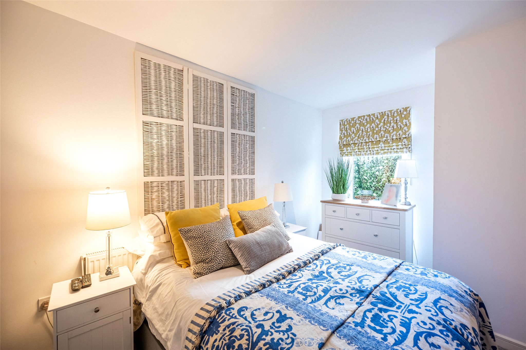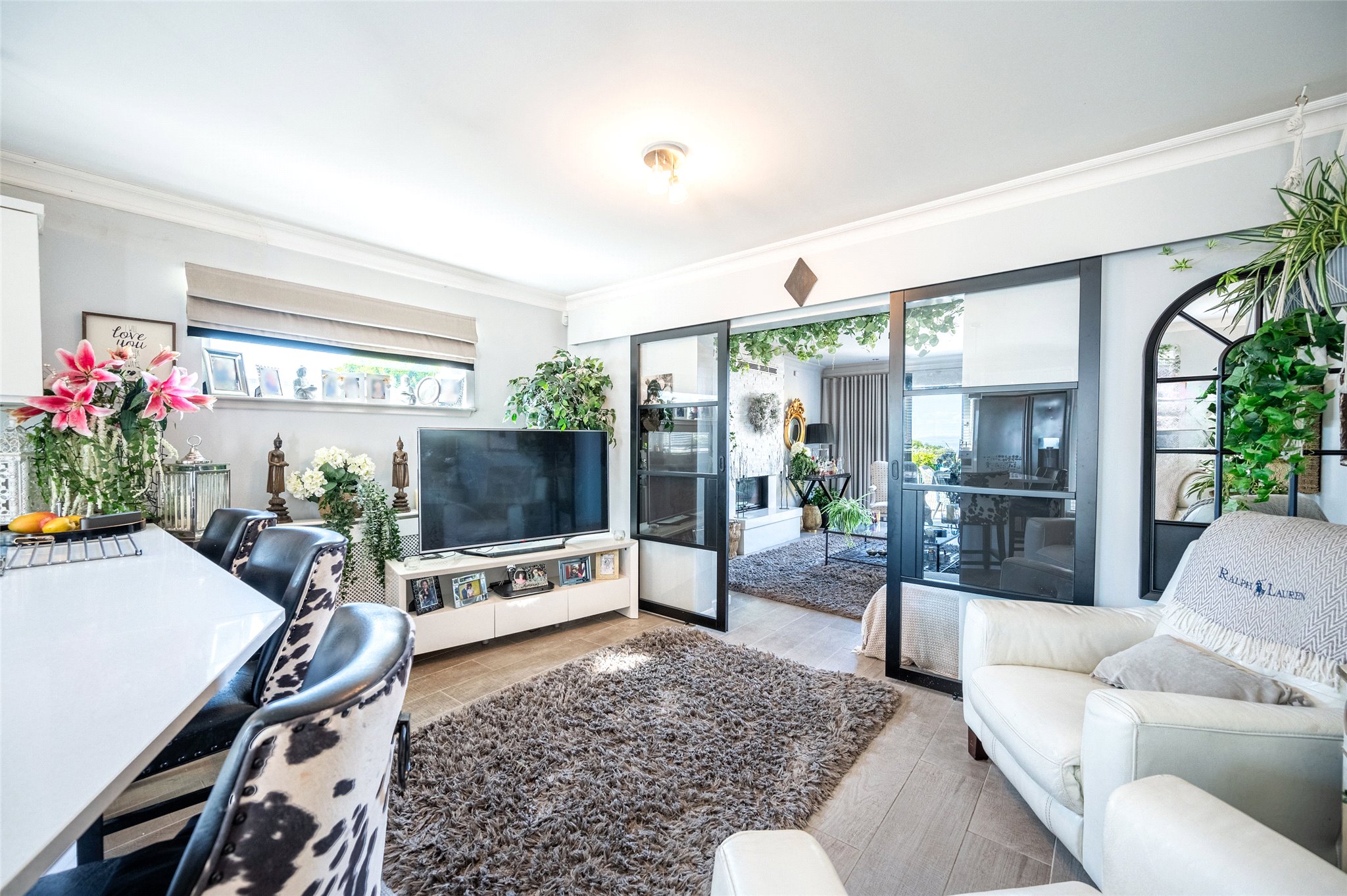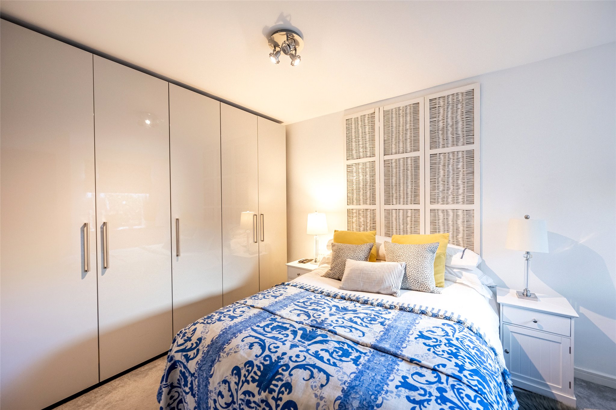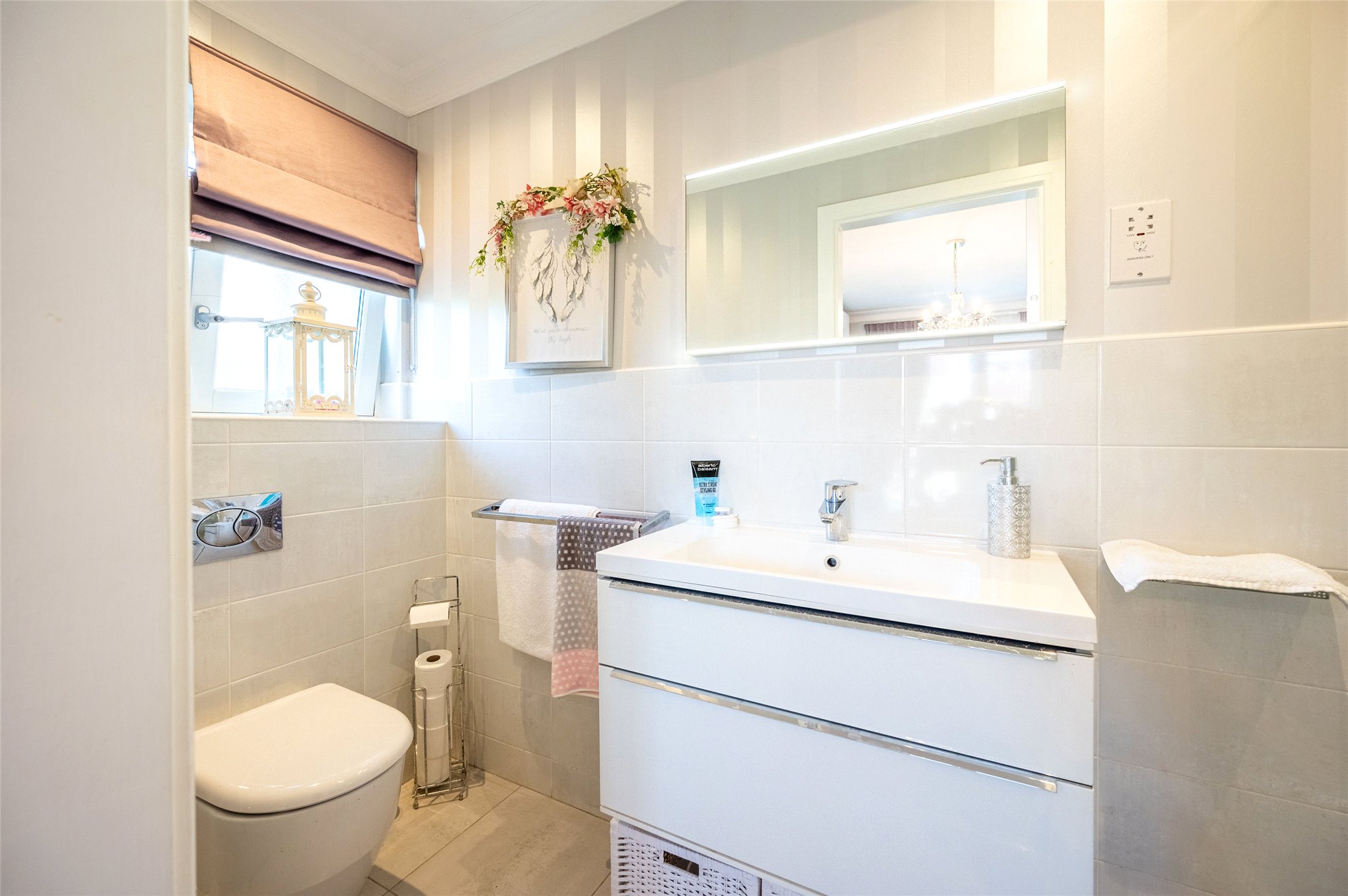 The accommodation is completed by two double bedrooms, both with fitted wardrobes. The principal bedroom benefits from a sleek en-suite shower room, with patio doors to rear garden. While a well-appointed house bathroom serves the rest of the home.