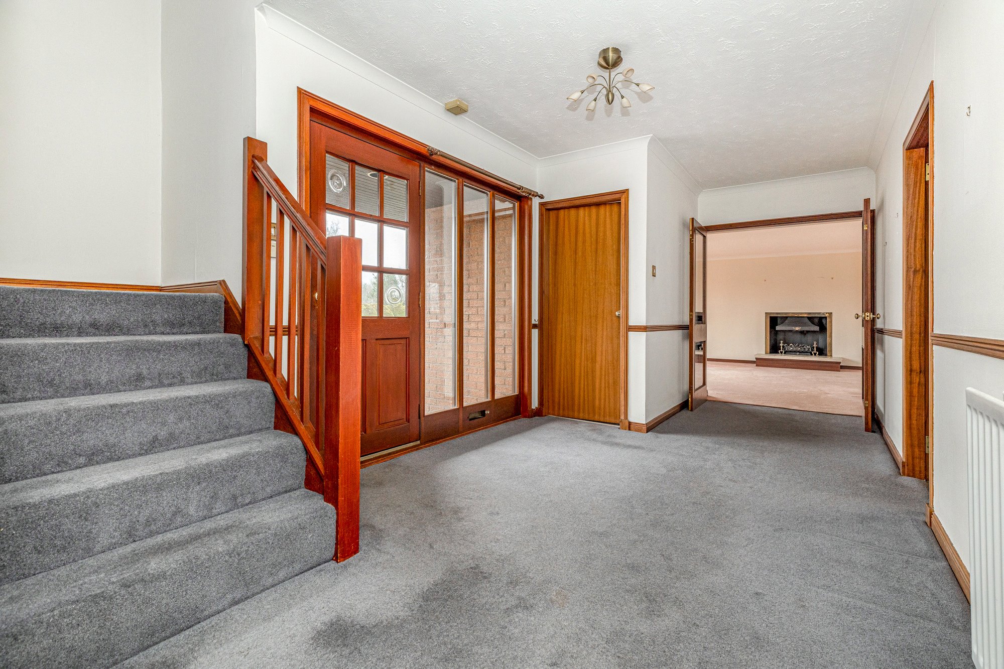 The ground floor accommodation features a welcoming reception hallway, leading to a large sitting room with dual aspects to the front and rear, offering picturesque views of the surrounding gardens. The layout also includes a formal dining room, a versatile office/additional bedroom, and a well-appointed dining kitchen with wall-mounted and floor-standing units, seamlessly connecting to a bright conservatory. A separate utility room provides additional convenience. The guest WC is accessed off the hallway, while an internal door offers direct access to the double garage and completes the lower level.