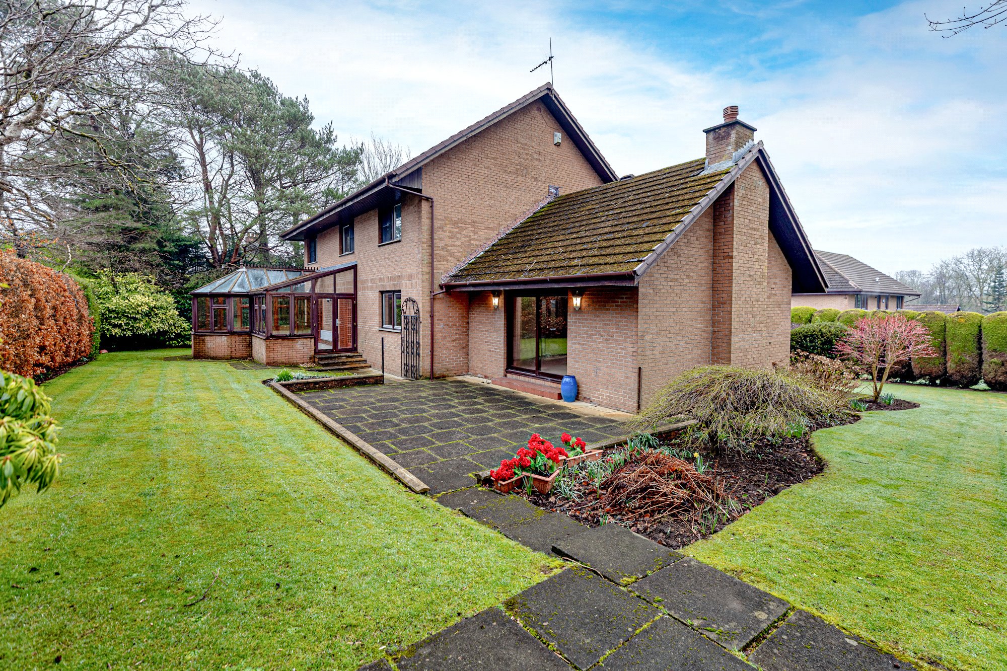 This fine home also boasts gas central heating and double glazing. The large driveway offers ample off-street parking, leading to an integral double garage for extra practicality. A standout feature of the property is the expansive and beautifully landscaped gardens that wrap around the home, providing a serene outdoor space. The patio area is perfect for entertaining, while the generous lawn areas offer plenty of space for relaxation or outdoor activities.