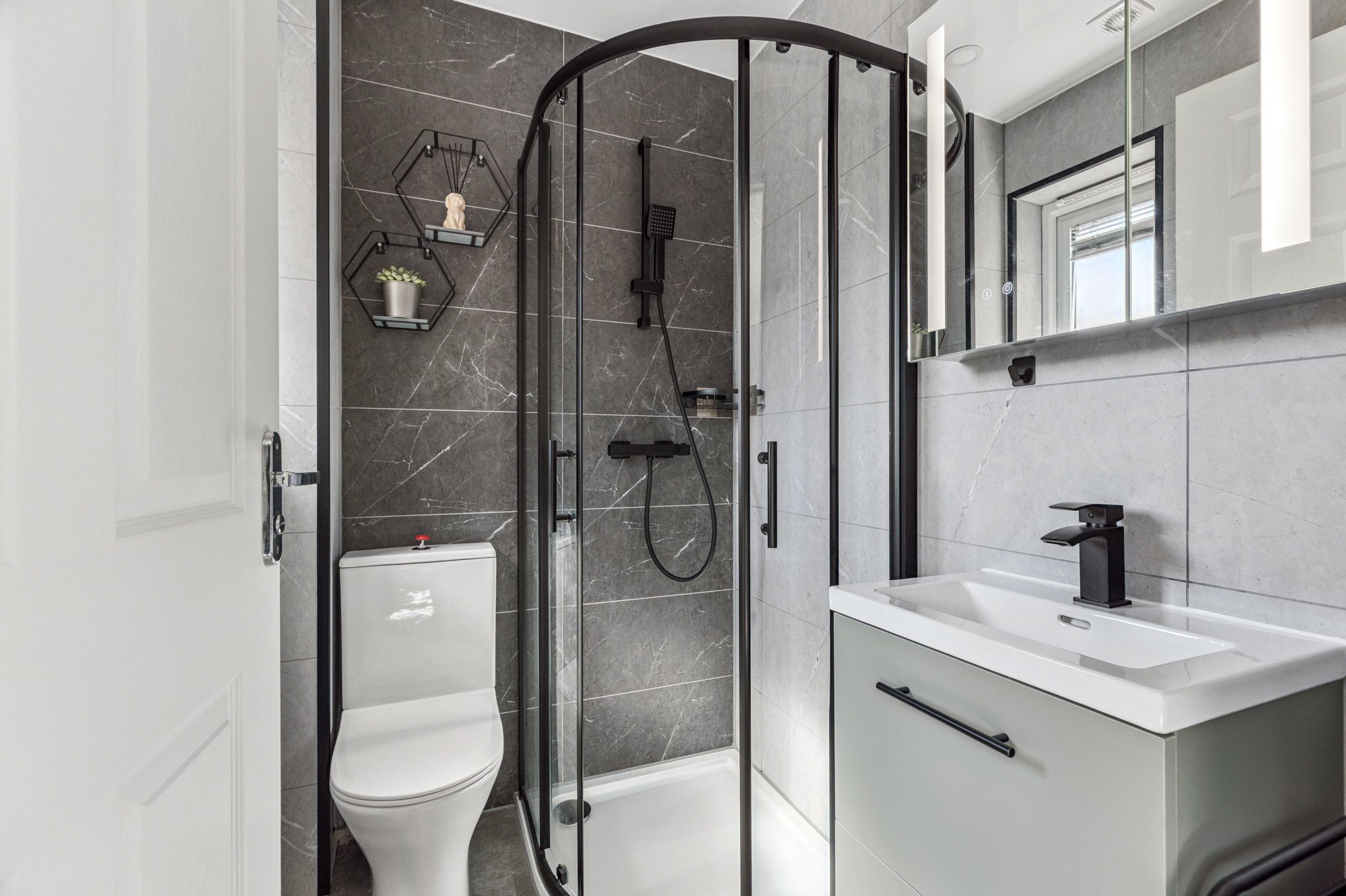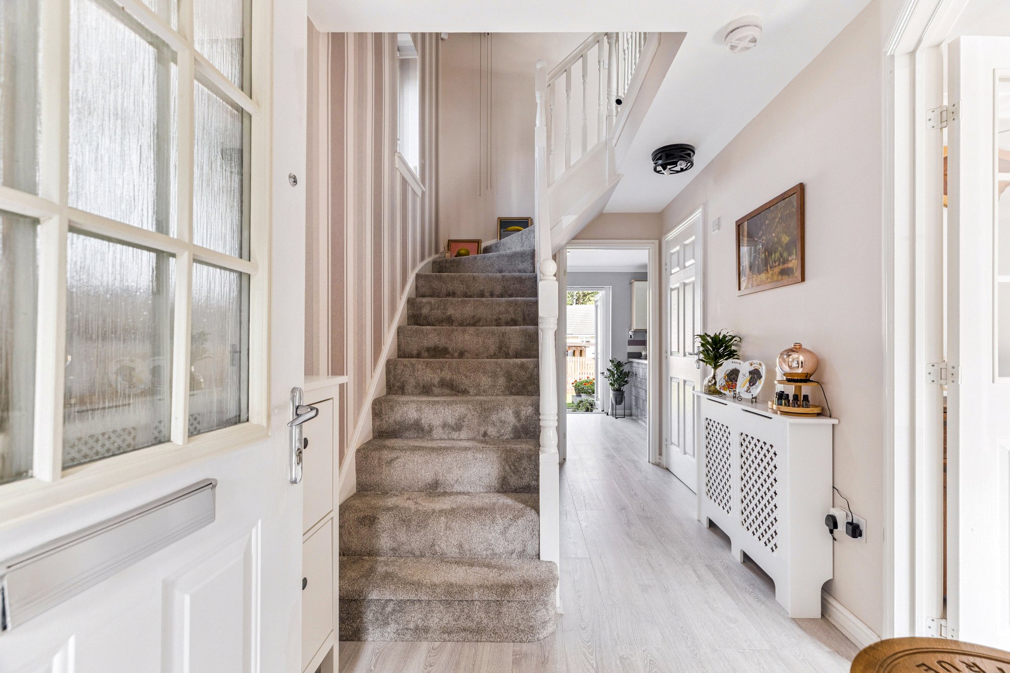 Upstairs, the accommodation comprises three well-proportioned bedrooms. The principal bedroom enjoys the luxury of a private en-suite shower room ( and built-in wardrobe space.