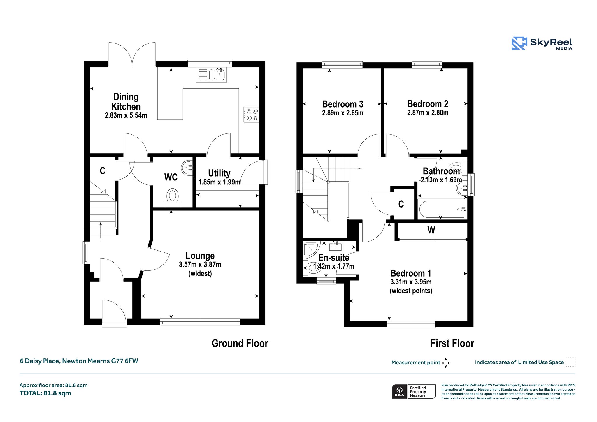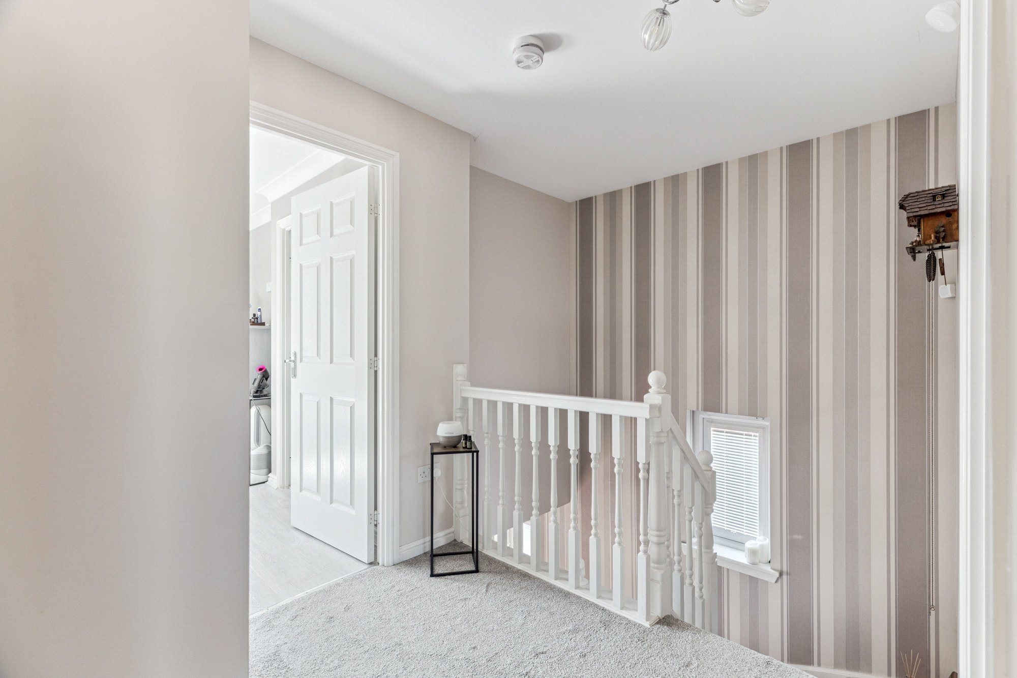 Bedroom 2 and Bedroom 3 are both bright and versatile, ideal for children, guests, or use as a home office. A stylish family bathroom completes the upper level, along with an additional storage cupboard (C) on the landing.