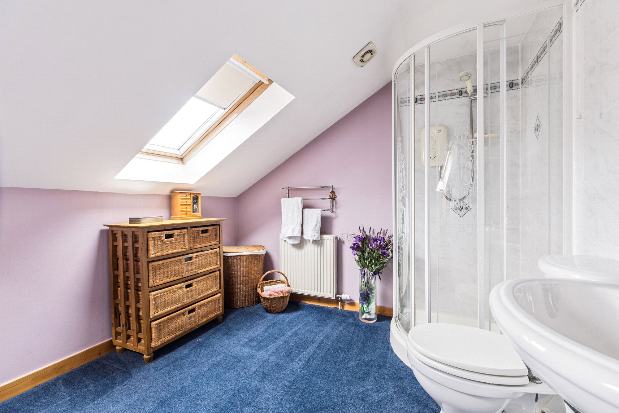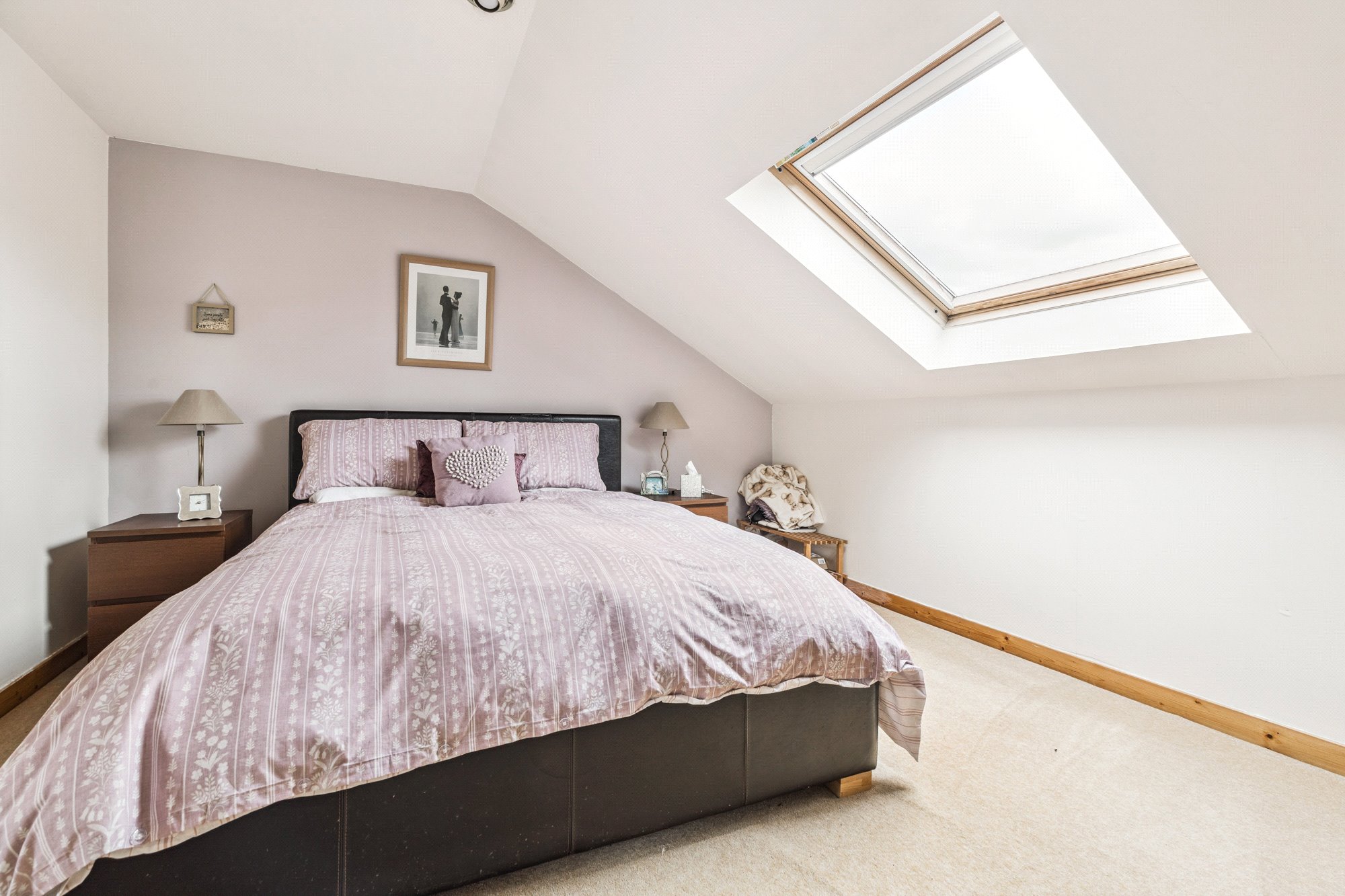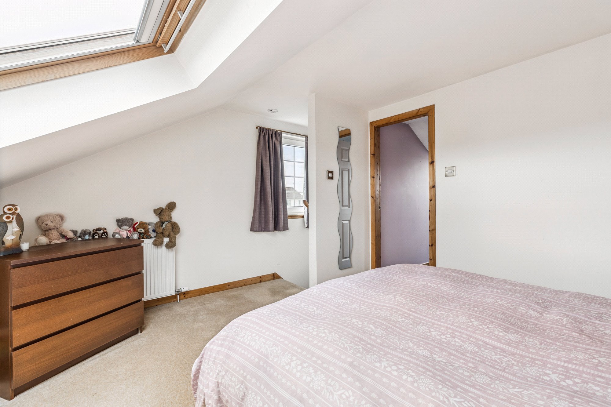 Upstairs, the principal bedroom provides a private and peaceful sanctuary, boasting Velux windows that flood the space with natural light, built-in storage, and an en suite shower room.
