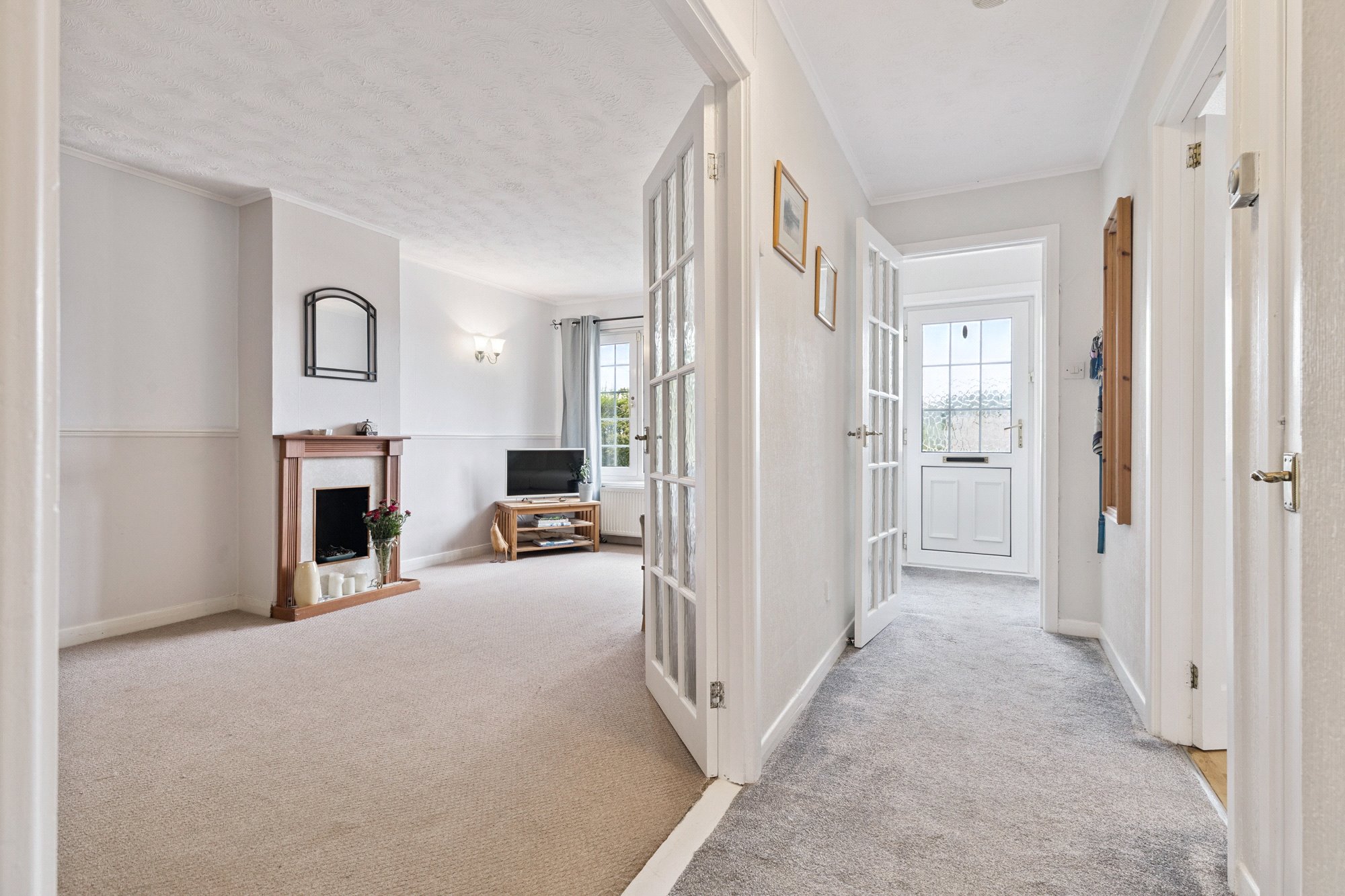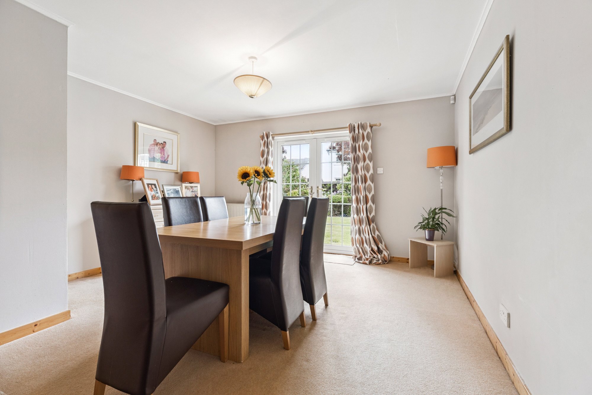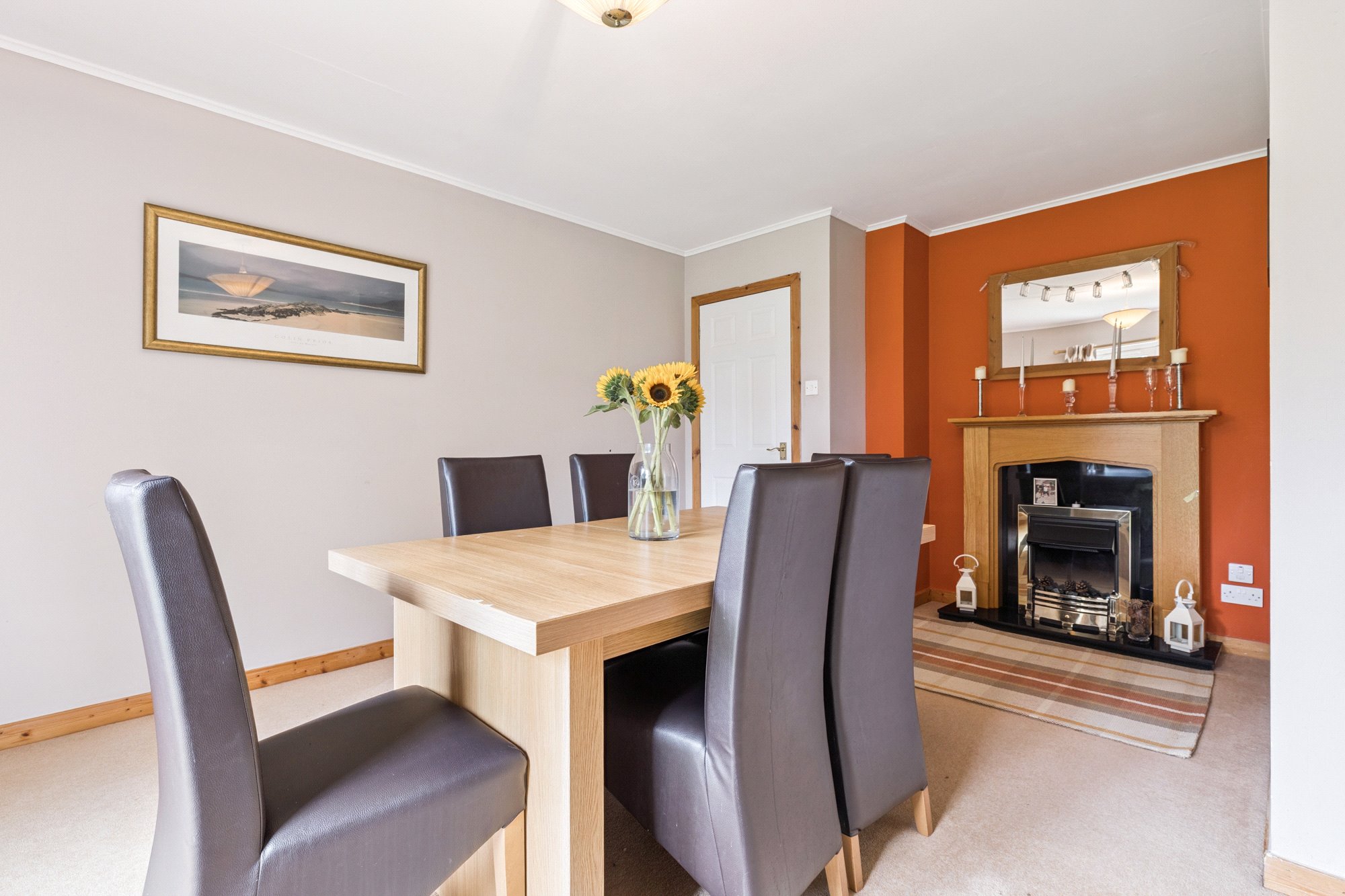 Upon entry, a welcoming hallway leads into a lounge, highlighted by a central fireplace and ample space for relaxing or entertaining. A second sitting room enjoys pleasant views over the front garden. The separate formal dining room, complete with French doors opening to the garden, also houses the staircase to the upper level, adding charm and character to the space. The well-equipped kitchen features a range of wall-mounted and floor-standing units and direct access to the rear garden - ideal for al fresco dining. Also on this level are two double bedrooms, each with built-in wardrobes, and a family bathroom with a three-piece suite.