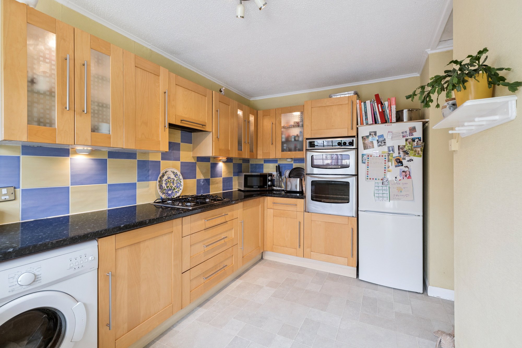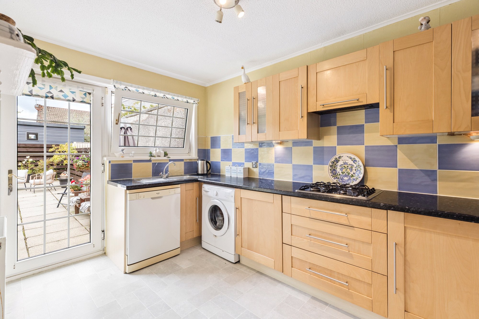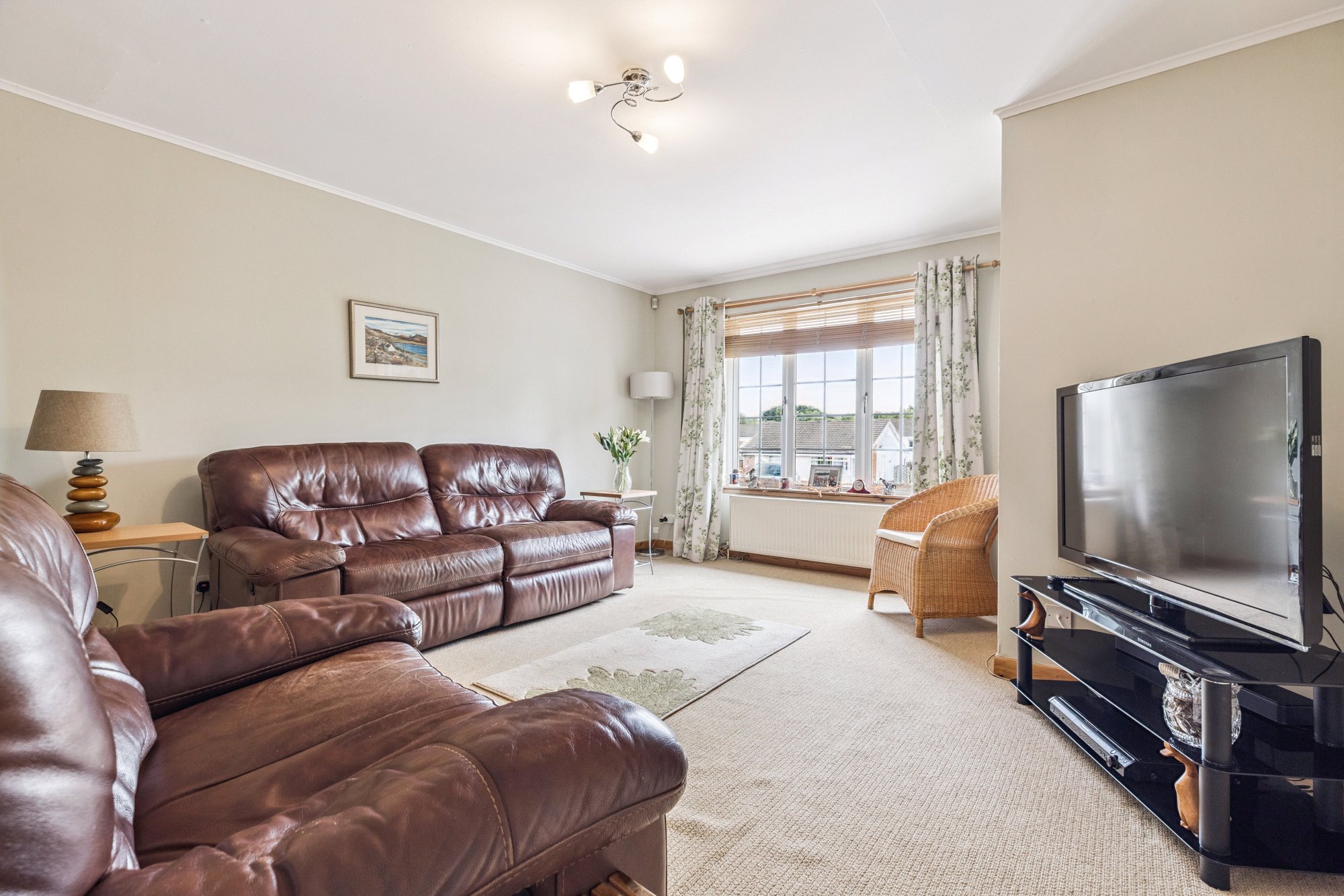 Upon entry, a welcoming hallway leads into a lounge, highlighted by a central fireplace and ample space for relaxing or entertaining. A second sitting room enjoys pleasant views over the front garden. The separate formal dining room, complete with French doors opening to the garden, also houses the staircase to the upper level, adding charm and character to the space. The well-equipped kitchen features a range of wall-mounted and floor-standing units and direct access to the rear garden - ideal for al fresco dining. Also on this level are two double bedrooms, each with built-in wardrobes, and a family bathroom with a three-piece suite.