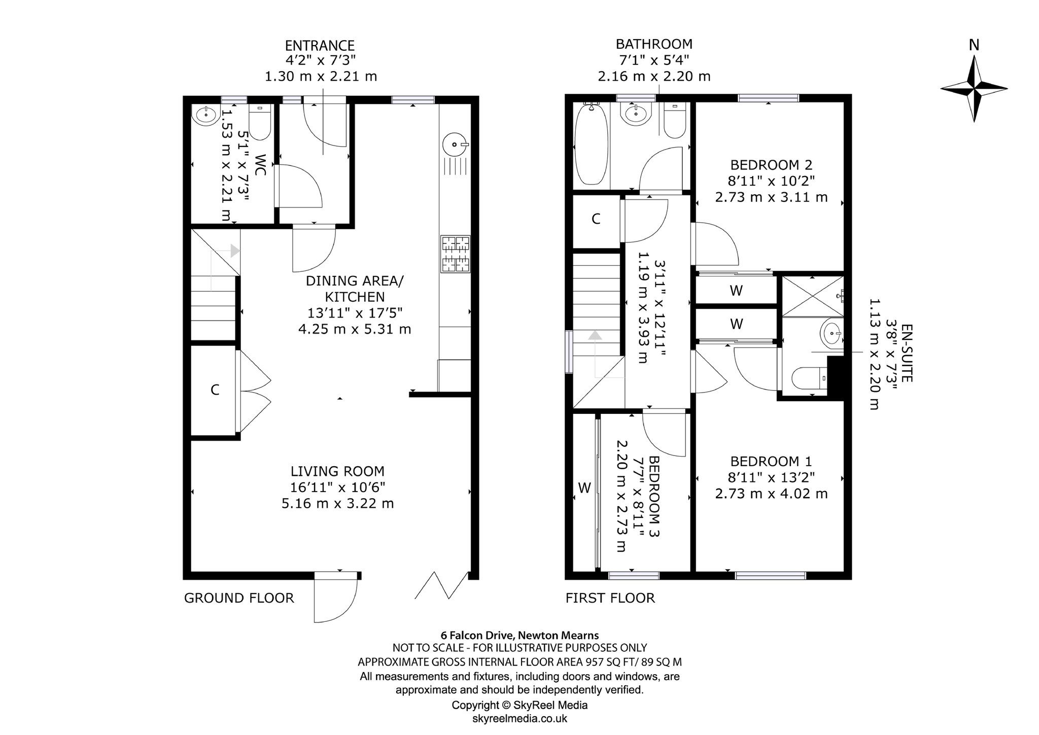 Ascending to the first floor, you will find three well-proportioned bedrooms, including a generous primary bedroom complete with an en-suite shower room. A stylish family bathroom, fitted with a modern three-piece suite, serves the remaining bedrooms.