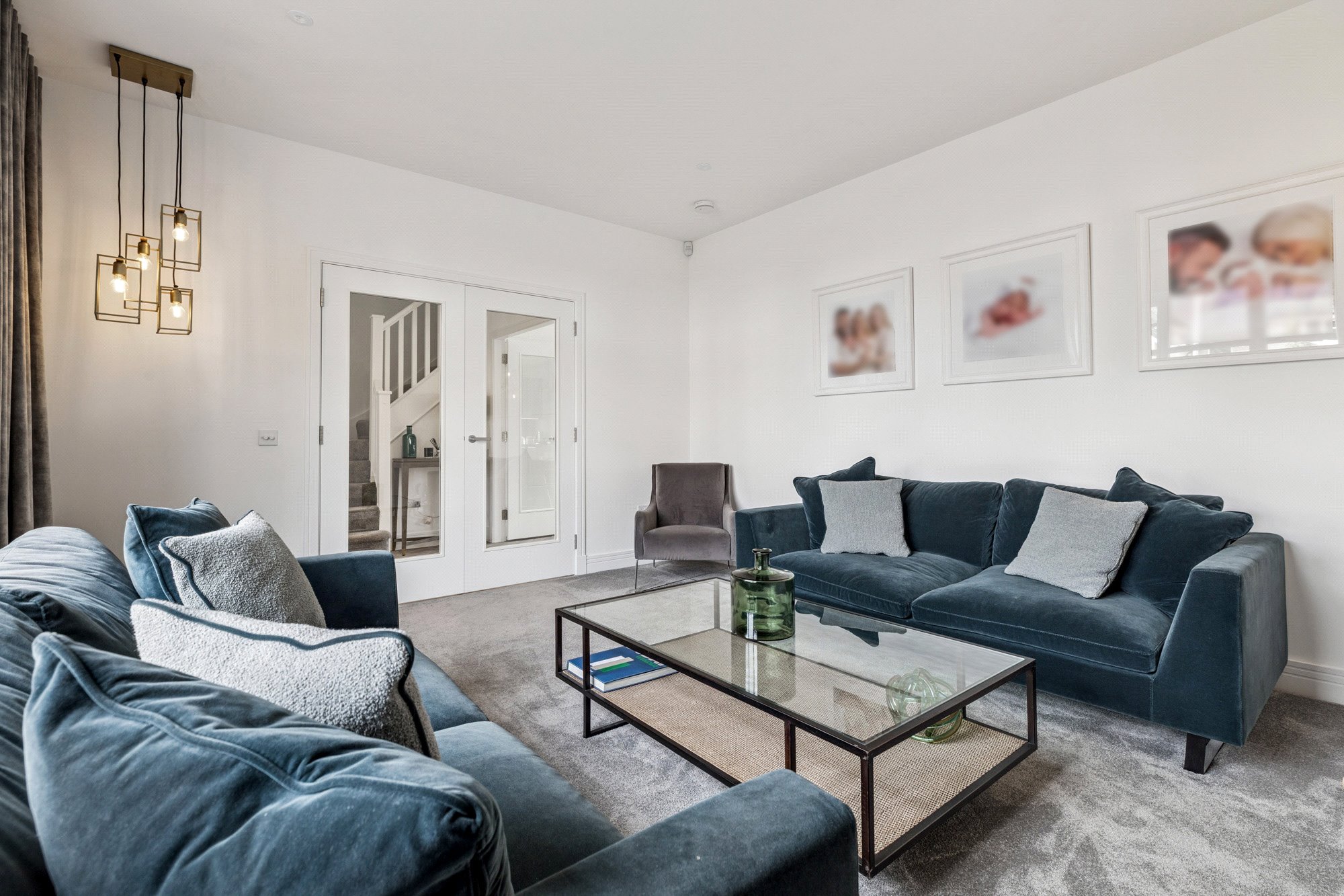 Set across two floors, the home welcomes you with a bright entrance vestibule and cloakroom/WC, leading into an elegant hallway. From here, French doors open into a formal lounge at the front of the property flooded with natural light. To the rear, the show-stopping dining kitchen and family room stretch the full width of the home. This open-plan space has been thoughtfully designed for modern living, featuring sleek fitted cabinetry, integrated appliances, and bi-fold doors that flow effortlessly to the private rear garden. A separate utility room with access to both the garden and garage provides everyday convenience.