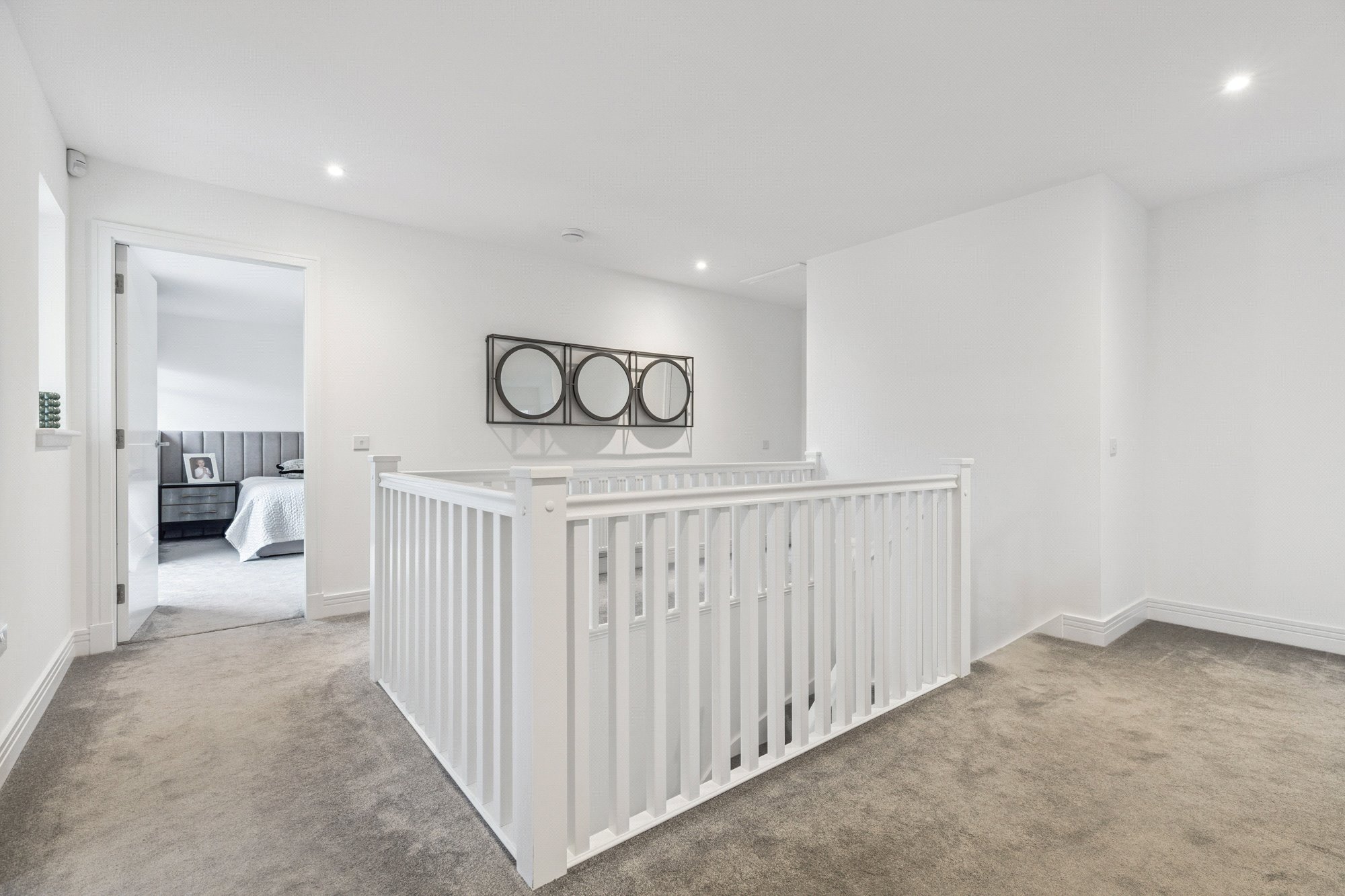 Upstairs, the galleried landing introduces five spacious bedrooms, each tastefully presented. Both the principal and guest bedrooms benefit from their own en-suite shower rooms, while the family bathroom is finished with a high-spec four-piece suite including a separate shower enclosure.