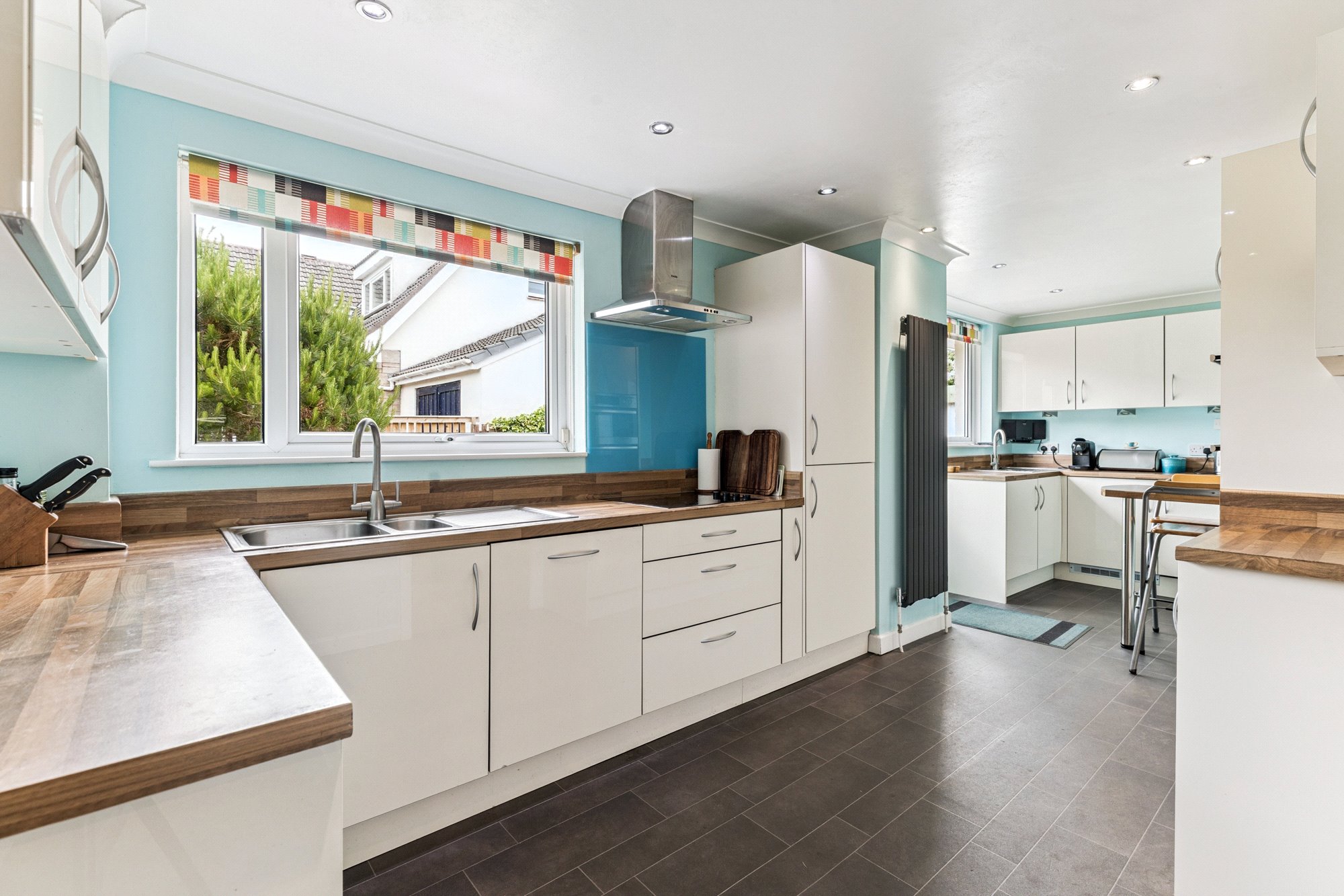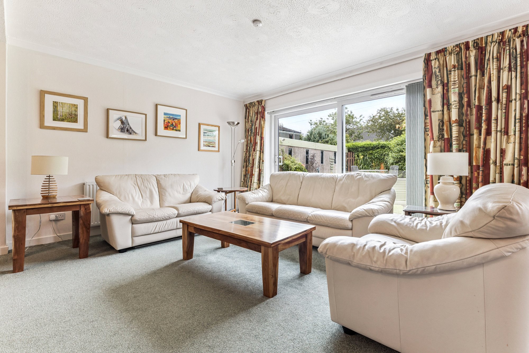 Lovingly maintained by its current owners, the property is entered via an inviting entrance vestibule leading to a bright and welcoming reception hallway. The ground floor features a formal lounge with direct access to the rear garden, arranged in an open-plan layout with a designated dining area and a versatile study/library space — ideal for modern family living. To the front of the home is a comfortable family room overlooking the well-kept front gardens. The contemporary breakfasting kitchen is fitted with a comprehensive range of wall-mounted and floor-standing units, complementary work surfaces, integrated appliances, a breakfast bar, and access to both a large store and the side of the property. A well-proportioned double bedroom and a recently refitted guest shower room complete the downstairs accommodation.