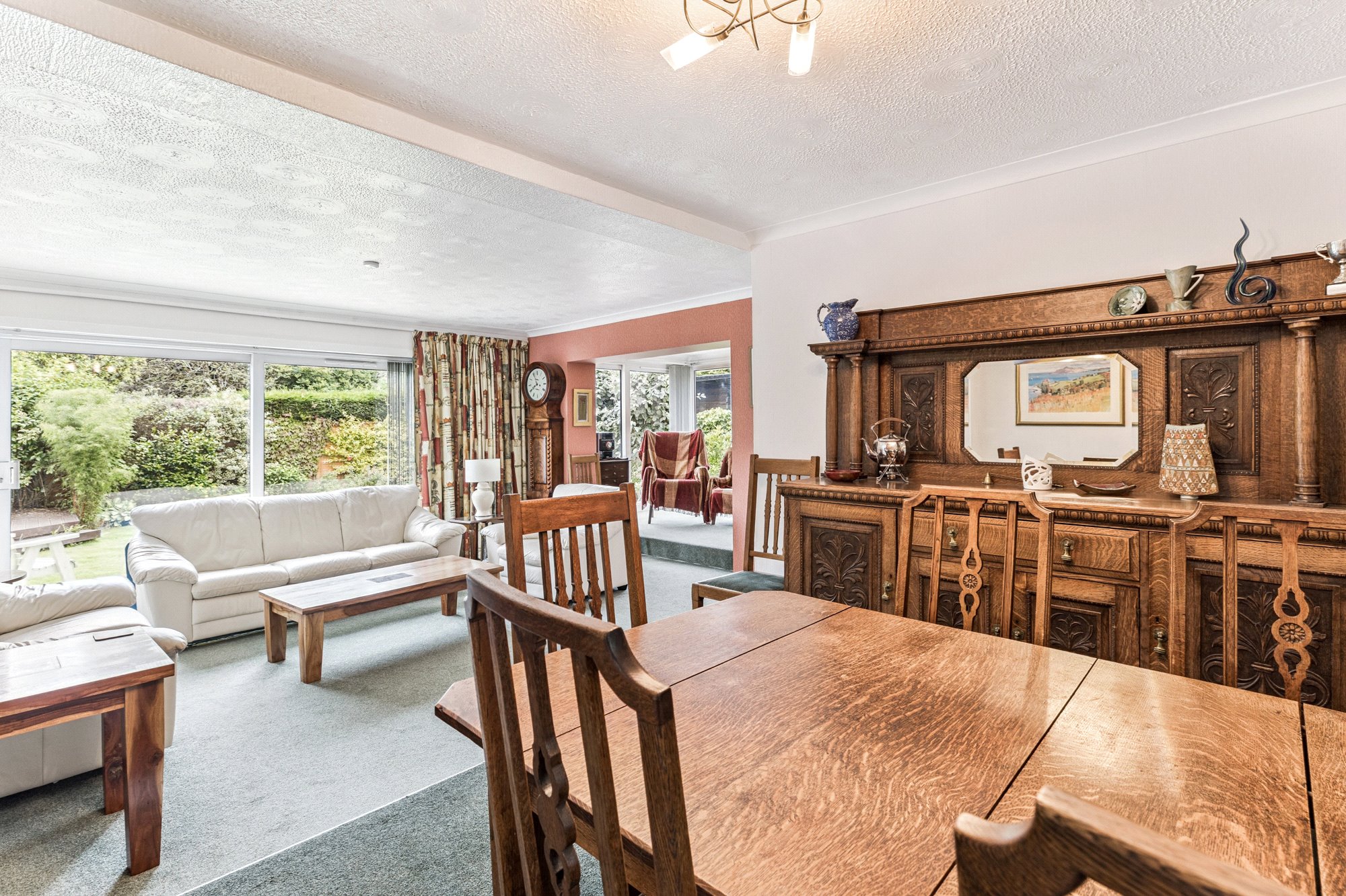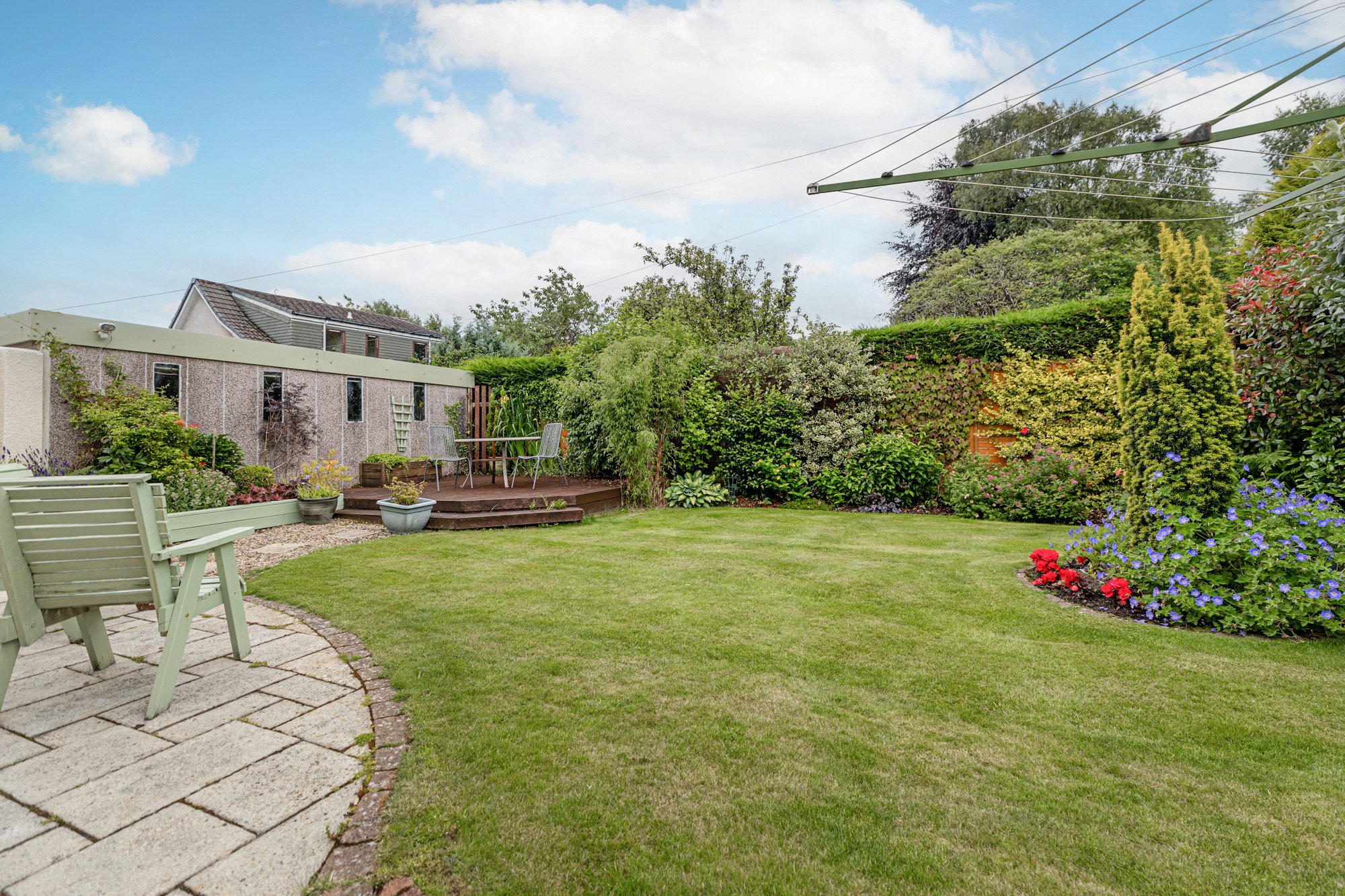 Additional benefits include gas central heating, double glazing, and a driveway that provides ample off-street parking and leads to a detached double garage. Externally, the home is set within beautifully maintained garden grounds, featuring expansive lawn areas, a terrace for outdoor dining and relaxation, and beautiful, well-stocked borders.