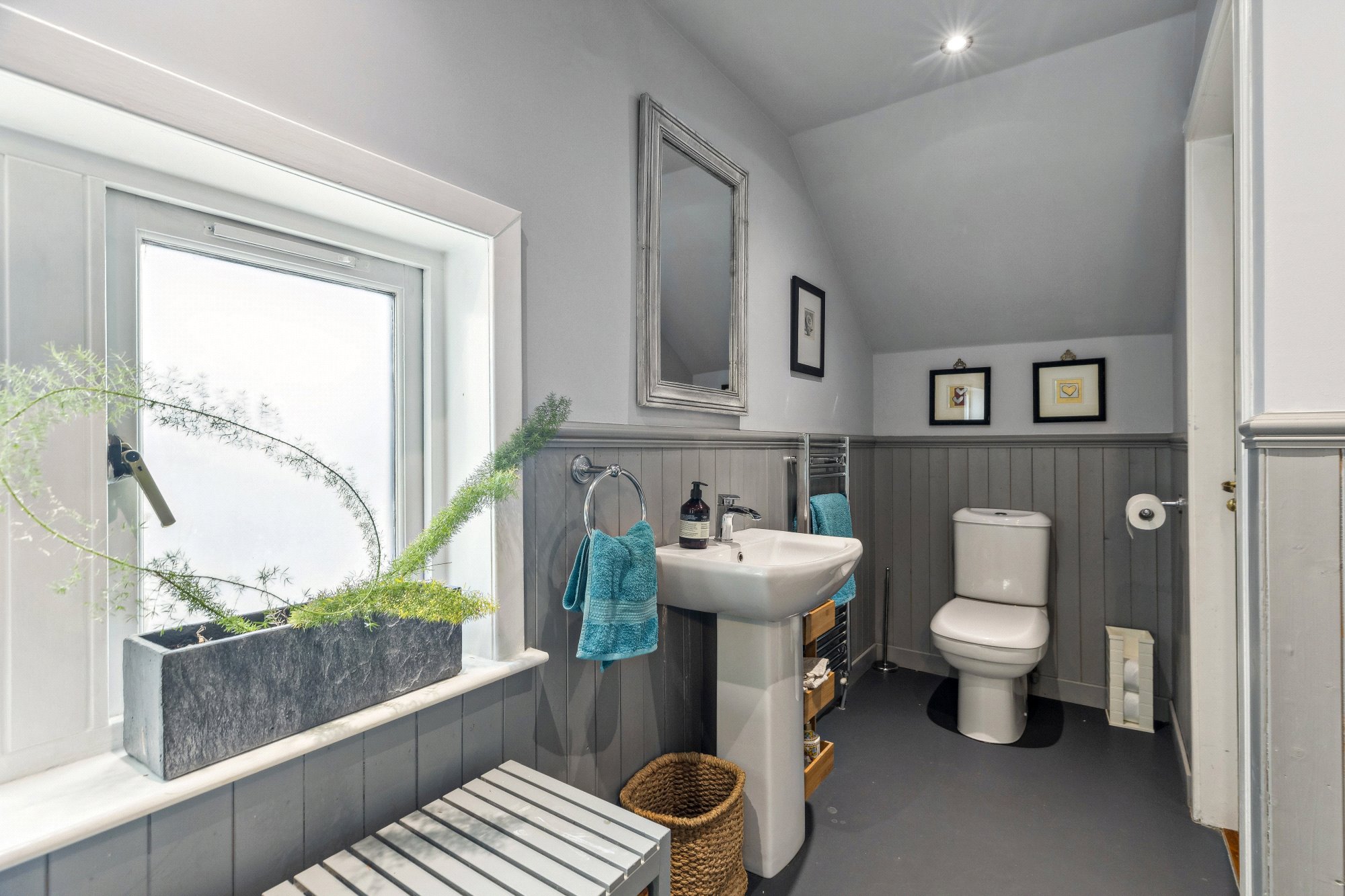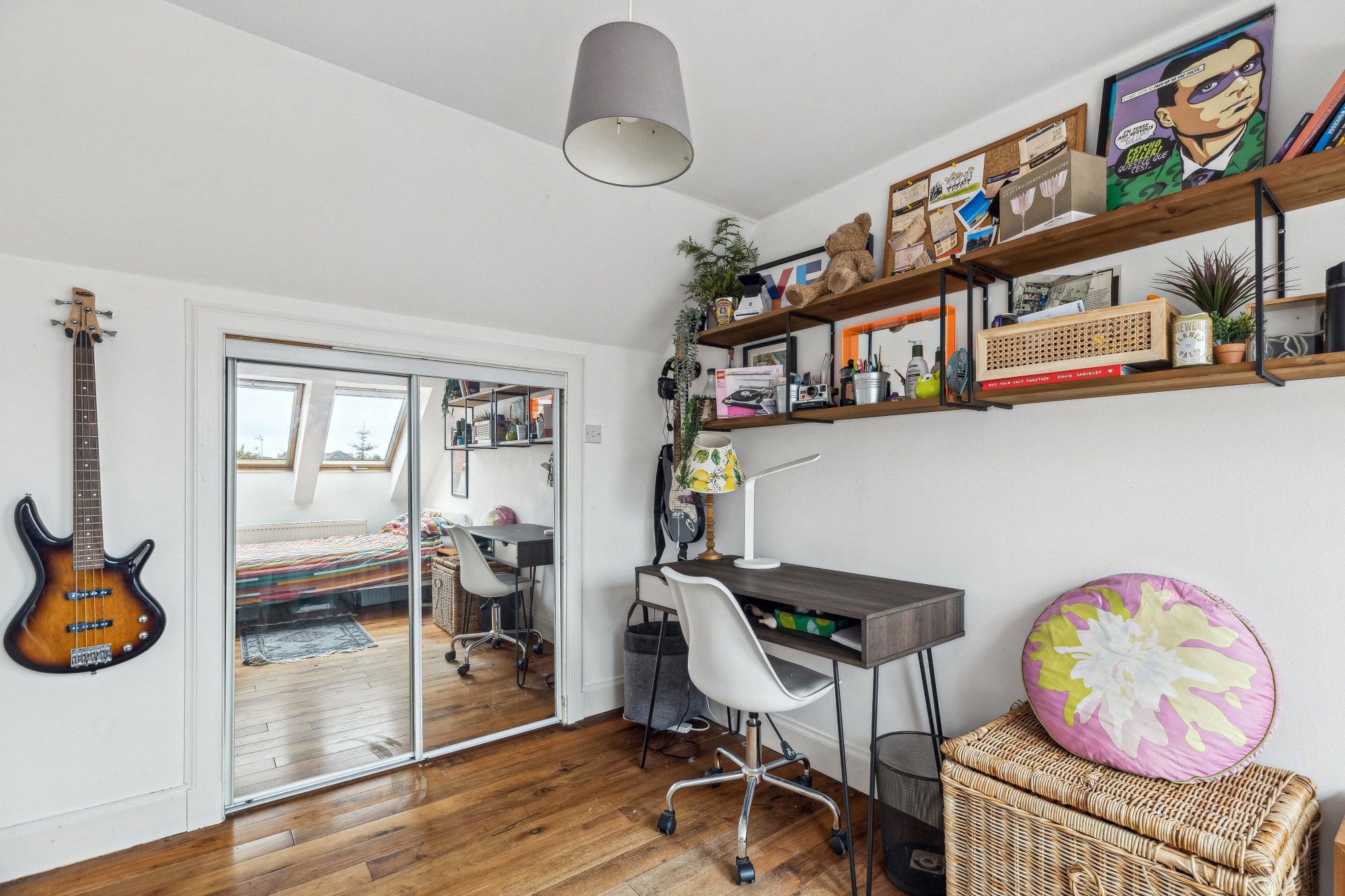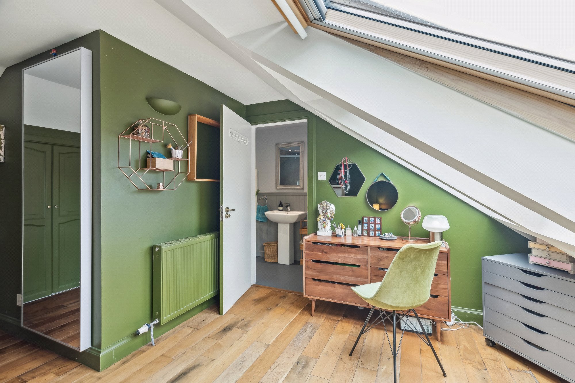 Upstairs, you’ll find four further bedrooms, each with distinctive charm and generous proportions. The principal suite includes a luxurious en-suite and ample wardrobe space, while other rooms enjoy views over the gardens and access to a beautifully appointed bathroom and shower room. Clever architectural detailing and void spaces add volume and natural light to the upper floor.