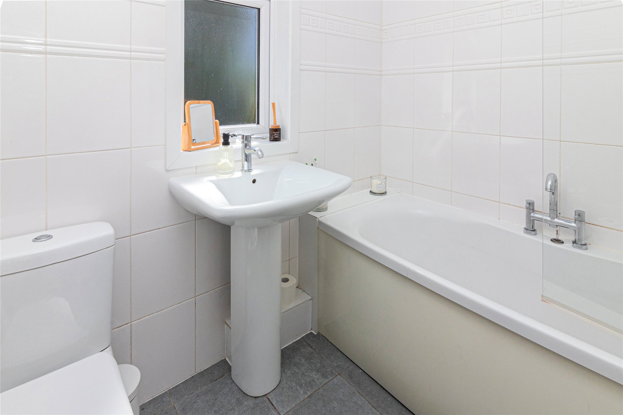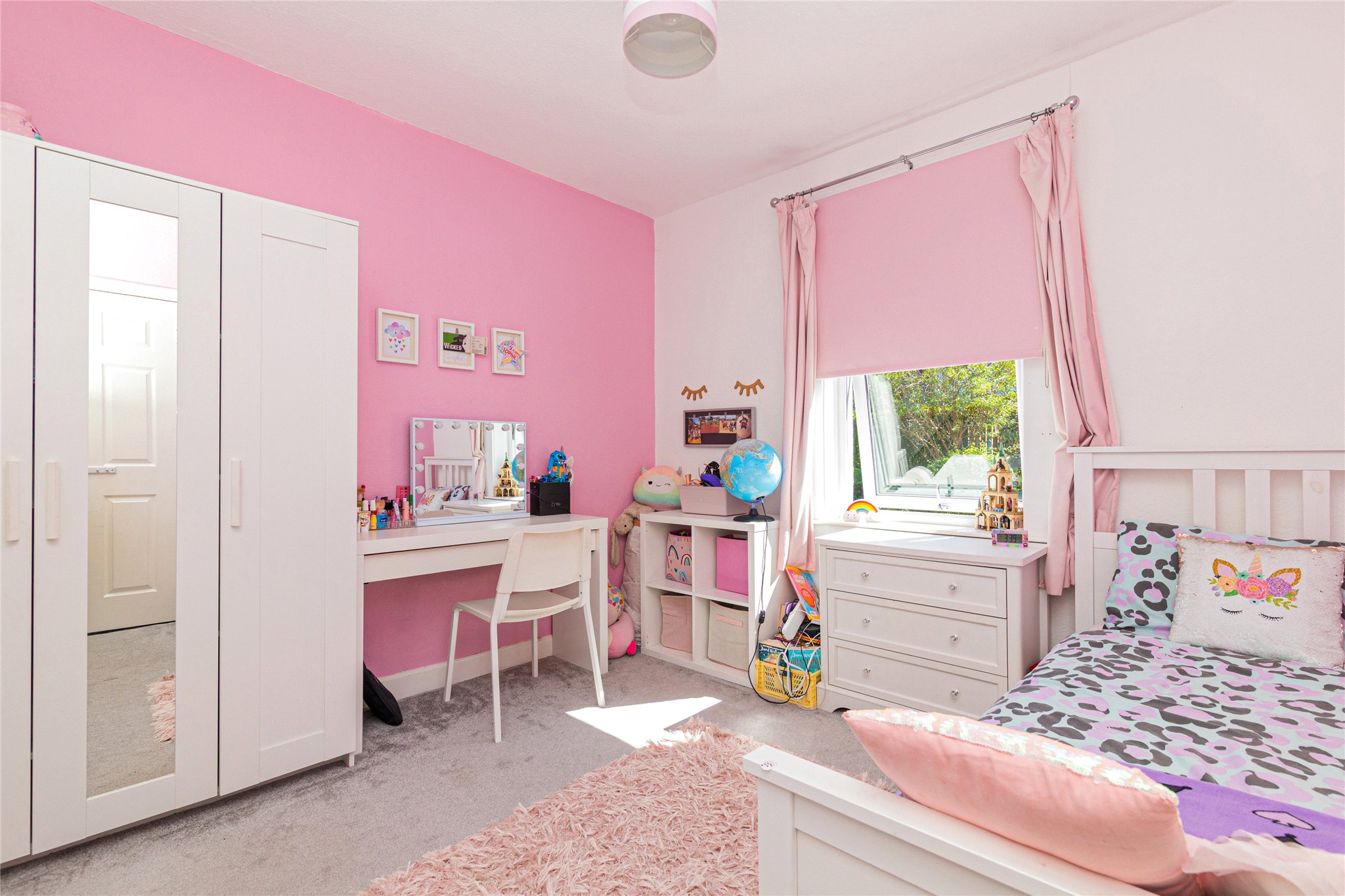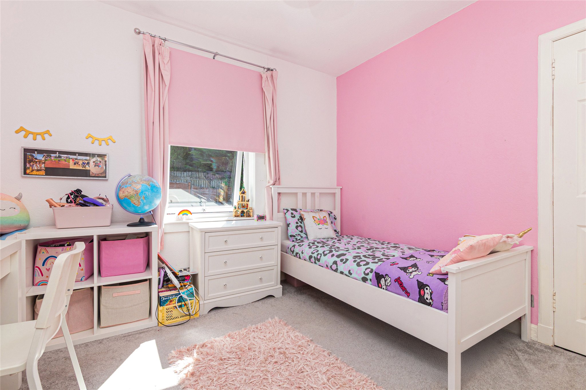 Upstairs, three bedrooms. The principal bedroom is generously sized, offering plenty of natural light, while the second double bedroom is perfect for children or guests. A third bedroom provides the ideal setting for a nursery, home office, or dressing room. The floor is completed by a family bathroom with bath and overhead shower.