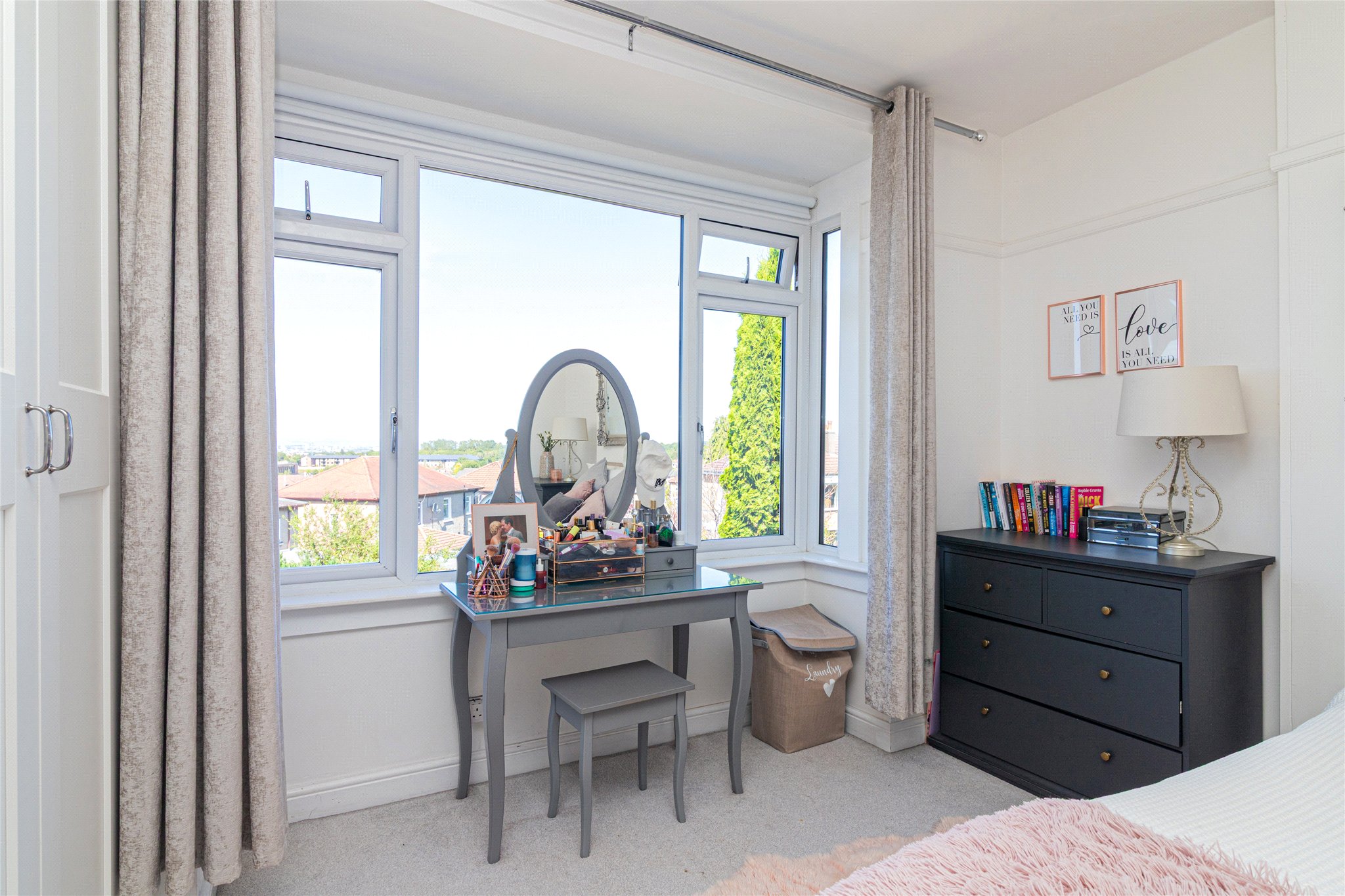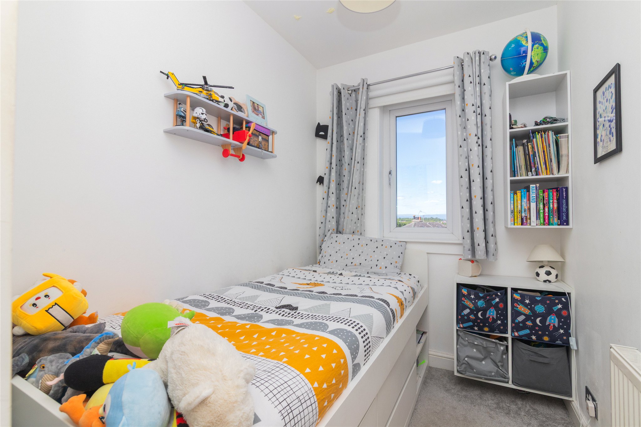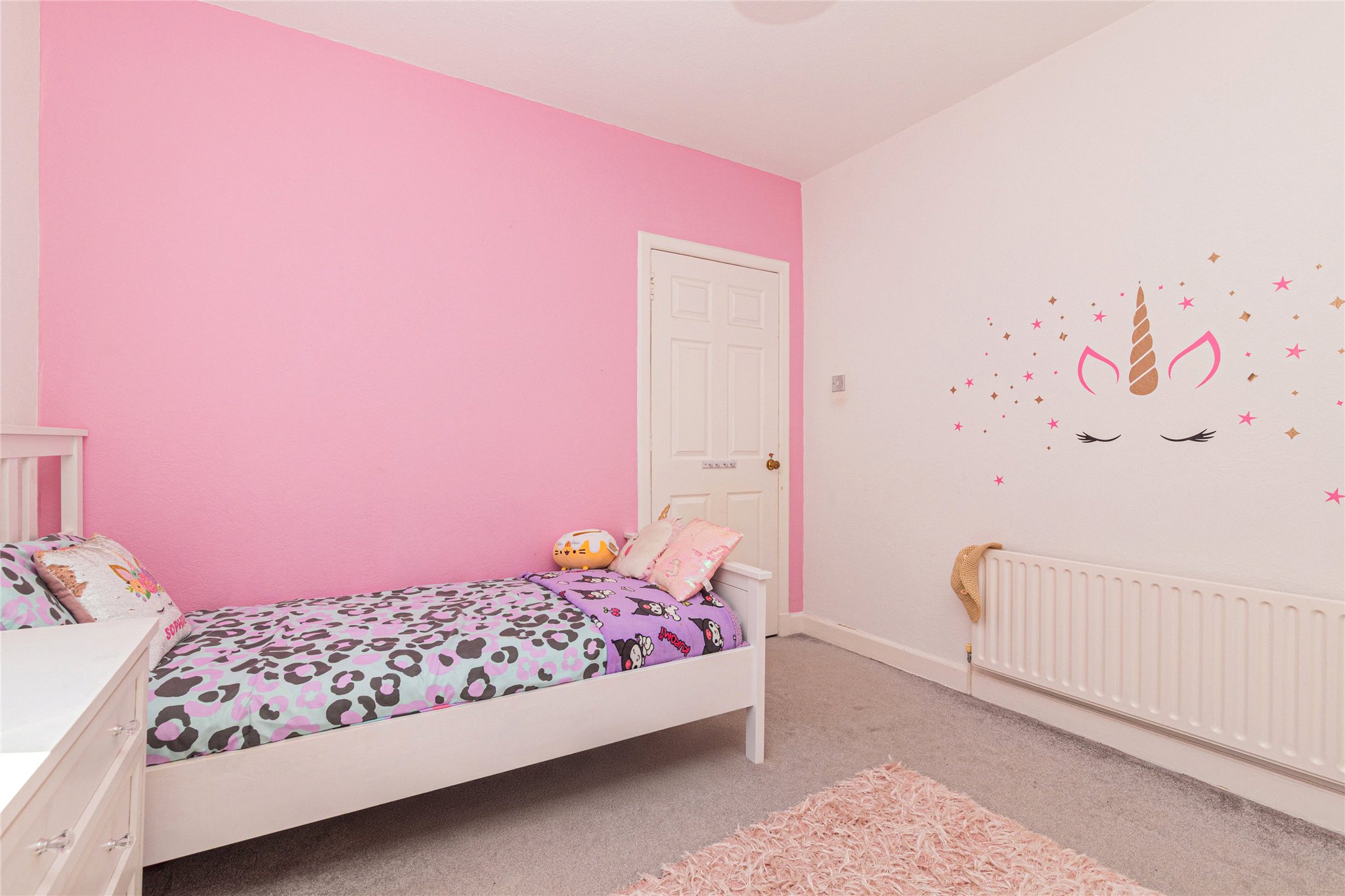 Upstairs, three bedrooms. The principal bedroom is generously sized, offering plenty of natural light, while the second double bedroom is perfect for children or guests. A third bedroom provides the ideal setting for a nursery, home office, or dressing room. The floor is completed by a family bathroom with bath and overhead shower.