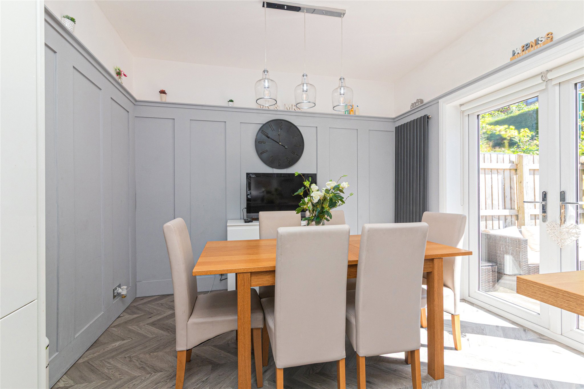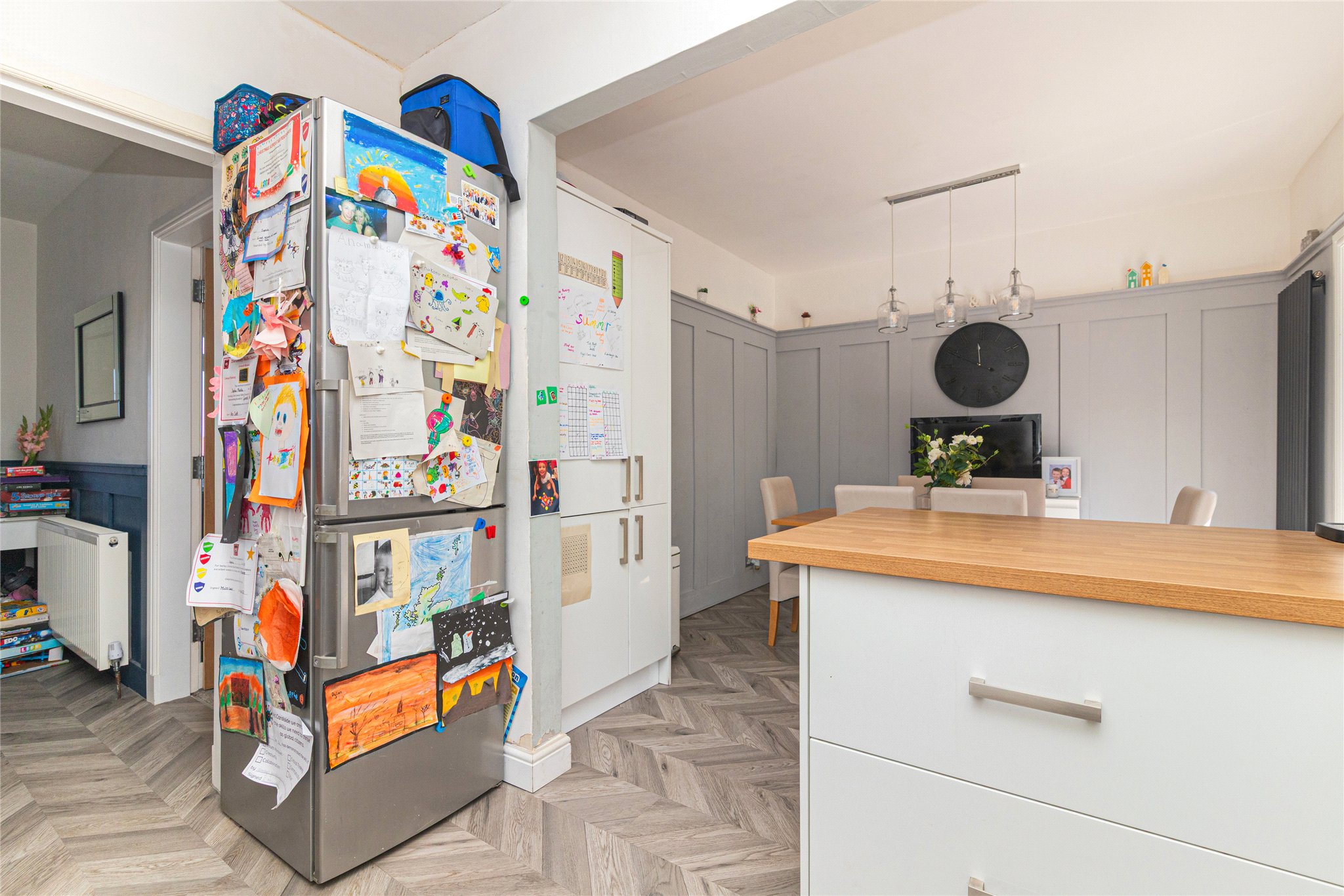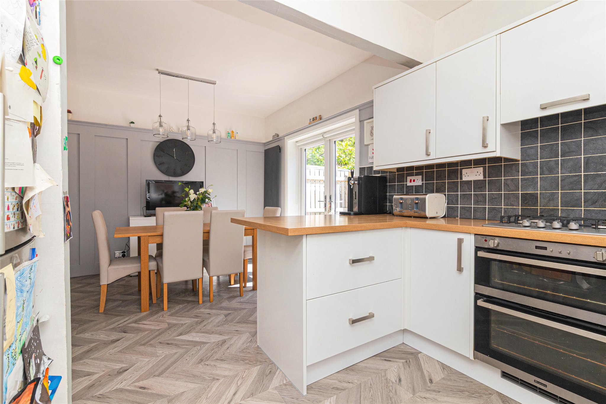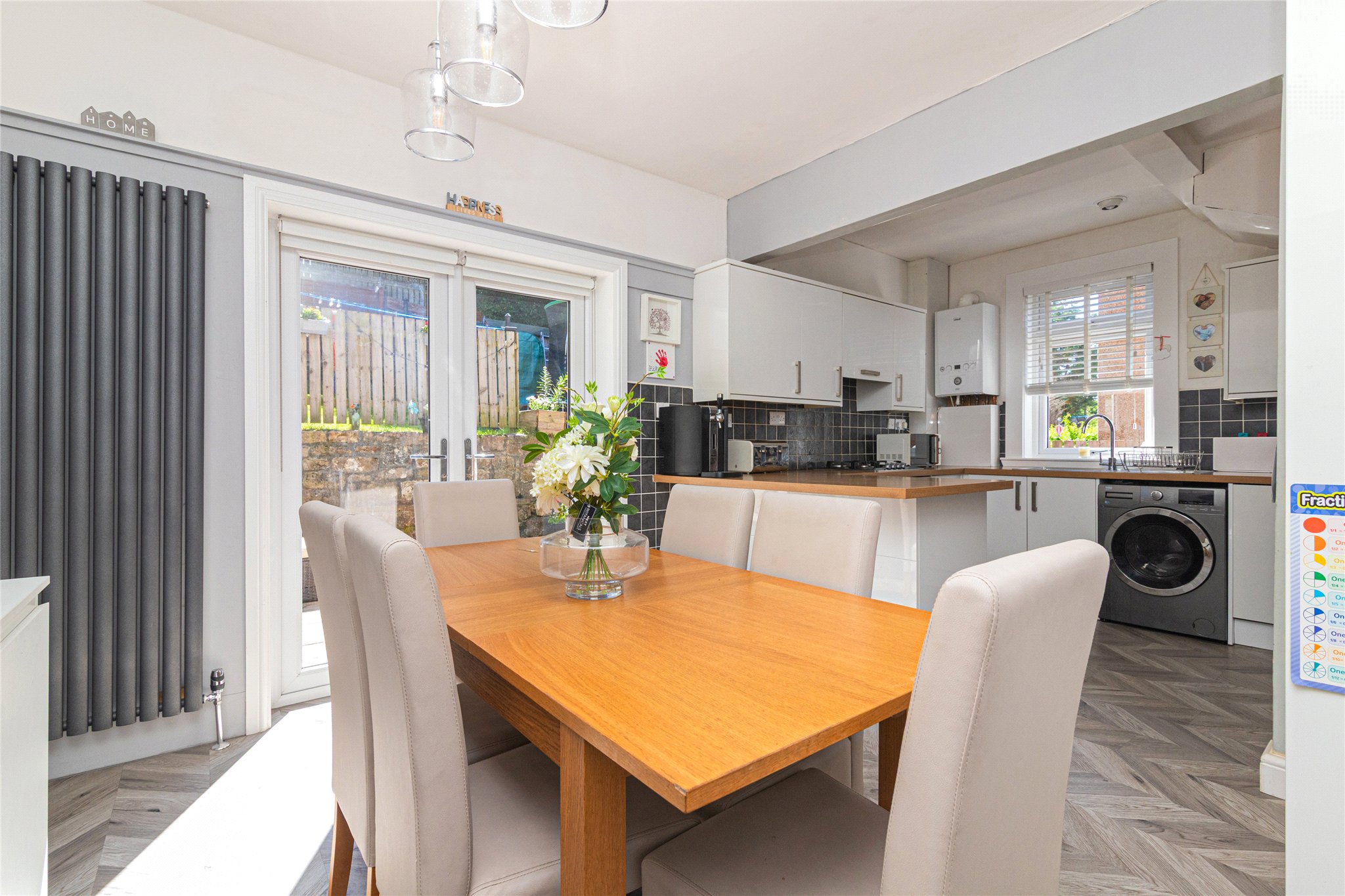 The ground floor welcomes you with a bright and spacious lounge, ideal for relaxing or entertaining. To the rear, an open-plan kitchen and dining area stretches across the width of the property, with French doors opening directly to the garden — perfect for outdoor entertainment. The kitchen features ample worktop space and integrated cabinetry, making it a practical and stylish hub of the home.