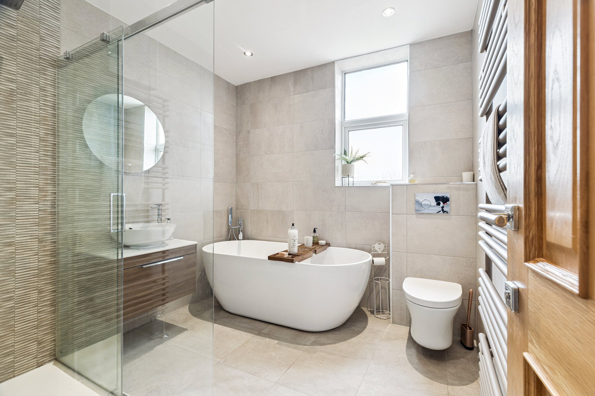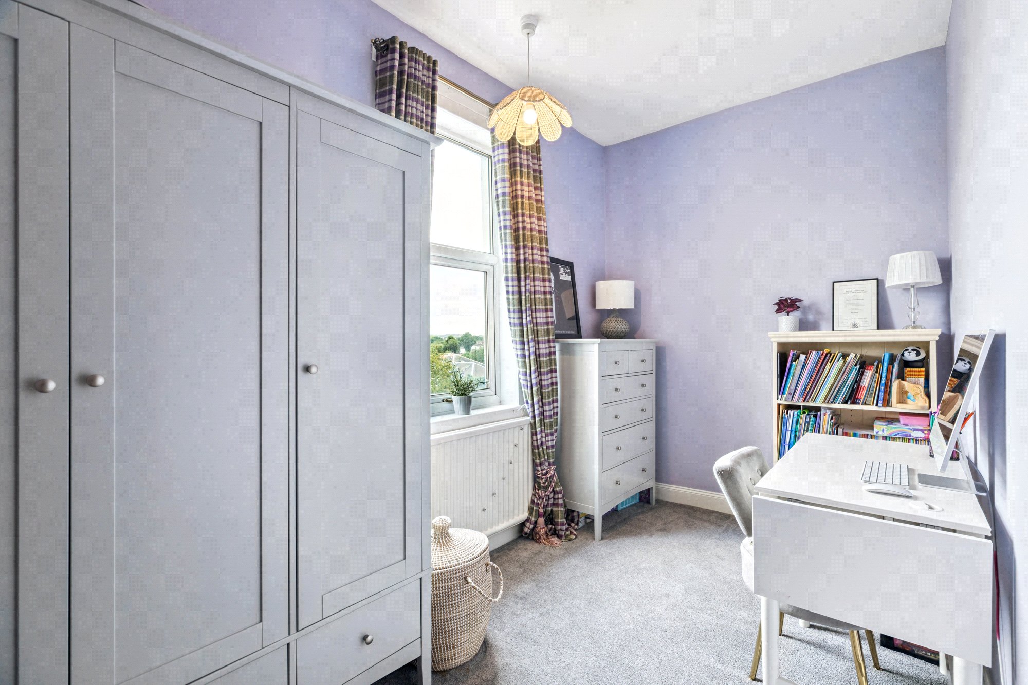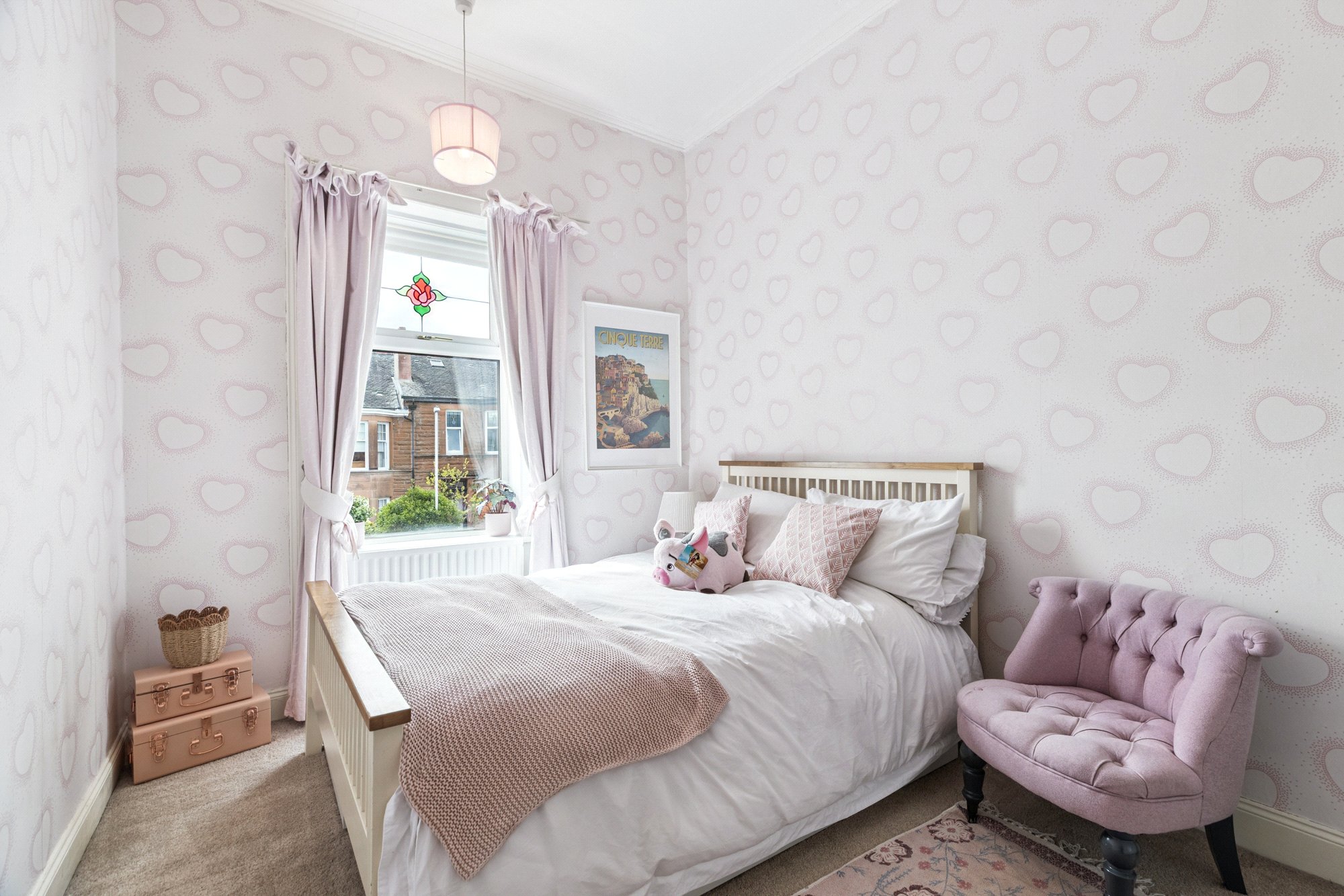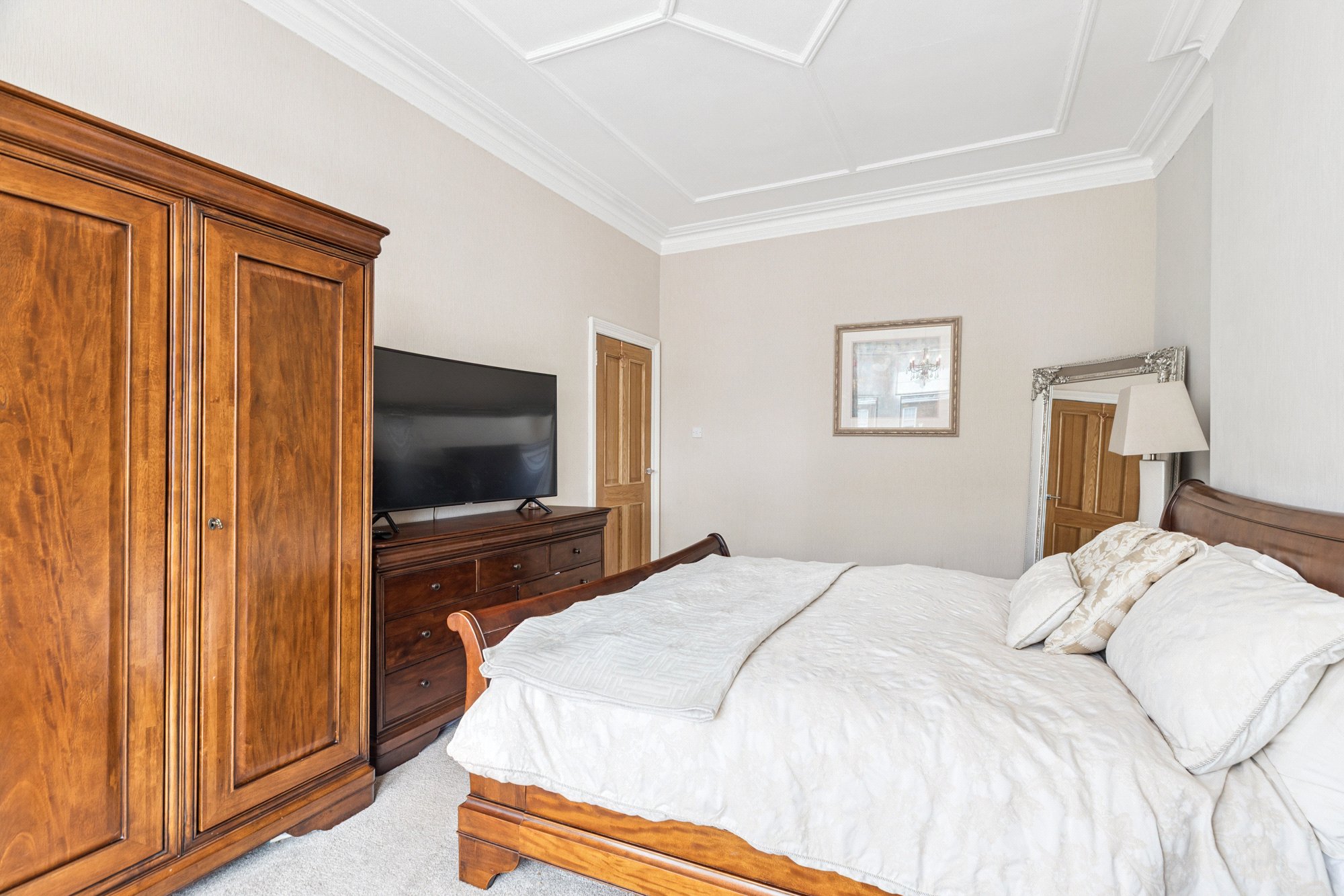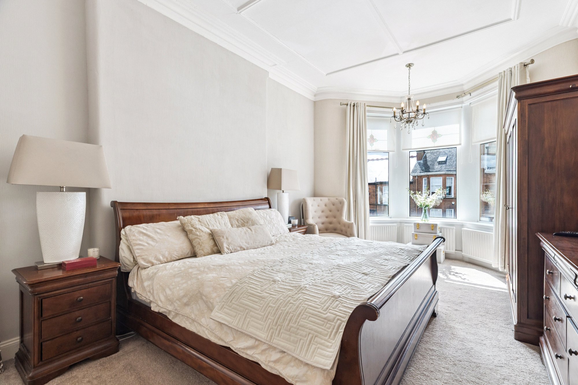 Upstairs, a broad landing provides access to four well-proportioned bedrooms. The bay-windowed principal bedroom enjoys open outlooks over St Ann’s, while two additional double bedrooms and a fourth room—ideal as a study or nursery—overlook the rear garden. A luxurious family bathroom features a roll-top bath, walk-in shower, and high-end fittings throughout.