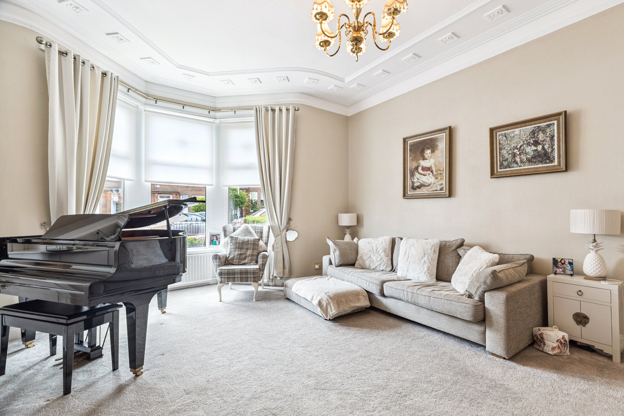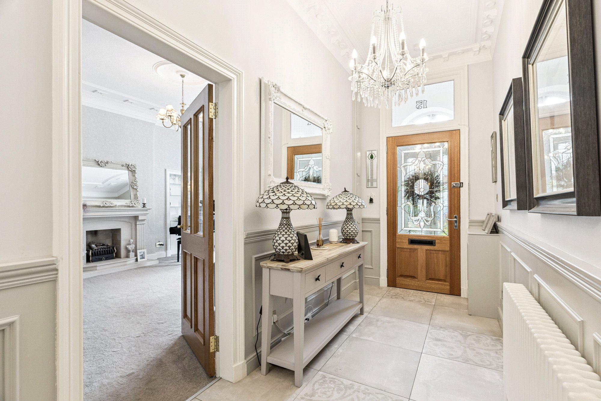 Located in the heart of highly sought-after Giffnock and just a short walk from the vibrant amenities of Fenwick Road, this beautifully presented four-bedroom semi-detached sandstone villa offers a rare opportunity to acquire an exceptional family home. Blending period character with contemporary upgrades, the property provides flexible and generous accommodation throughout—perfectly positioned within the catchment for East Renfrewshire’s most acclaimed schools.
