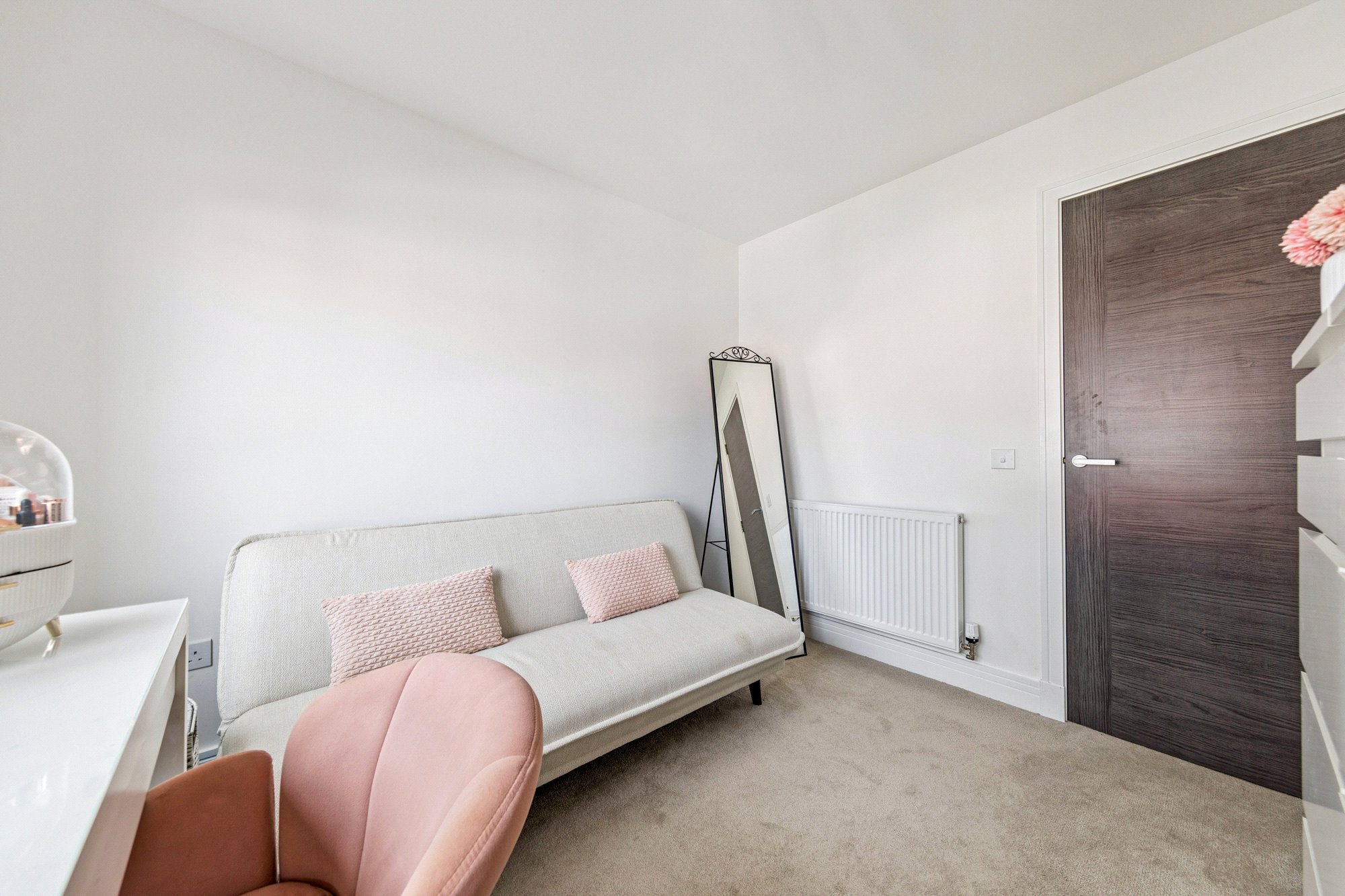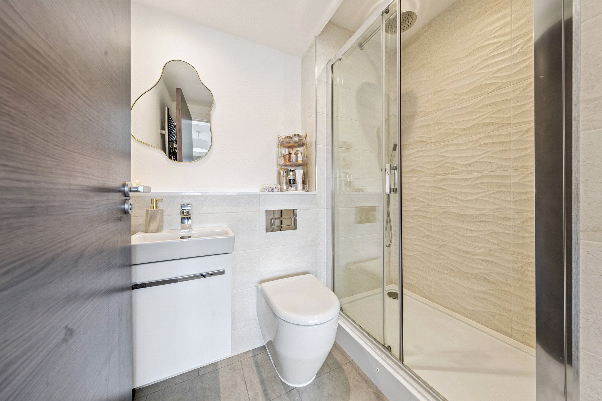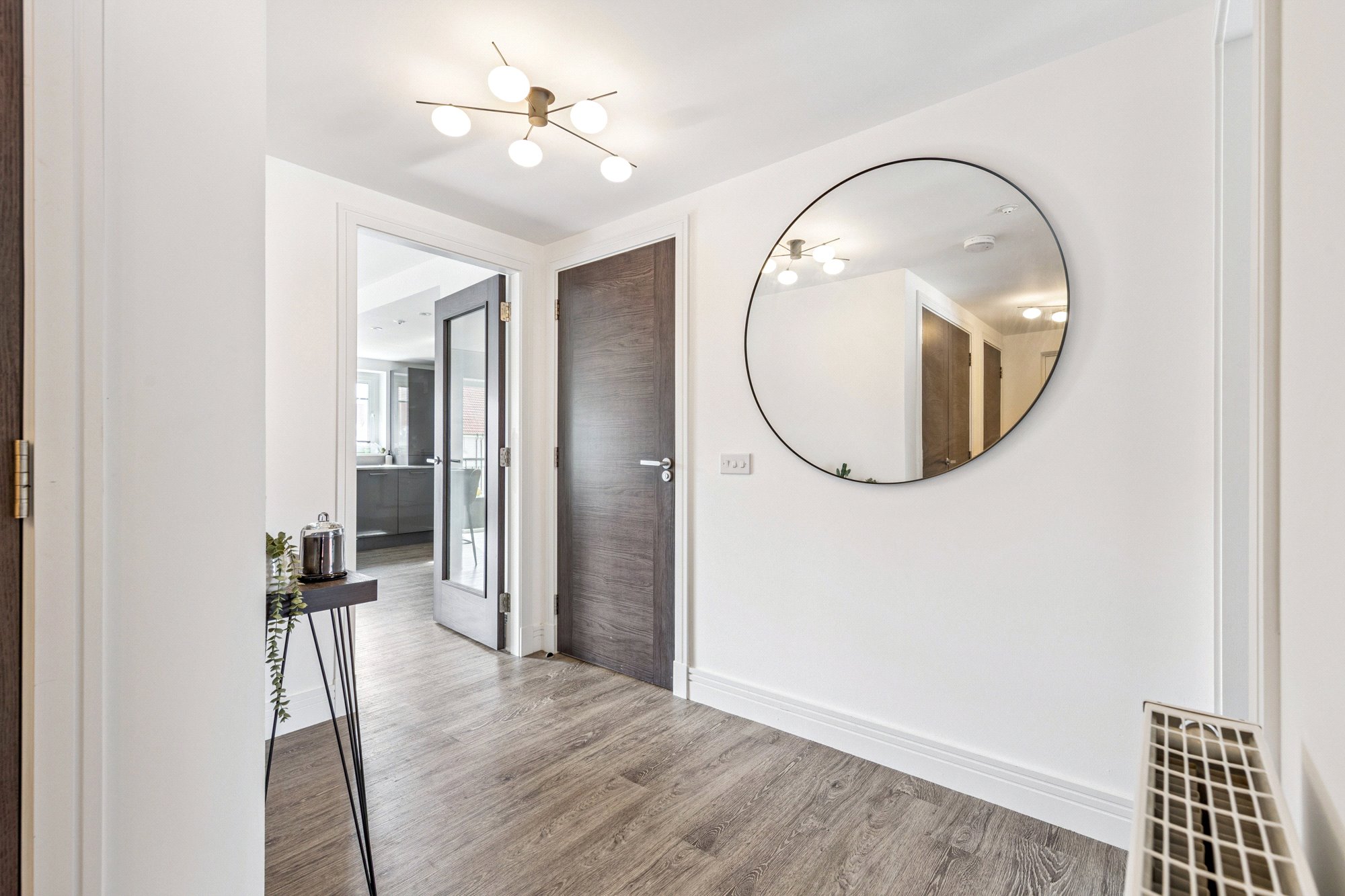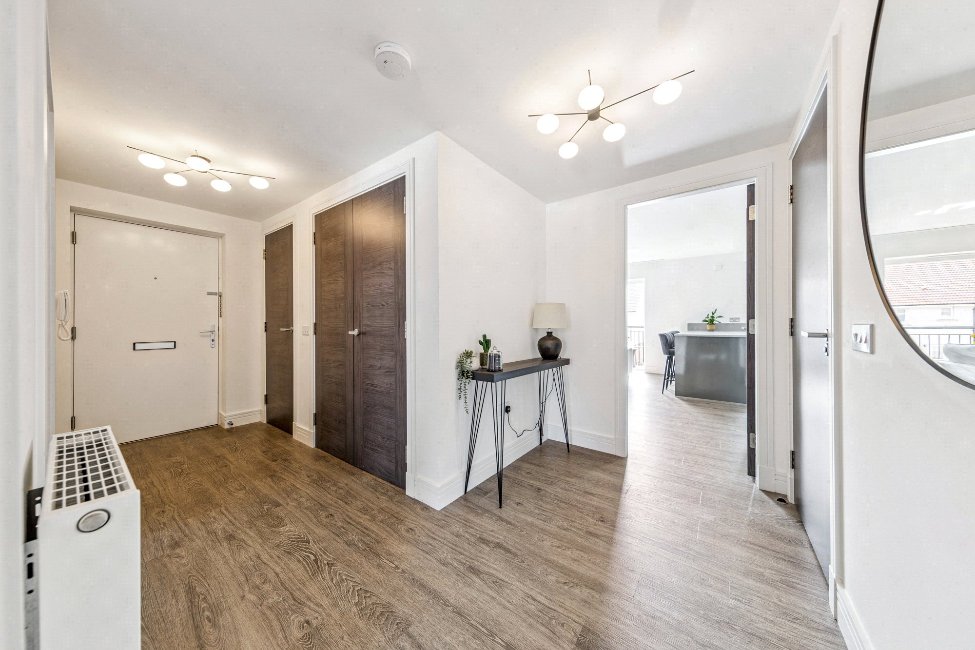 A secure communal entrance, with both staircase and lift access, leads to the apartment. The communal hallways are exceptionally well maintained, reflecting the quality of the development. The flat itself is quietly tucked around the corner from the lift on its floor, offering both privacy and convenience.