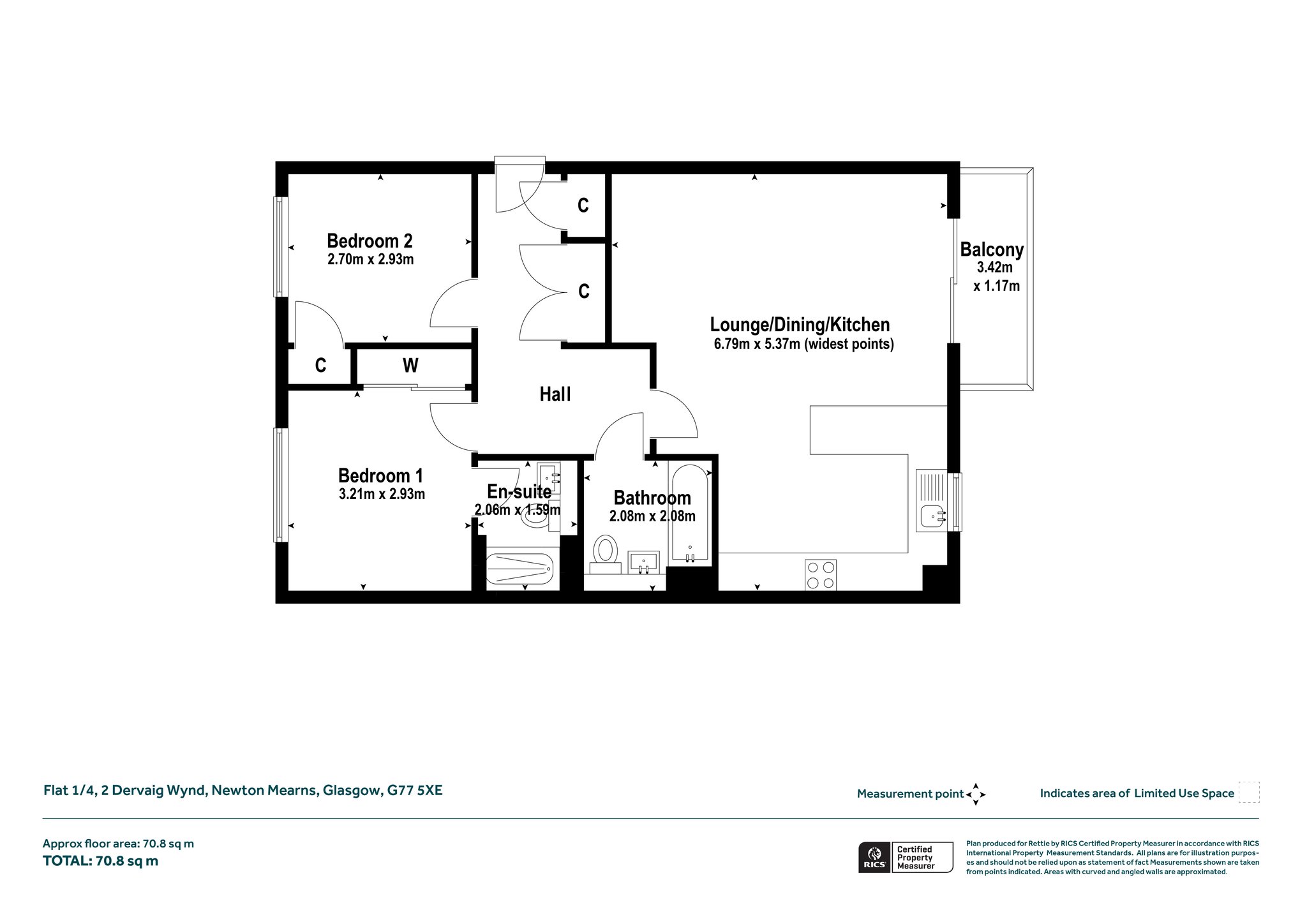 Built by Cala Homes, this beautifully presented two-bedroom first-floor apartment is set within the highly desirable Maidenhill development. Ideally located close to local amenities and excellent bus links, the property also benefits from being within the sought-after East Renfrewshire school catchment. It is in extremely close proximity to Maidenhill Primary, with Mearns Castle High School just a short distance away, and also within easy reach of the renowned St Ninian’s High School.