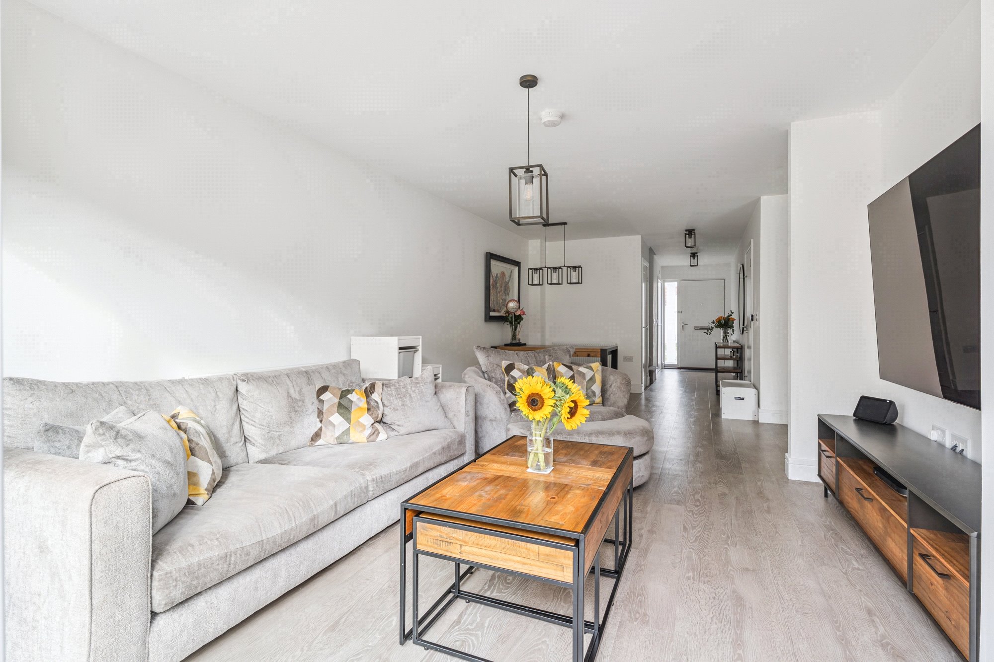 The enclosed rear garden has been thoughtfully landscaped for ease of upkeep, combining a lawn with a decked seating area—ideal for relaxing or entertaining. To the front, a private driveway provides convenient off-street parking.