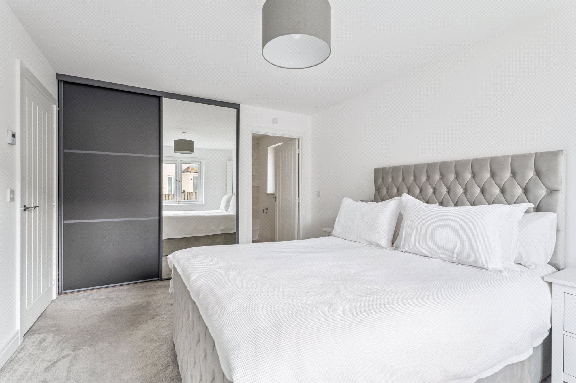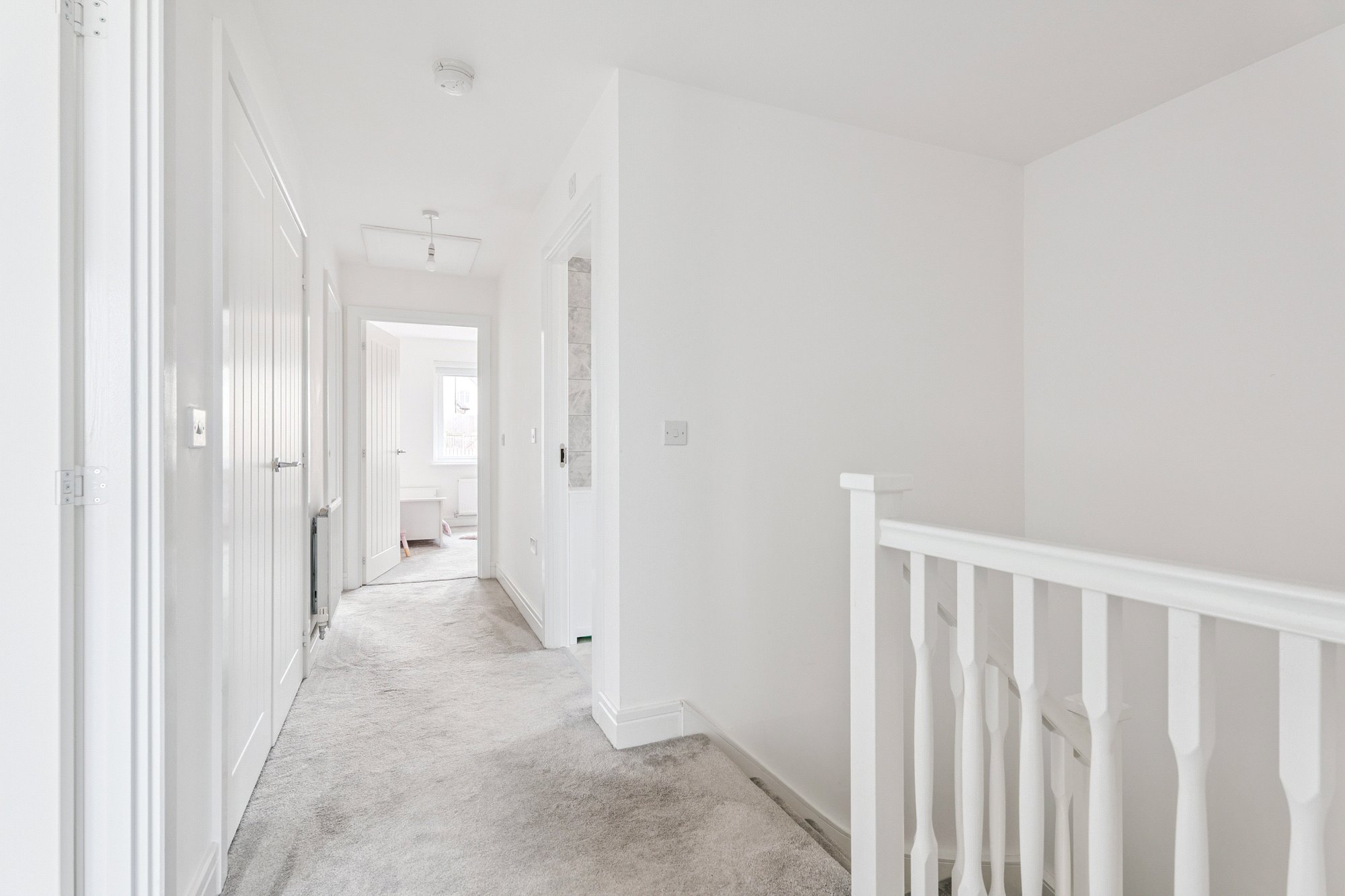 Upstairs, the landing leads to four double bedrooms. The principal suite enjoys a stylish en-suite shower room with walk-in enclosure, while the further three bedrooms are tastefully decorated in neutral tones. A well-appointed family bathroom completes the accommodation on this level.