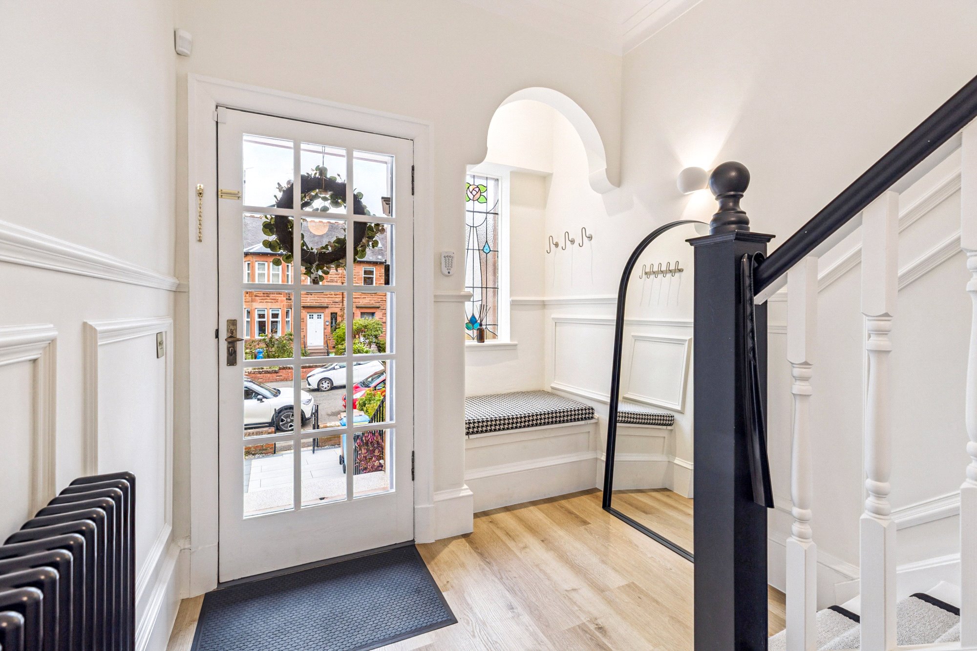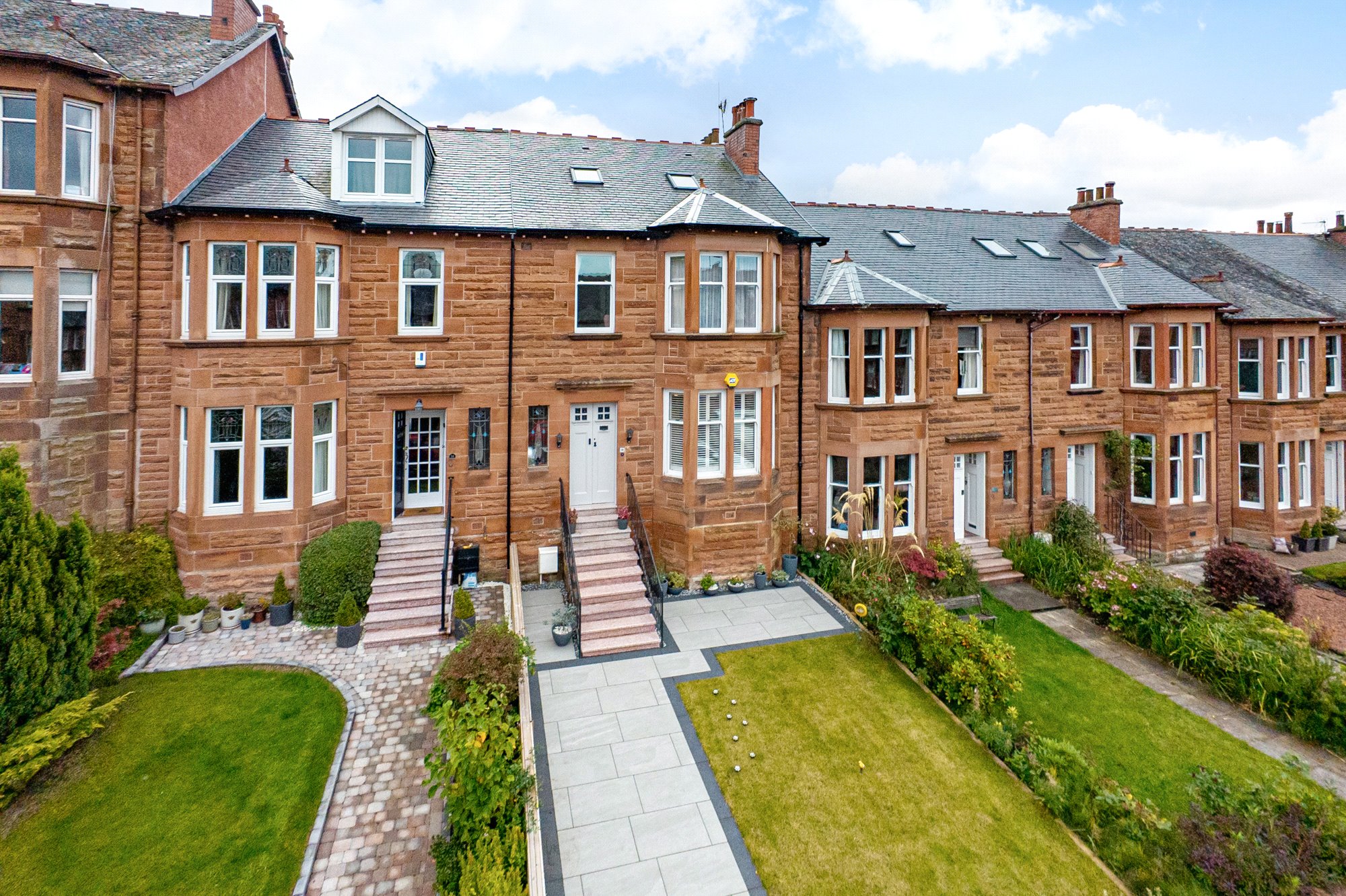 A truly stunning family home set over three levels with additional cellar storage, located in the heart of Netherlee, and ideally positioned close to a variety of local amenities on Clarkston Road, residents benefit from easy access to shops, cafes, and excellent transport links. This beautifully presented property combines period charm with modern living, offering generous proportions, stylish interiors, and landscaped gardens with the benefit of off-street parking and an EV charging point. The property also lies within the catchment area for highly regarded local schools, making it an ideal choice for families.