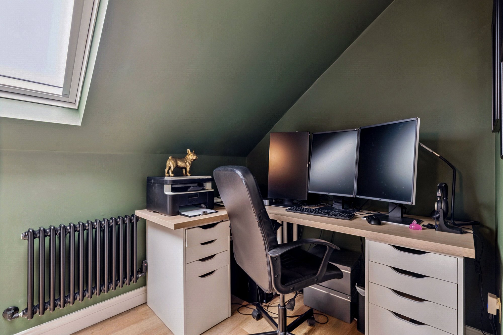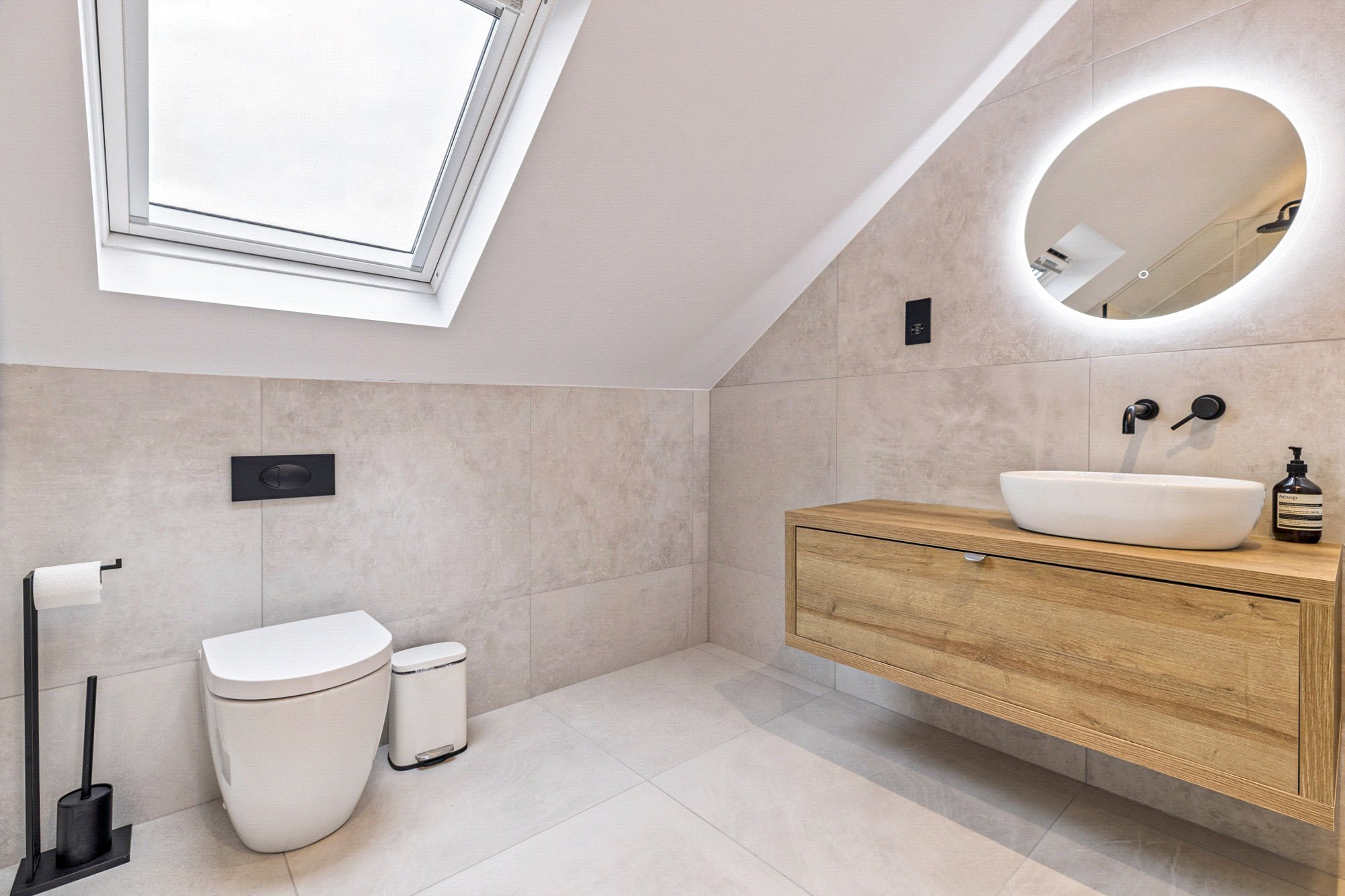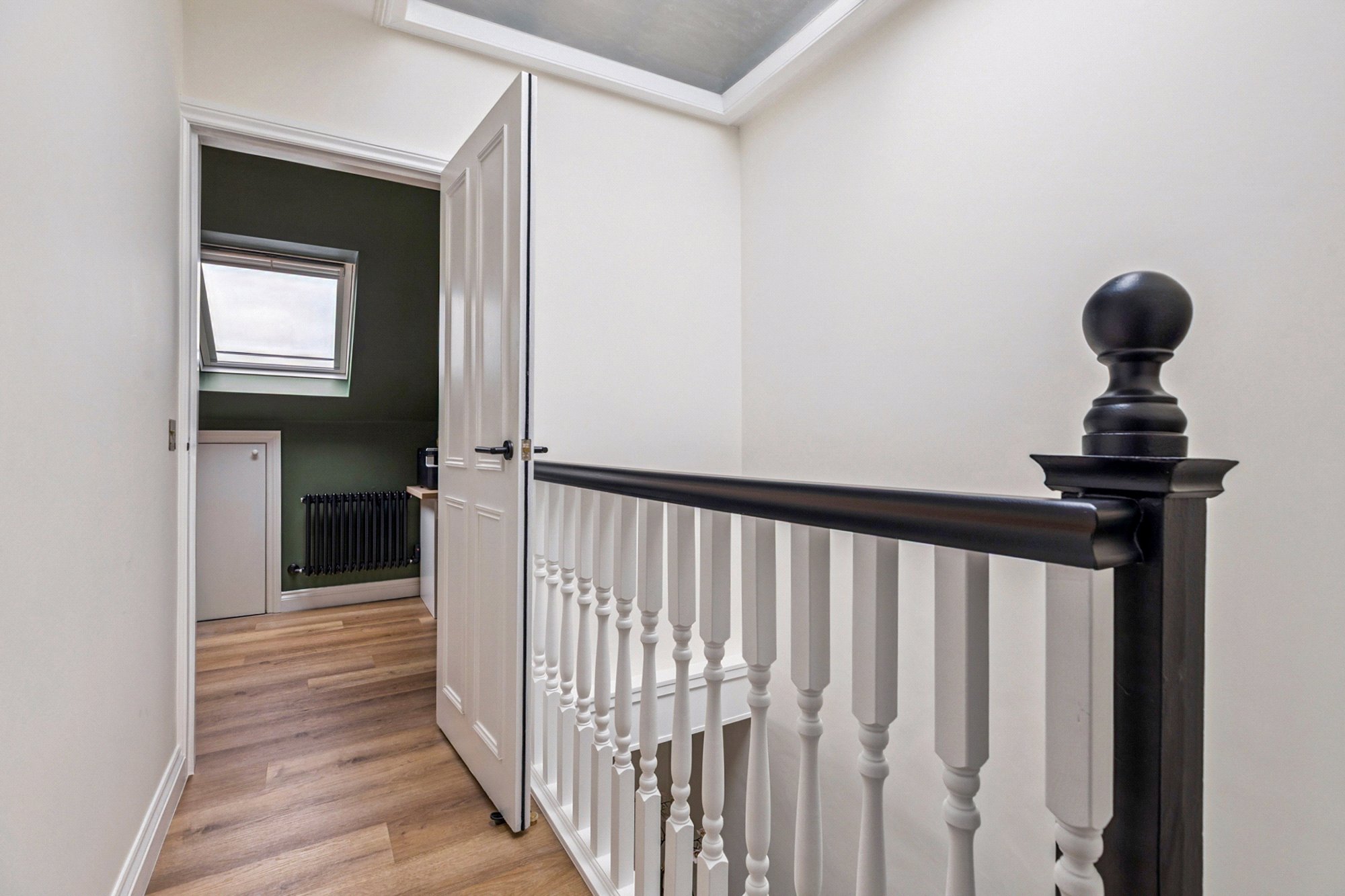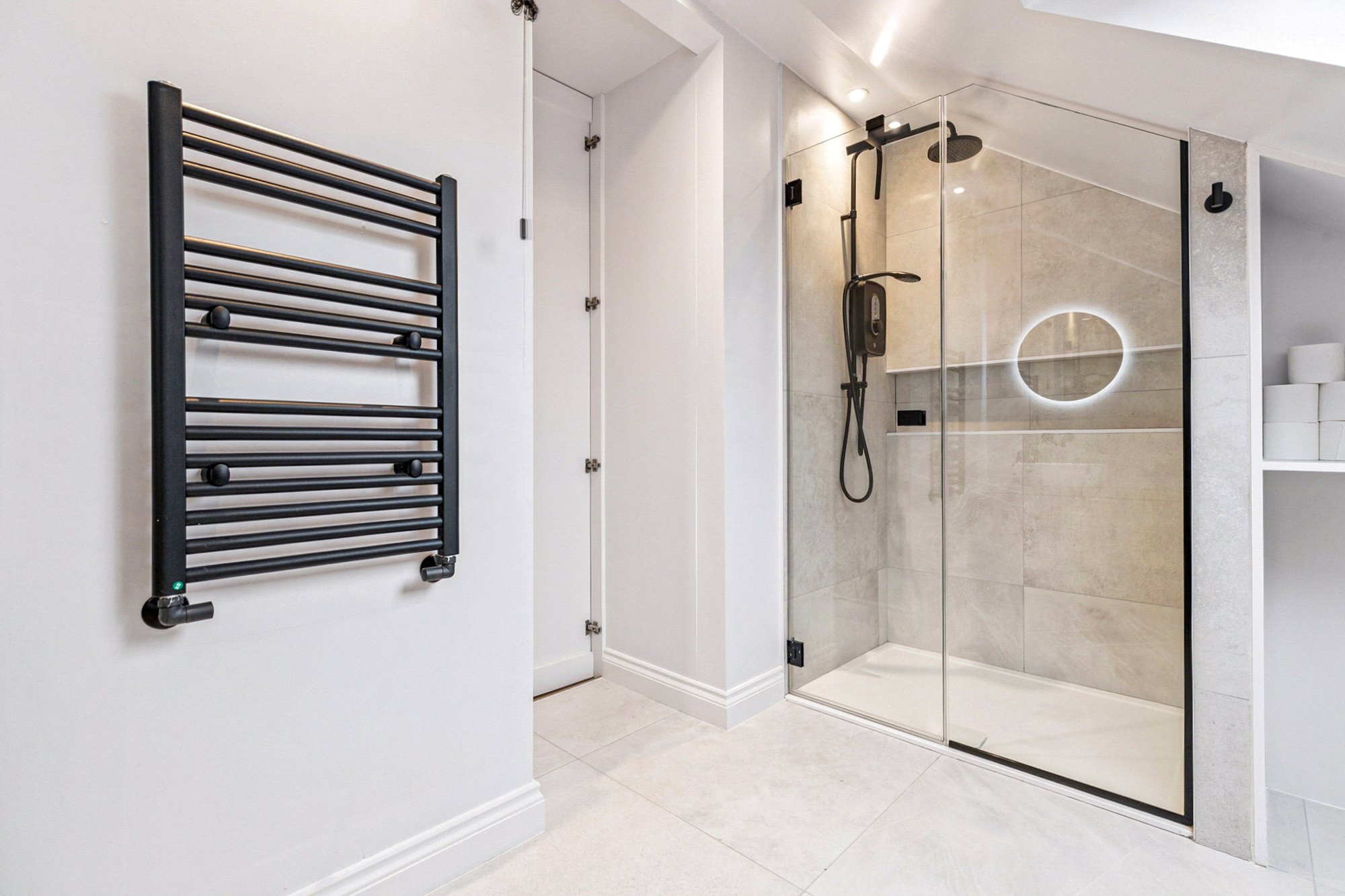 The attic level hosts the impressive principal suite, comprising a large double bedroom with fitted wardrobes and a stylish en-suite shower room, also finished with Mandarin Stone porcelain tiles. A study with Velux window benefits from a Category 6 Ethernet cable, while an additional store room completes this floor, offering excellent flexibility for modern living.