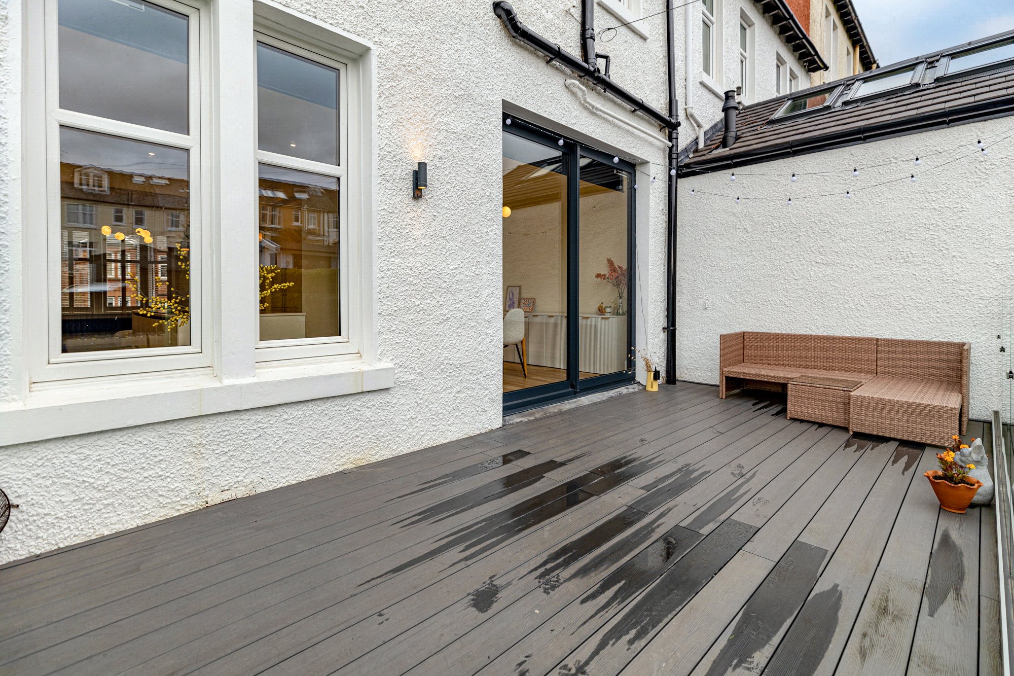 The property also benefits from a substantial cellar, providing excellent storage space with access from the rear garden. Both the basement ceiling and attic have been insulated to improve energy efficiency. Externally, there are attractive gardens to the front and rear, with the convenience of a garden hose at both ends, as well as an outdoor power supply in the rear garden. The landscaped rear garden includes a decked terrace, lawn, and stocked borders. To the rear, a monobloc driveway provides private off-street parking along with the convenience of an installed electric car charger.