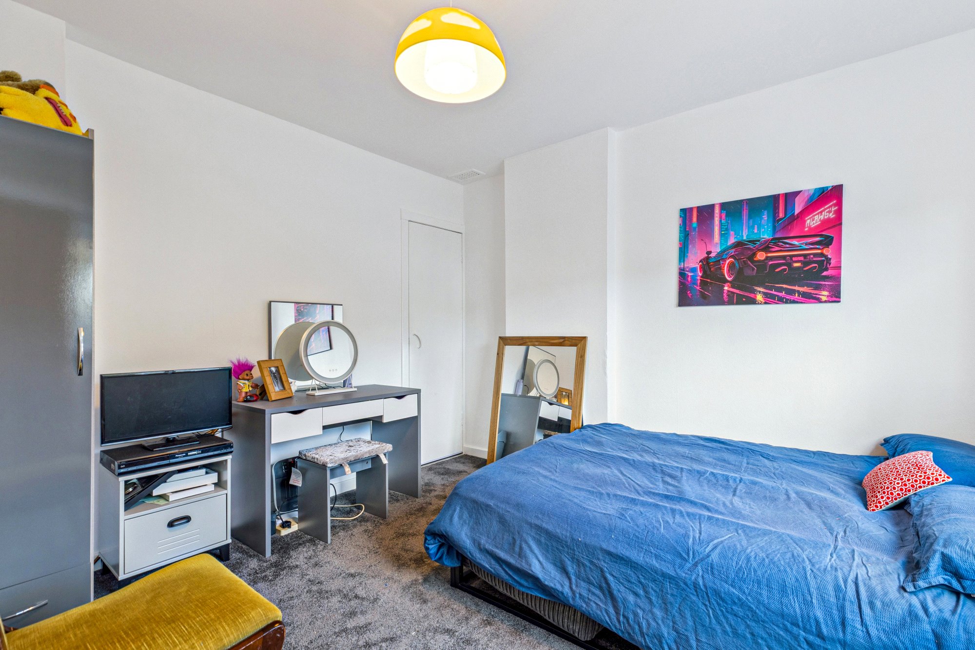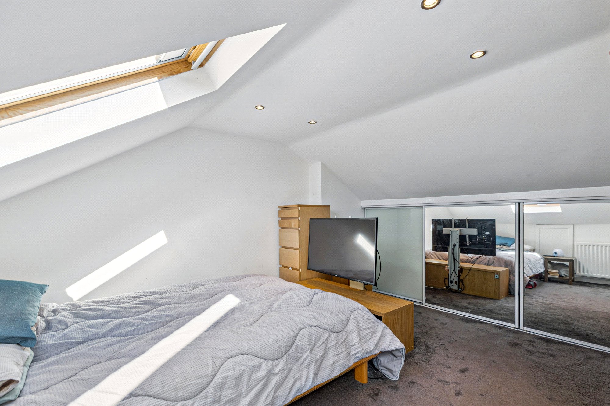 The home has been thoughtfully upgraded by the current owners and offers flexible accommodation arranged over three levels. On the ground floor, the welcoming reception hallway leads to a bright lounge with French doors opening into a contemporary open-plan kitchen and dining area. This fantastic space has been reconfigured into one room and features a large breakfasting island, excellent storage, and direct access to the rear garden. On the first floor, there are two well-proportioned double bedrooms, both offering space for fitted or free-standing storage, along with a stylish family bathroom. The attic floor is home to the principal bedroom, which benefits from eaves storage, space for a desk, and Velux windows enjoying fabulous views across Glasgow.