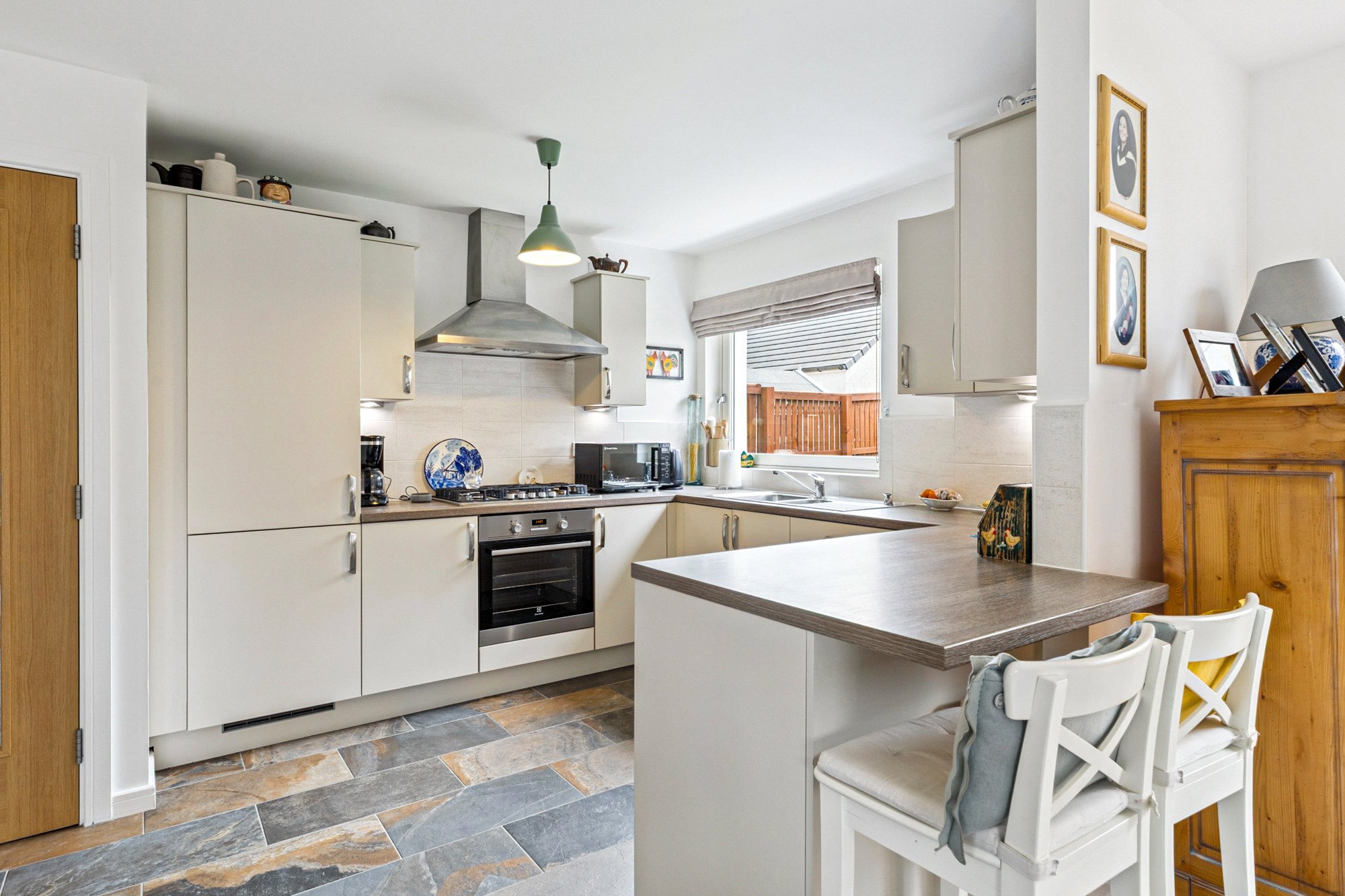 Arranged over two levels, the property offers well-proportioned living space throughout: Ground Floor: A welcoming reception hallway with storage, guest WC, and built-in utility cupboard. Bright and spacious sitting/dining room with dual-aspect windows, offering direct access to the rear garden and flowing seamlessly into the kitchen. The modern open-plan kitchen is fitted with a range of wall and base units, complemented by quality worktops.