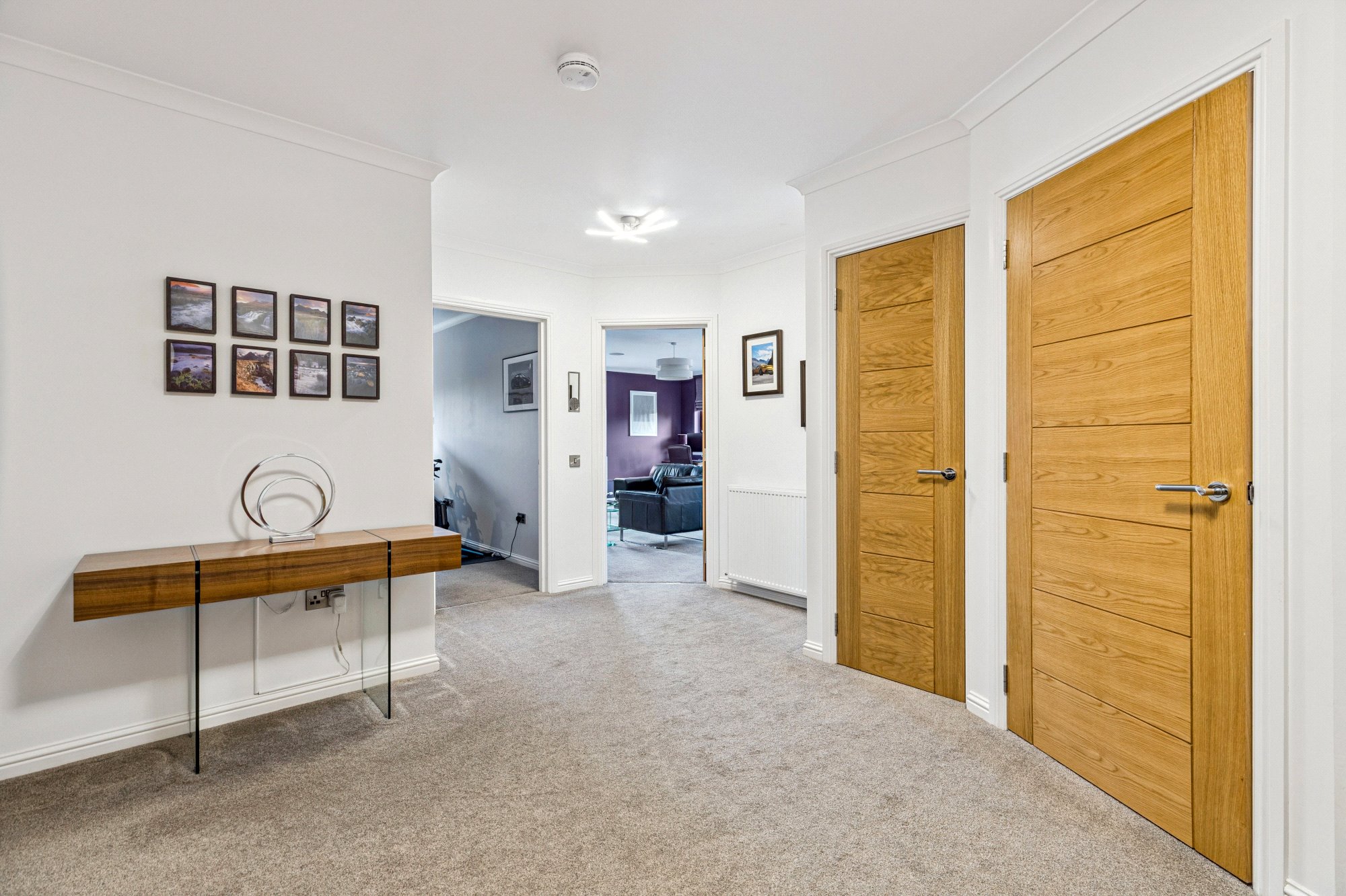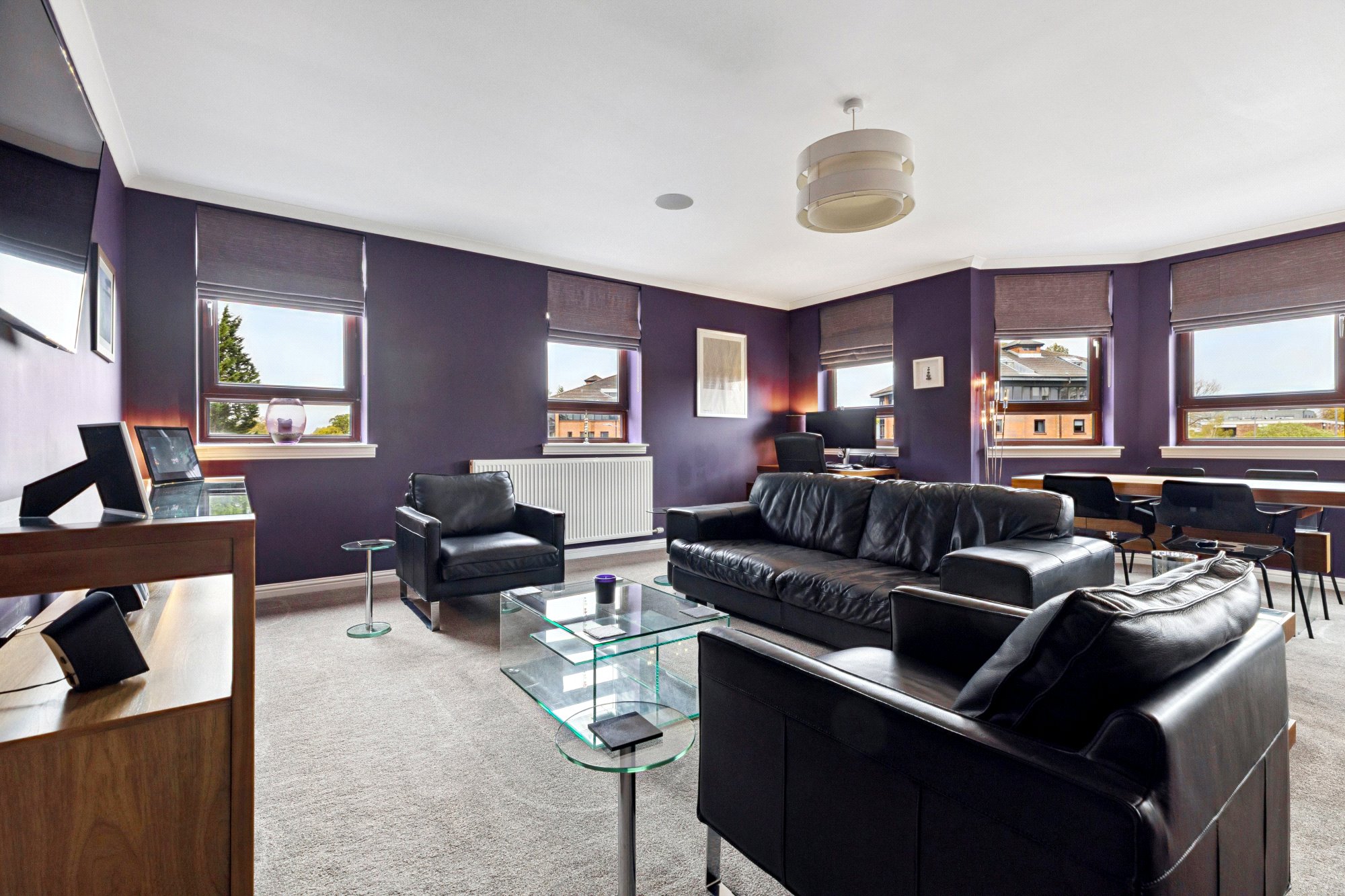 Set within Clan House Apartments, this exceptional second-floor apartment offers an exclusive lifestyle in one of Giffnock’s most sought-after addresses. With only four properties in the building, this home combines character with modern convenience, enjoying a favoured position within the block and open views towards Banco and Eastwood Toll.
