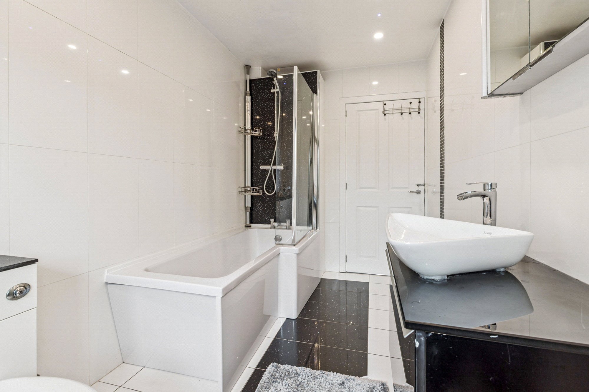 The property comprises four further bedrooms, two with fitted wardrobes, providing excellent storage and versatility. The family bathroom features a contemporary bath with shower over and stylish tiling.