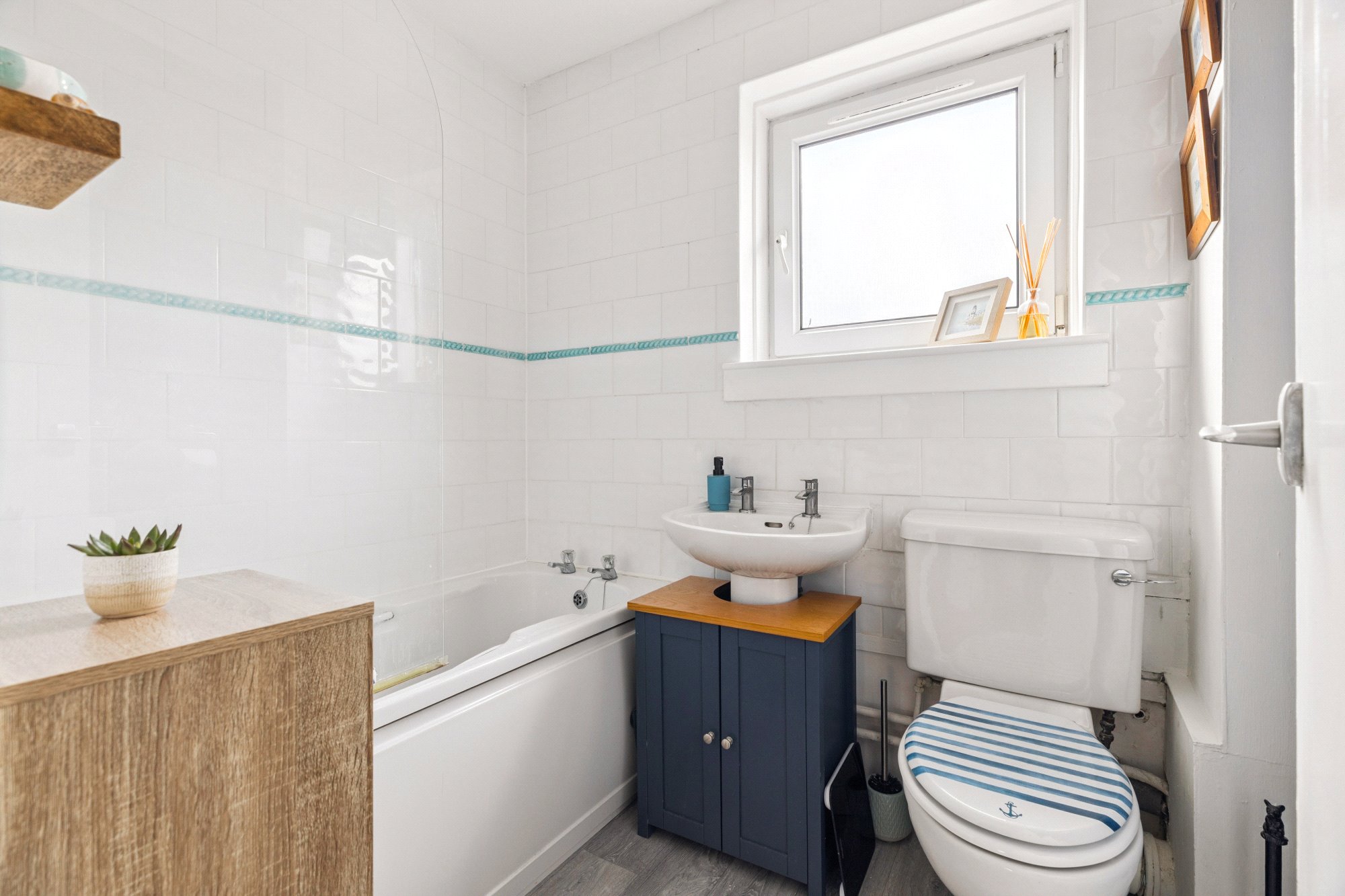 The upper level is accessed via a bright landing which includes additional storage. The principal bedroom sits to the rear of the property and is a particularly appealing room, benefiting from impressive open views and builtin wardrobe space. The second bedroom is positioned to the front and offers comfortable proportions along with its own builtin storage. The family bathroom completes the accommodation on this level and is fitted with a threepiece suite including bath with overhead shower.
