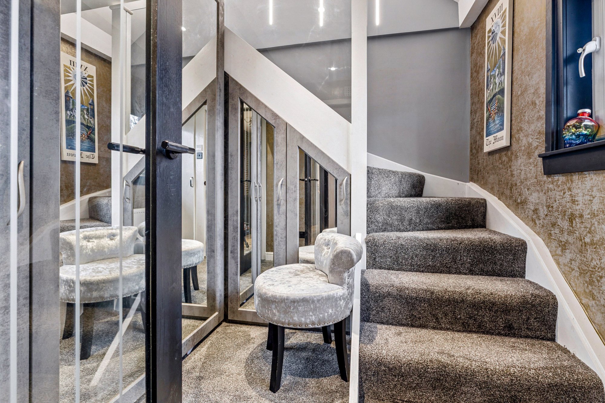 The top floor features a fully lined loft space, currently utilised as an additional room with fitted wardrobes, stylish contemporary lighting, and a modern en-suite shower room. This well-designed area makes excellent use of the space, offering both comfort and functionality while retaining additional eaves storage.