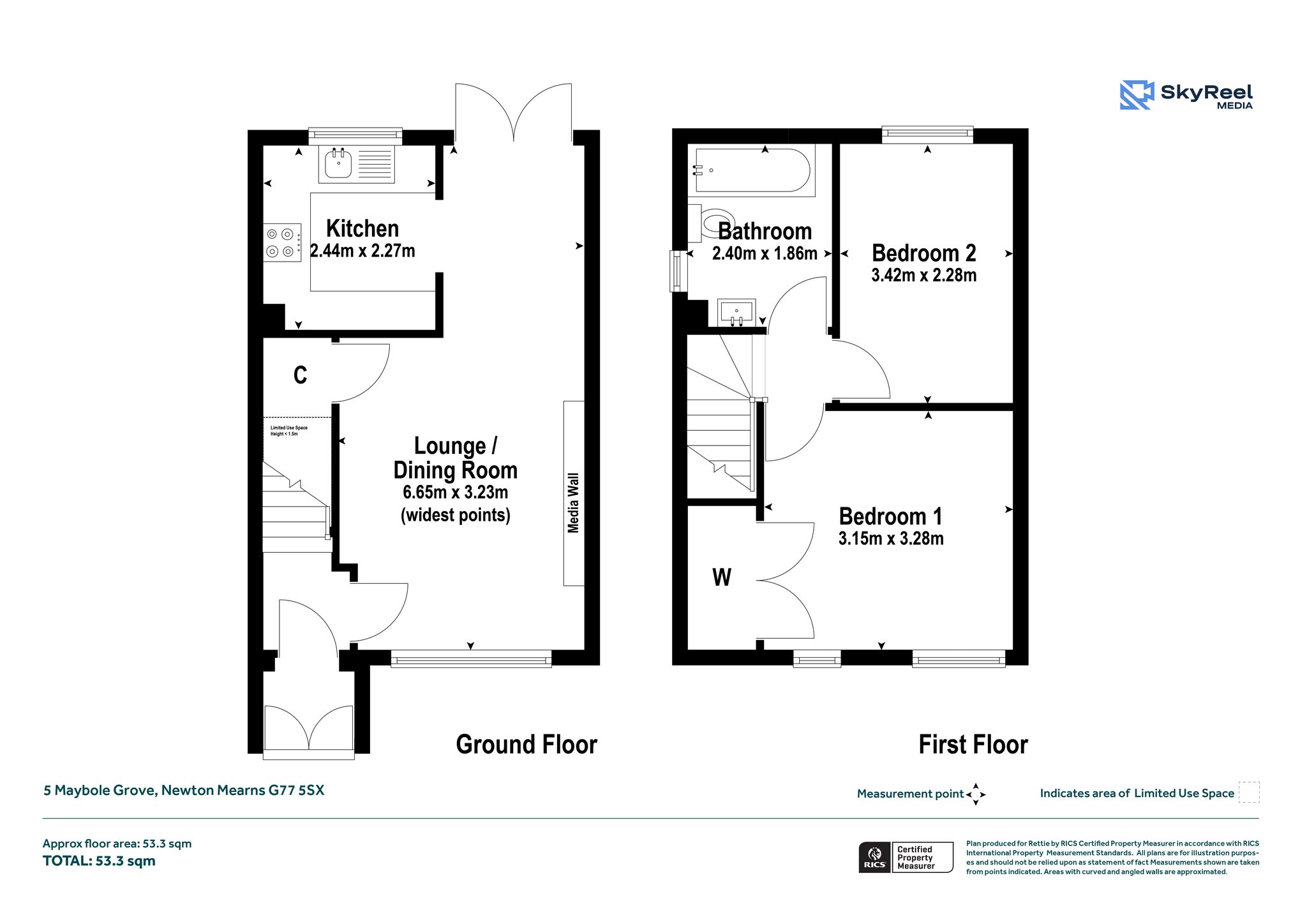 Upstairs, the first-floor landing gives access to two bedrooms and the family bathroom. Bedroom one benefits from fitted wardrobes. The family bathroom has been re-fitted and is complete with a shower over the bath.