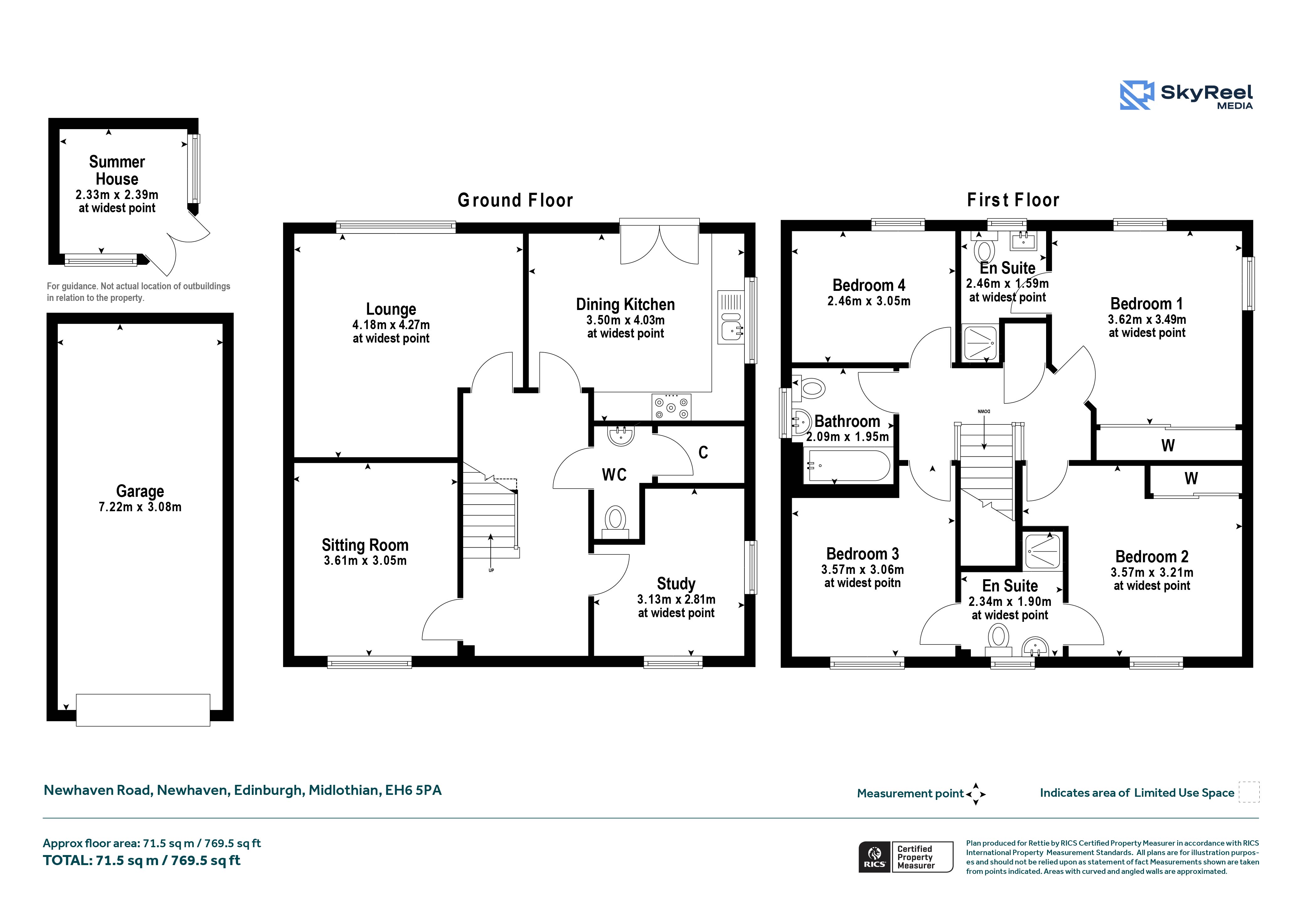 Upstairs, the principal bedroom benefits from fitted wardrobes and a contemporary ensuite shower room. Bedrooms two (with fitted wardrobes) and three share a modern Jack and Jill ensuite, while bedroom four is well-sized and flexible in use. A well-appointed house bathroom completes the upper floor accommodation.