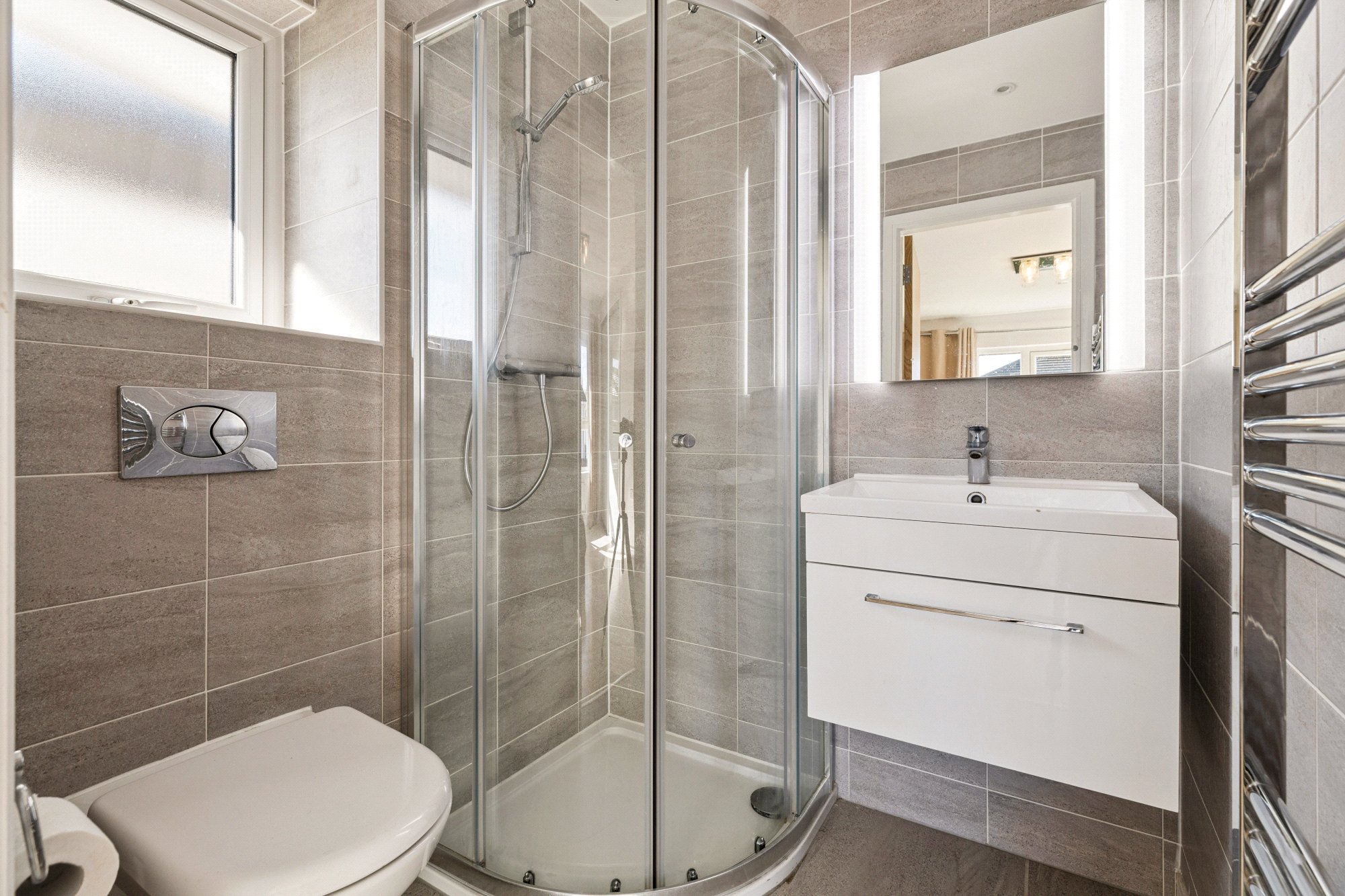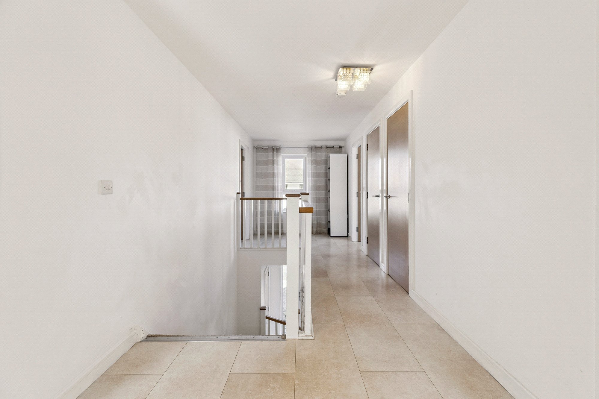 The upper level is home to four well proportioned bedrooms. The principal bedroom features a stylish en suite shower room and a generous walk in wardrobe. Bedroom two also benefits from its own en suite shower room, making it ideal for guests or older children. Bedrooms three and four are spacious and well presented. A modern family bathroom and additional storage cupboards sit off the bright landing area.