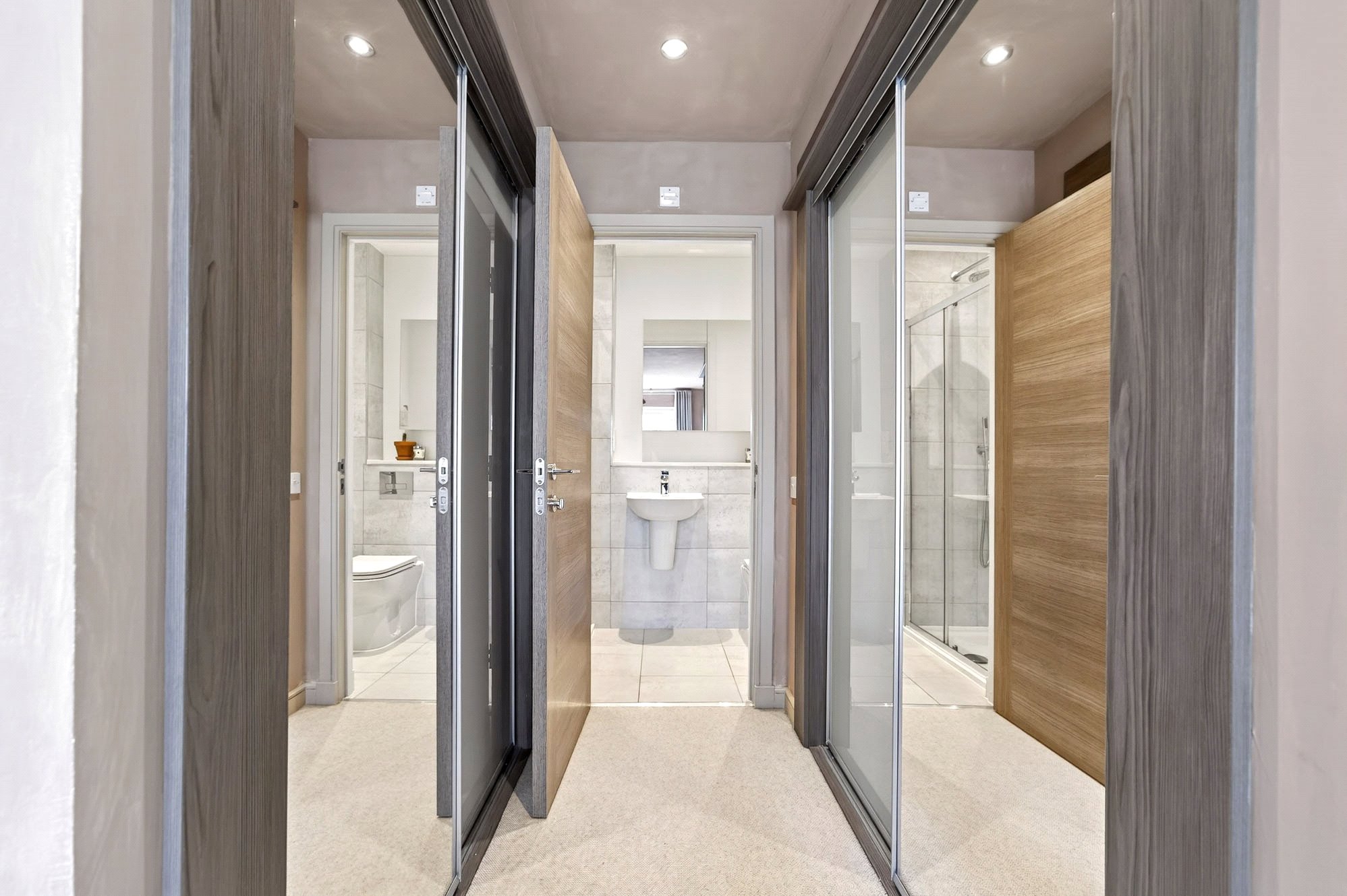 The top floor comprises bedroom one with dressing area, integrated wardrobes and Juliet balcony, gorgeous tiled en-suite shower room off with white two piece suite and separate walk-in shower, another double sized bedroom with integrated wardrobes, tiled family bathroom with three piece suite and fourth bedroom that could easily be utilised as a home office or study space.