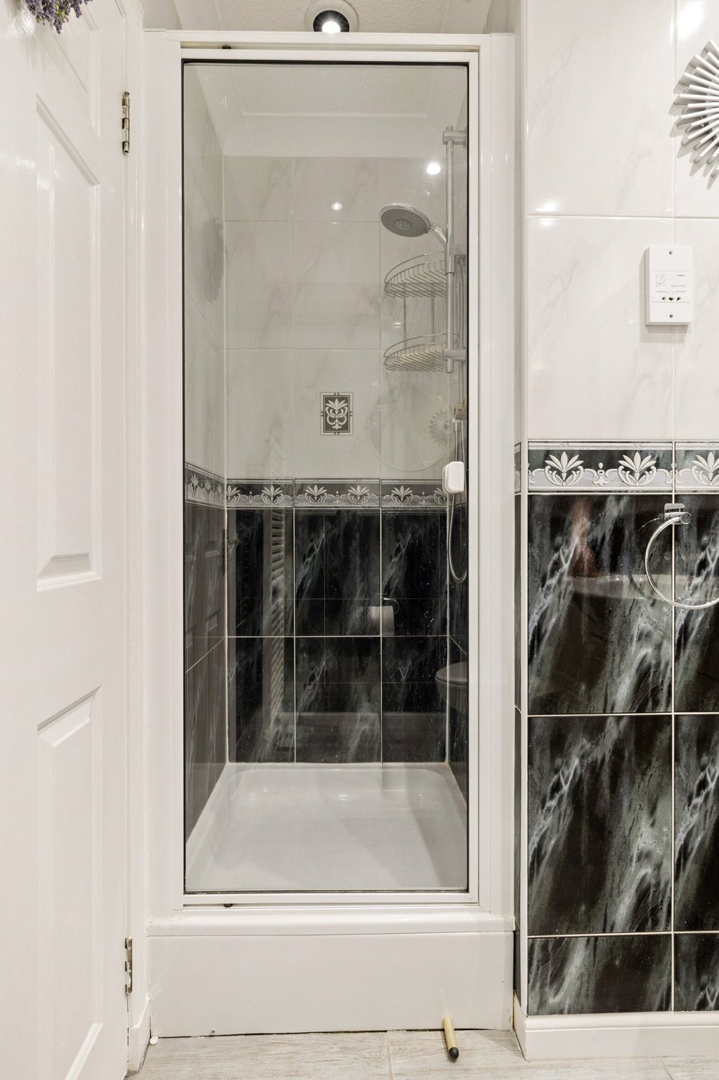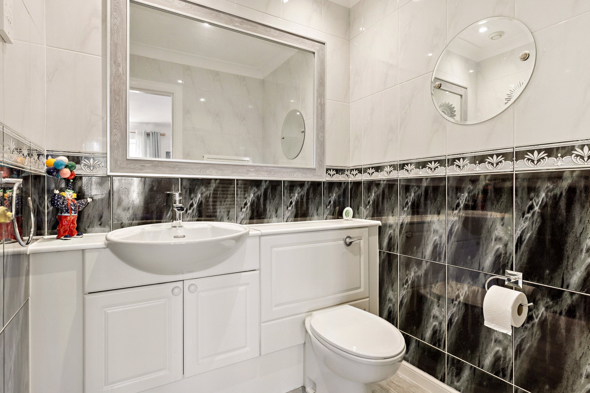 The contemporary kitchen is fitted with ample units, generous worktop space, and room for casual dining. Both bedrooms are excellent doubles. The principal bedroom benefits from fitted wardrobes and an ensuite shower room. Bedroom two also includes fitted storage and is served by a well-appointed family bathroom.