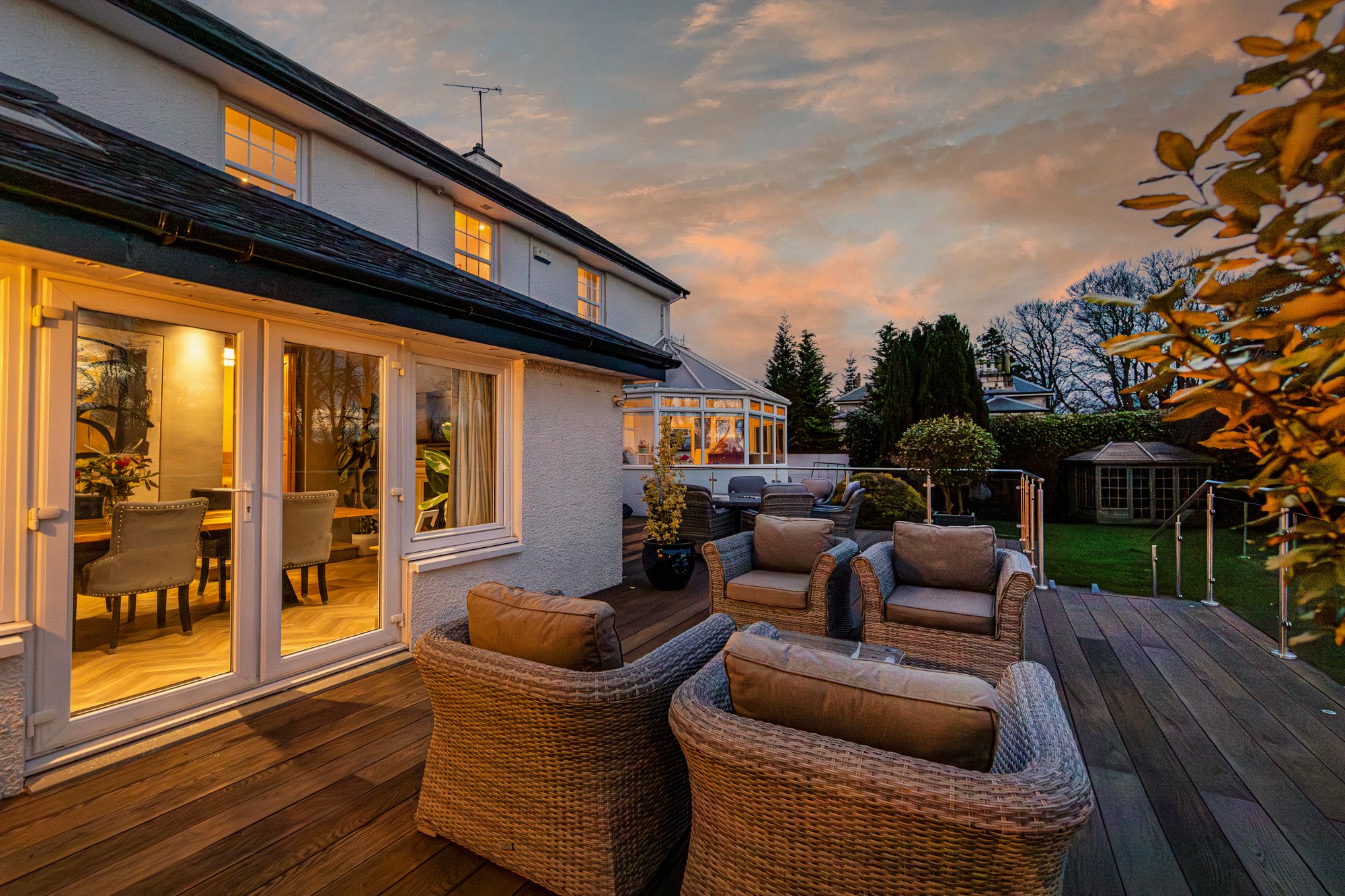 Externally, the property continues to impress. A powered garage, supported by its own dedicated switchboard, sits within the grounds, while the thoughtfully designed office above provides an excellent workspace separate from the main house. The garden grounds are beautifully landscaped, with a decked terrace enhanced by integrated outdoor Sonos speakers — the perfect setting for hosting or relaxing outdoors.