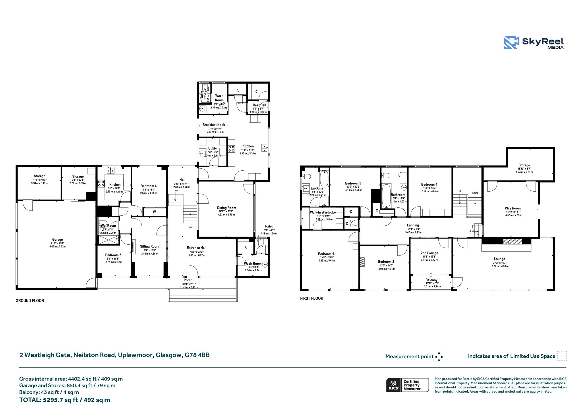 This level also plays host to significant additional bedroom accommodation, including a superb principal bedroom suite with impressive floor area and excellent proximity to bathrooms. Four further double bedrooms line the upper hallway, each wellserved by the family bathroom. A further versatile room, located on the first floor can be used as a bedroom or games room and is complimented by a large walk in store.
