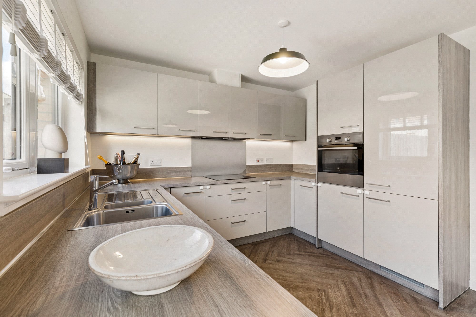 The upper level features three well-proportioned bedrooms. The principal bedroom benefits from fitted wardrobes and a contemporary en-suite shower room. Bedrooms two and three are both spacious and versatile. A modern family bathroom and additional storage are located off the bright landing area.