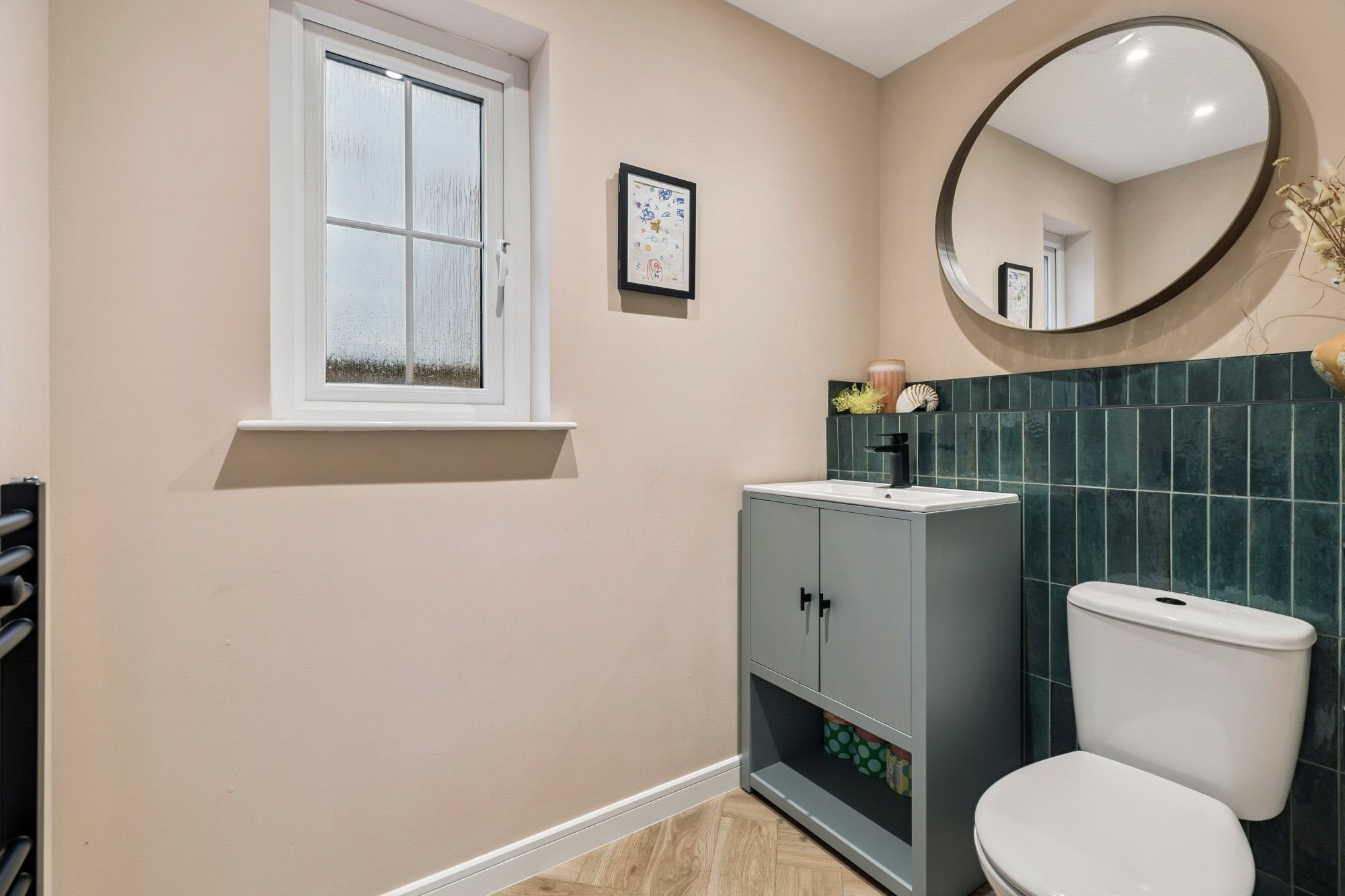 Upstairs the accommodation comprises spacious bedroom one with integrated wardrobes, Juliet balcony allowing light to stream in and stunning tiled en-suite shower room with two piece suite, vanity unit and separate walk-in shower, two more bedrooms, both of which can be utilised very flexibly and a beautiful tiled family bathroom with three piece suite and vanity unit.