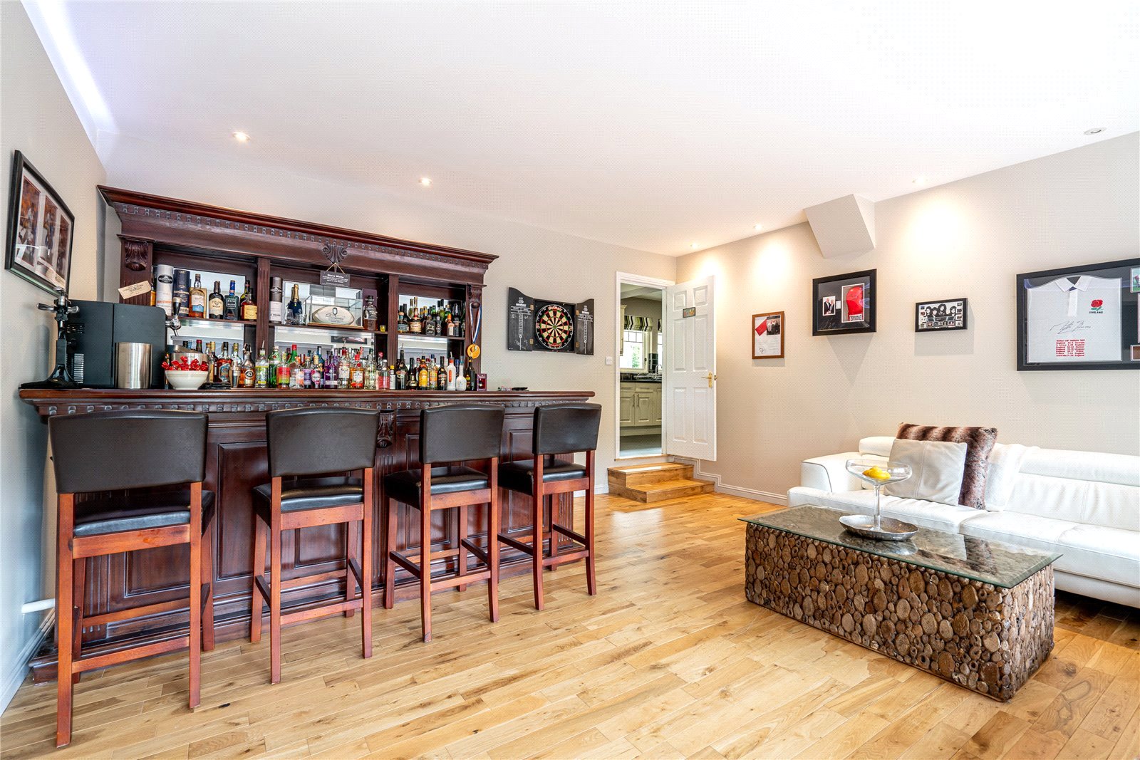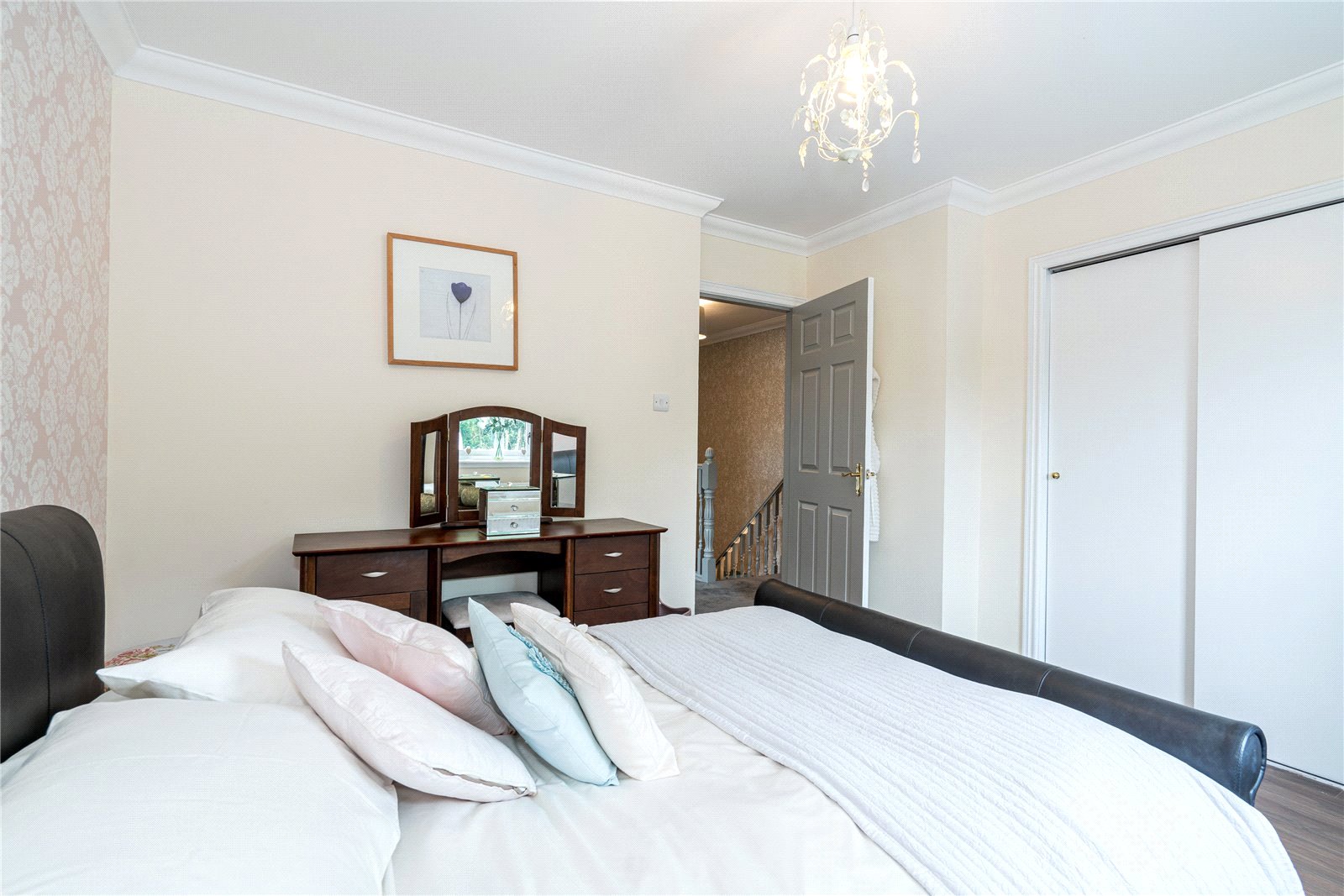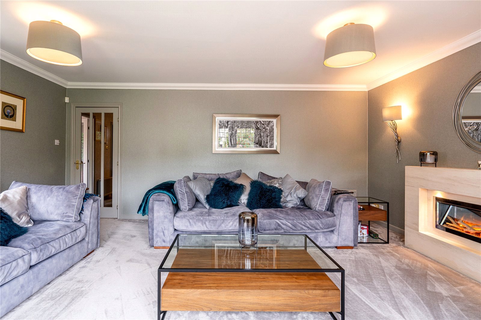 The upper level includes four generously sized bedrooms, extensive fitted storage and family bathroom. The principal bedroom is especially impressive with a sumptuous en-suite.
