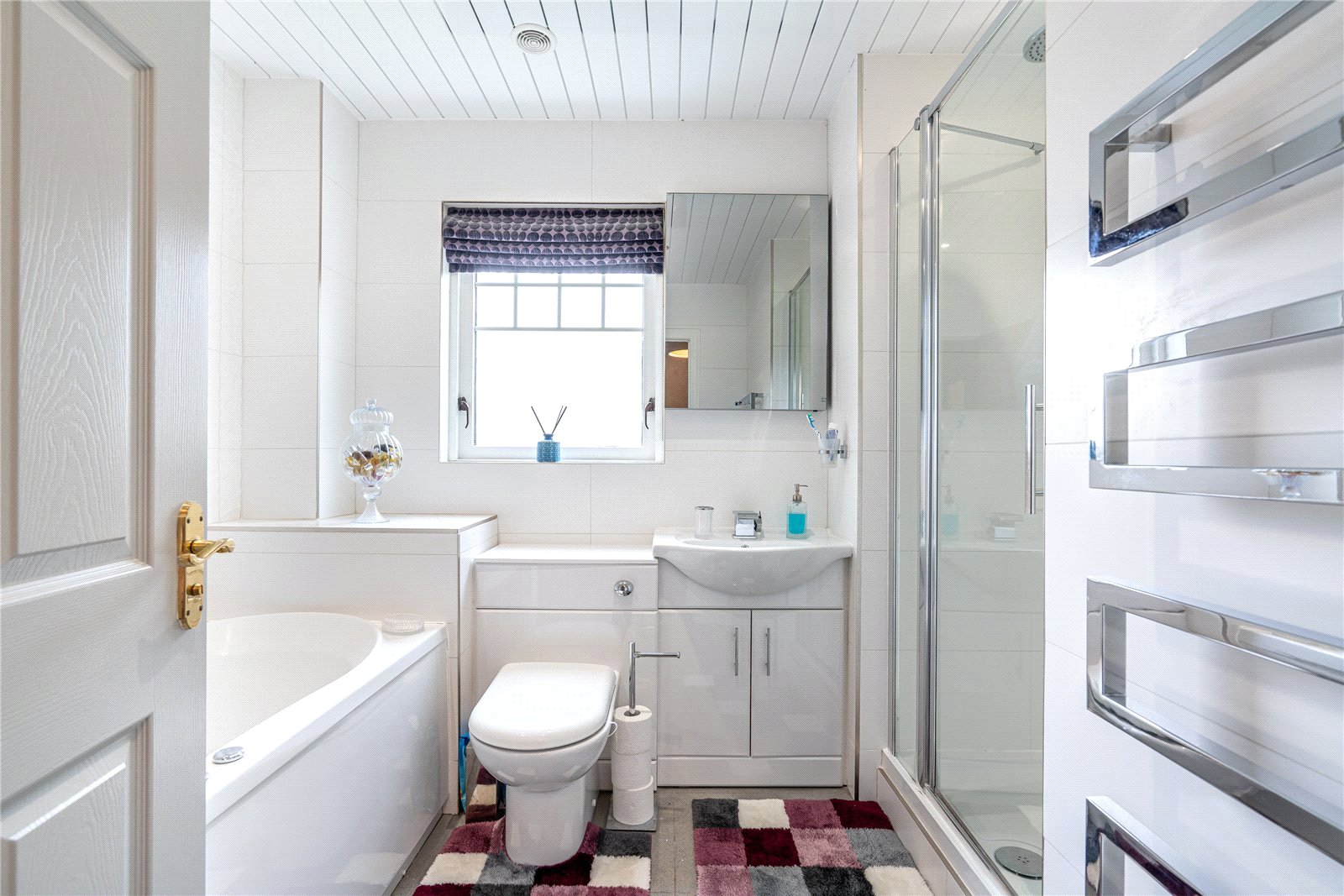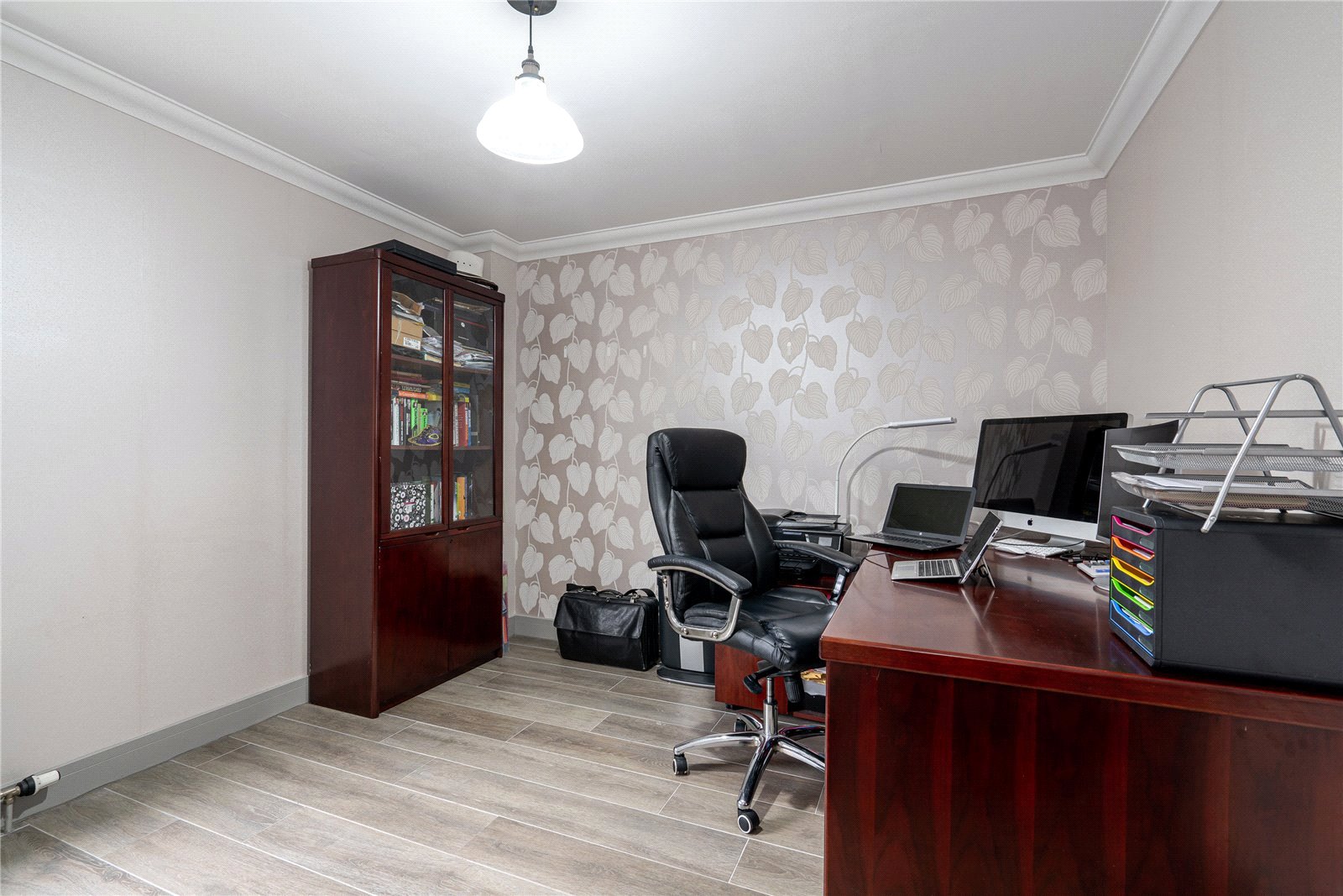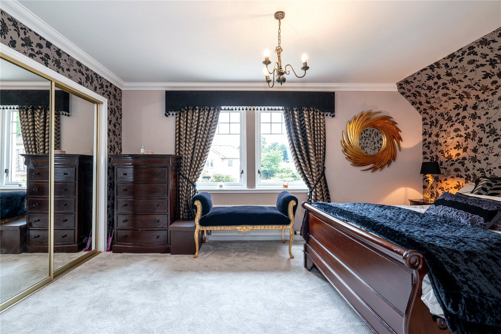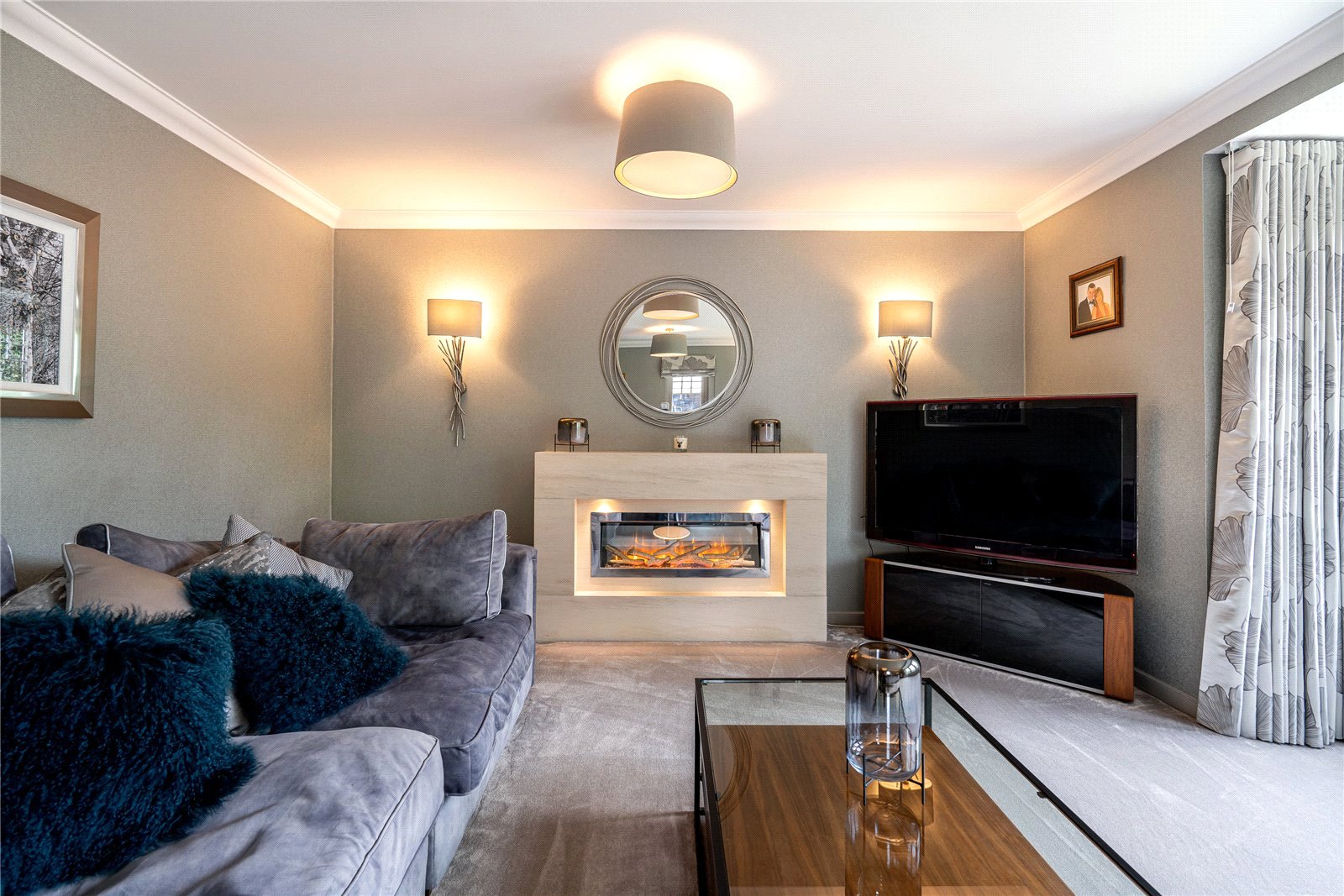 The upper level includes four generously sized bedrooms, extensive fitted storage and family bathroom. The principal bedroom is especially impressive with a sumptuous en-suite.